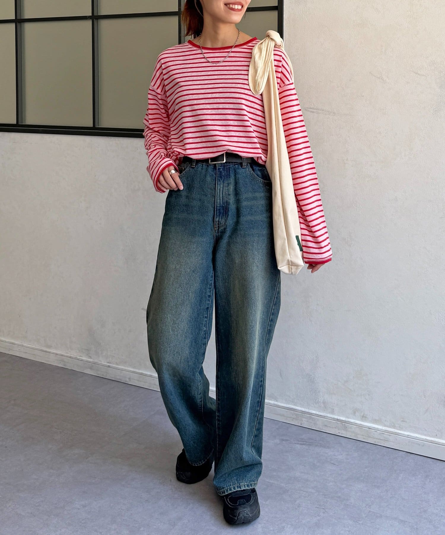 ・ワイドパンツと合わせて、トレンド感のあるリラックススタイルに