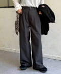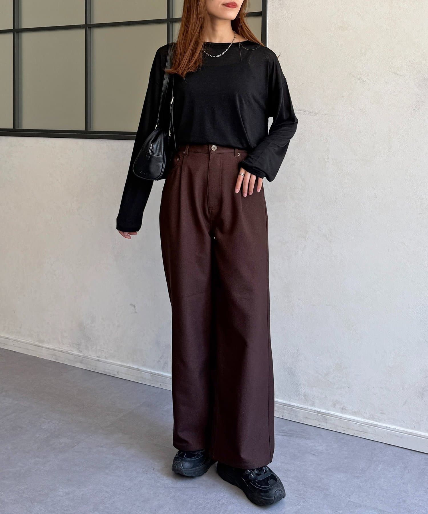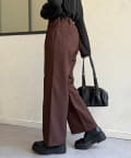 ・シンプルなニットやカットソーと合わせて、パンツの素材感を引き立てるスタイリング