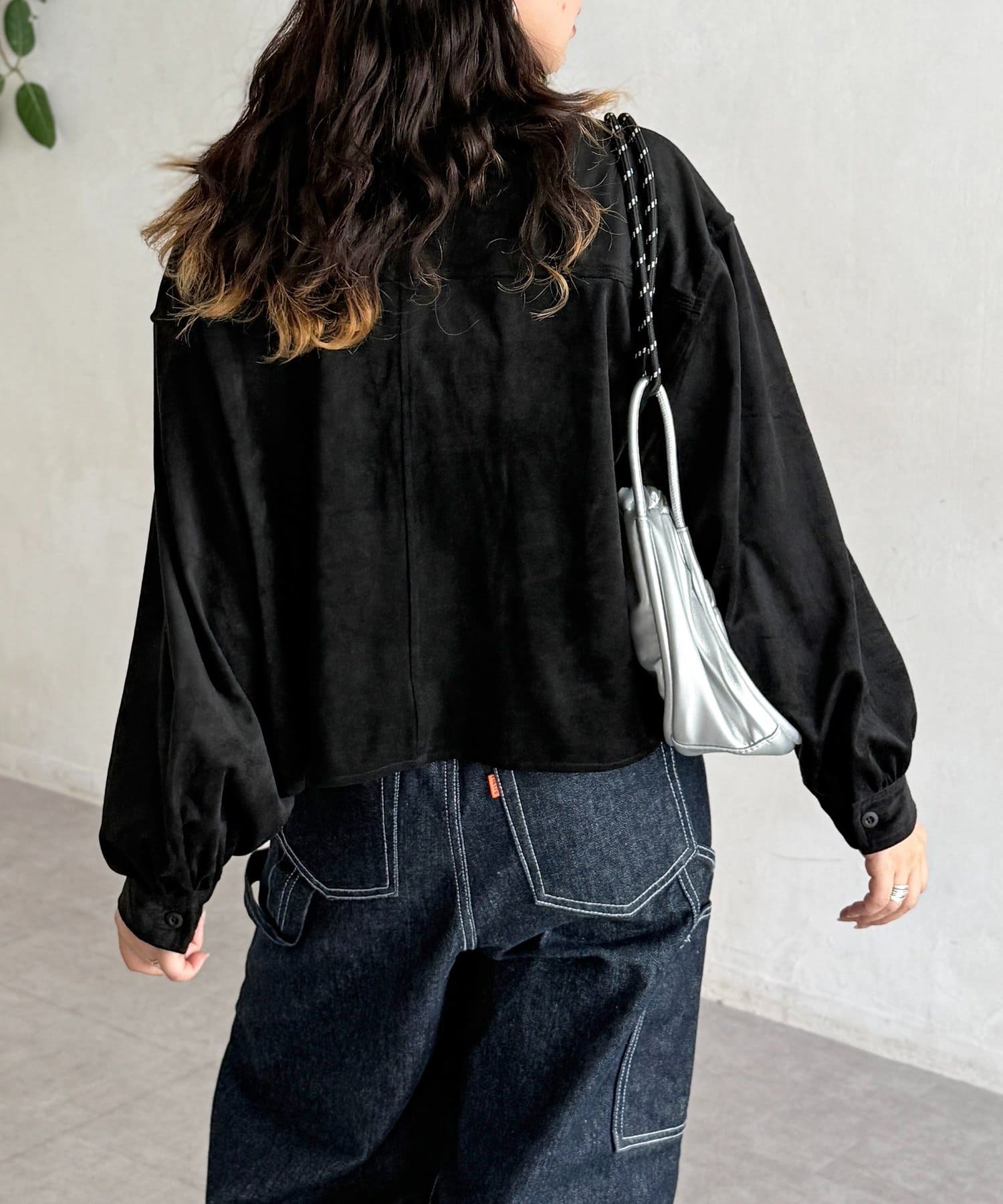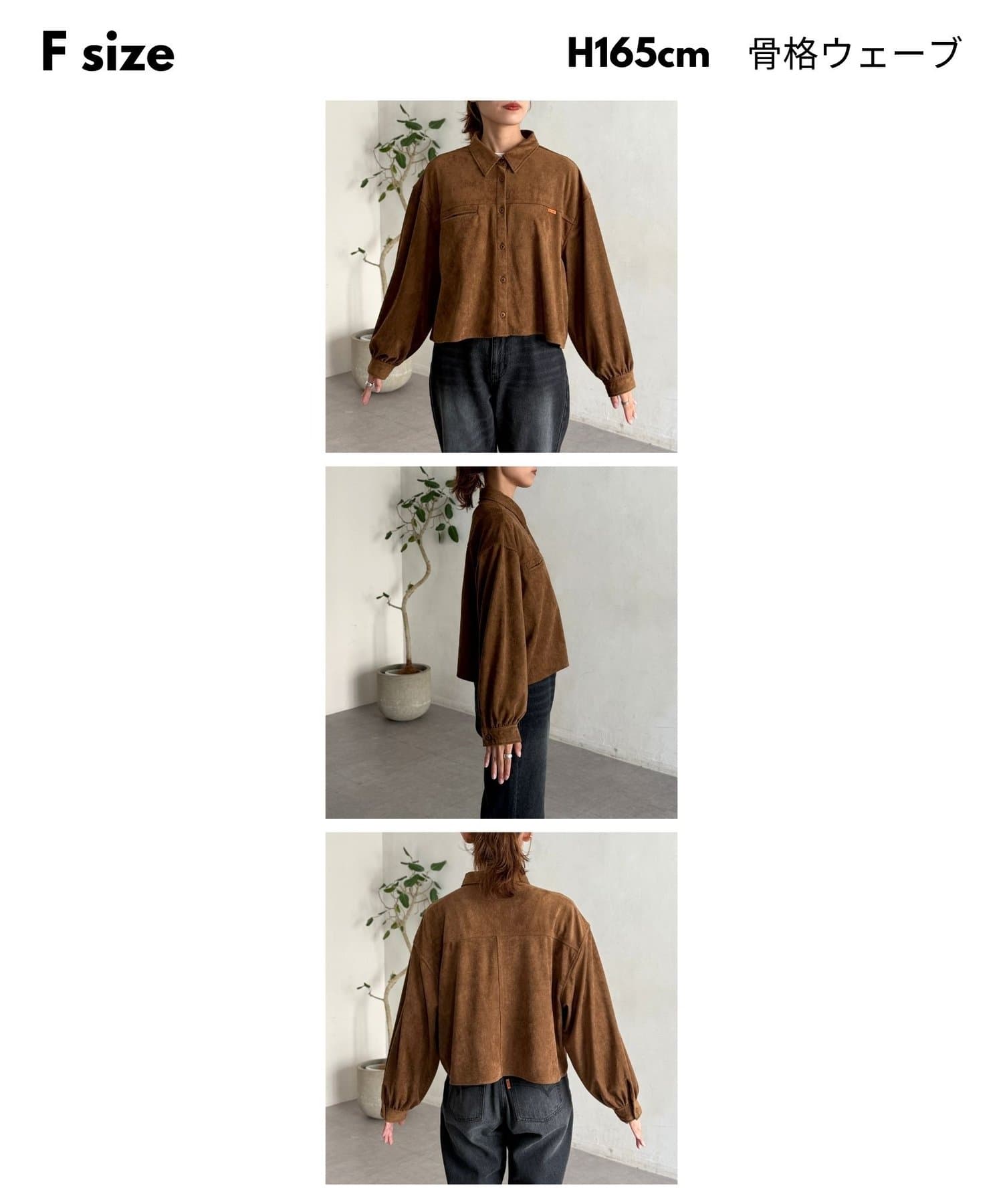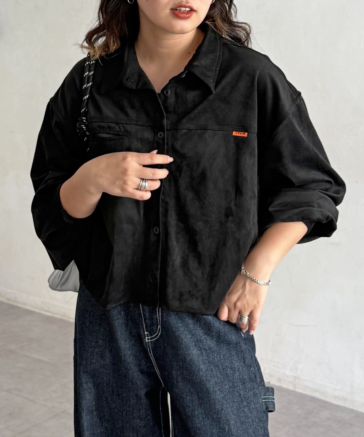 短めの丈感でスタイルアップできる秋冬にぴったりなスエードシャツ!