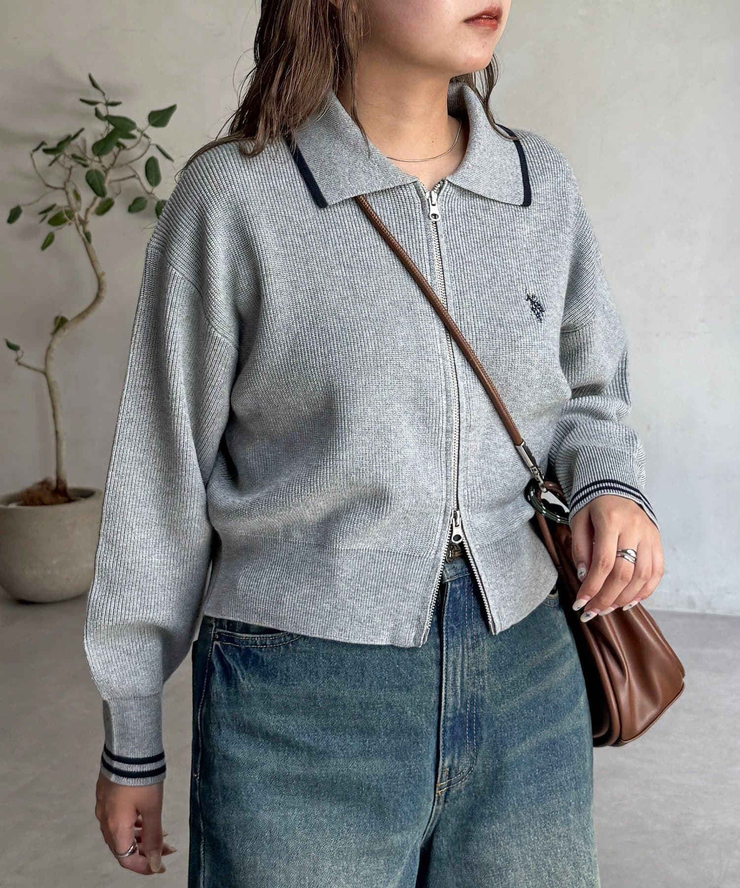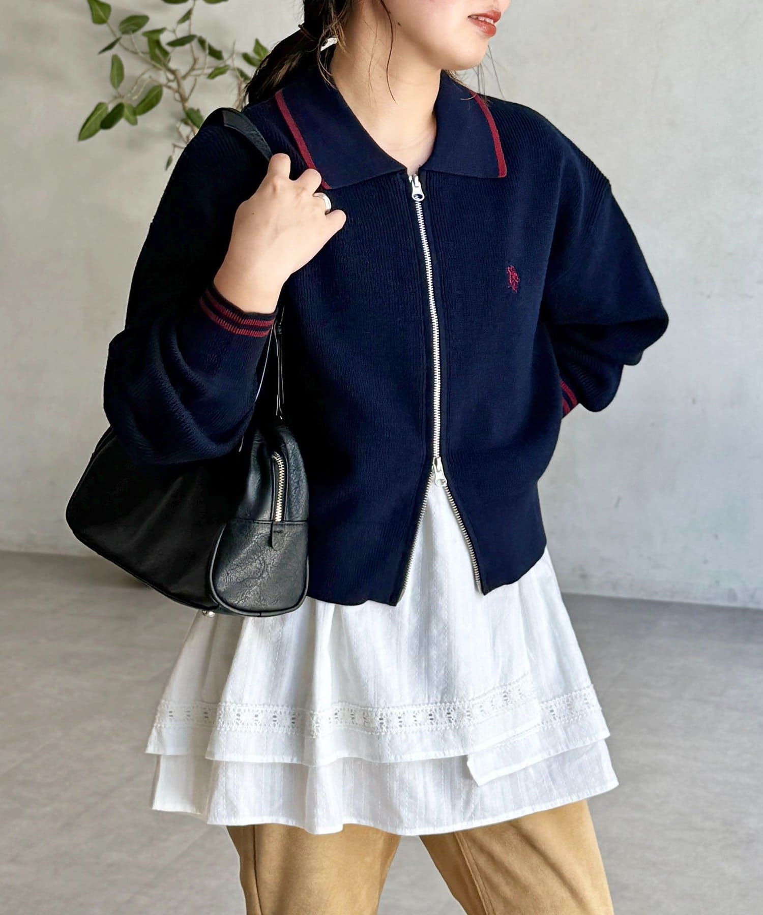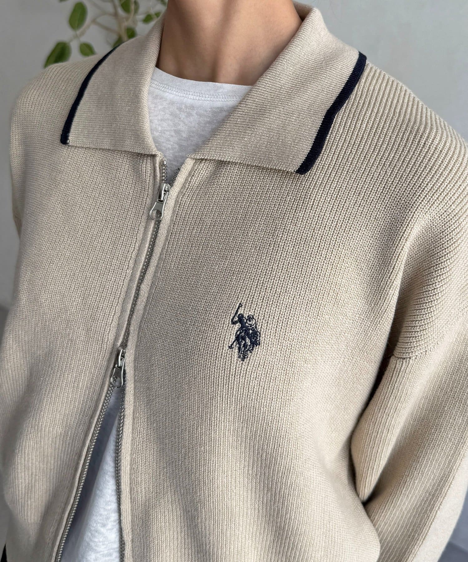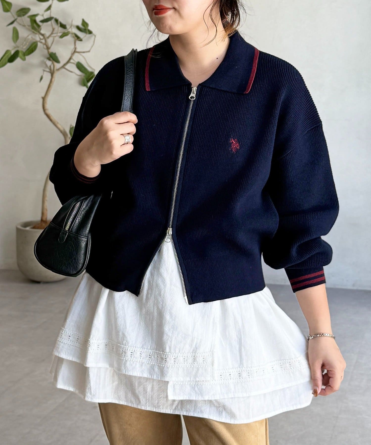【U.S. POLO ASSN.】襟付きジップカーディガン