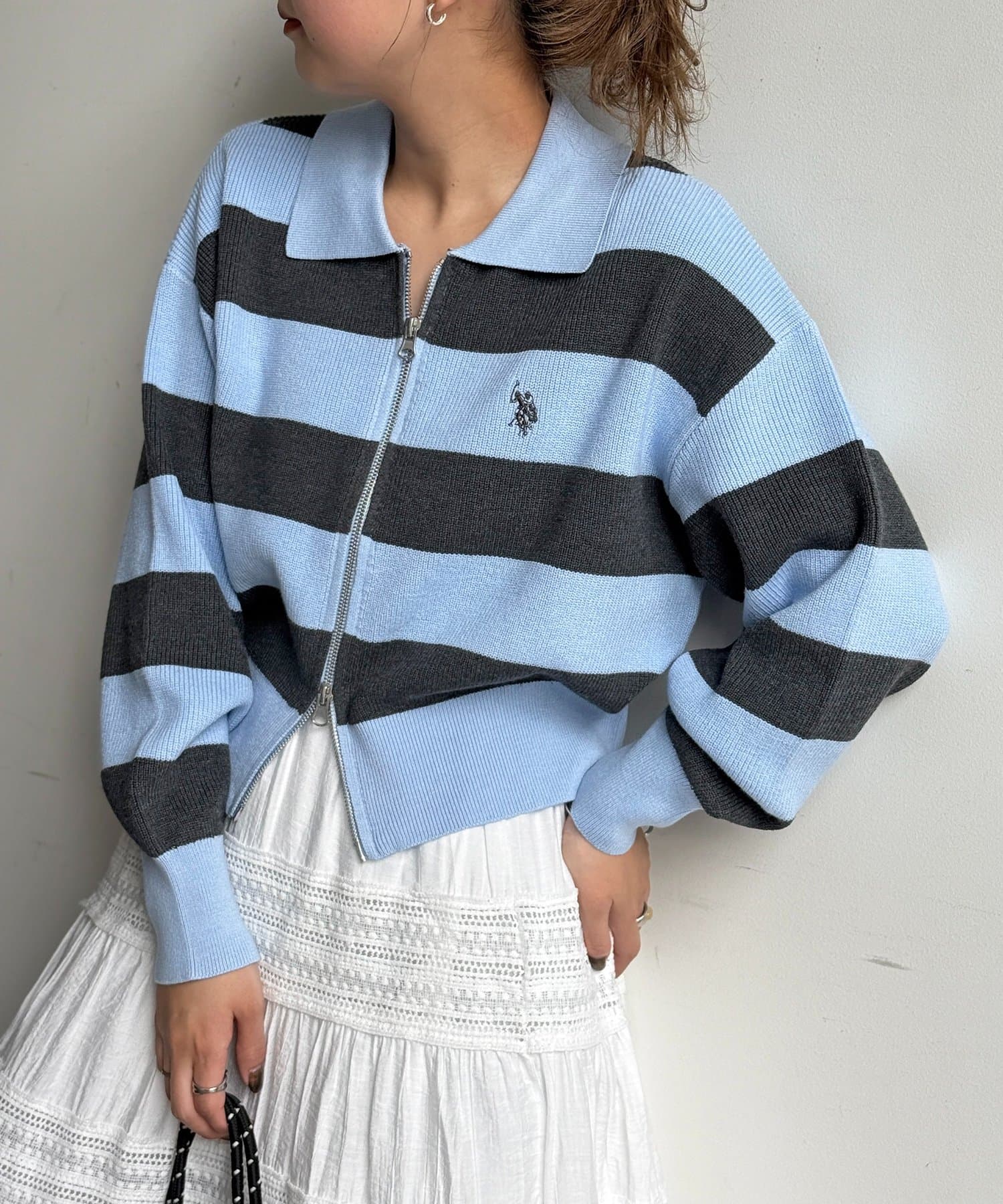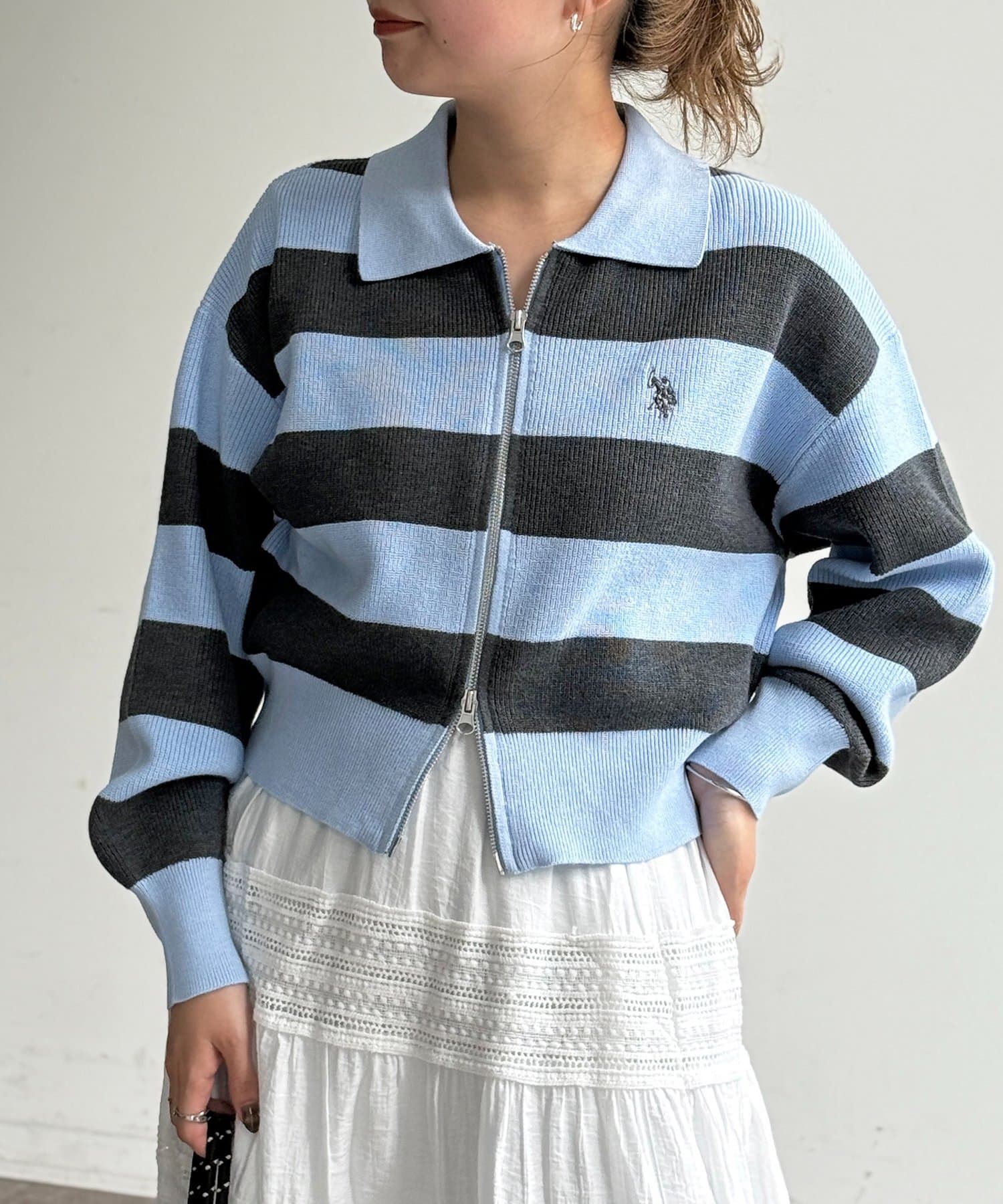 【U.S. POLO ASSN.】襟付きジップカーディガン