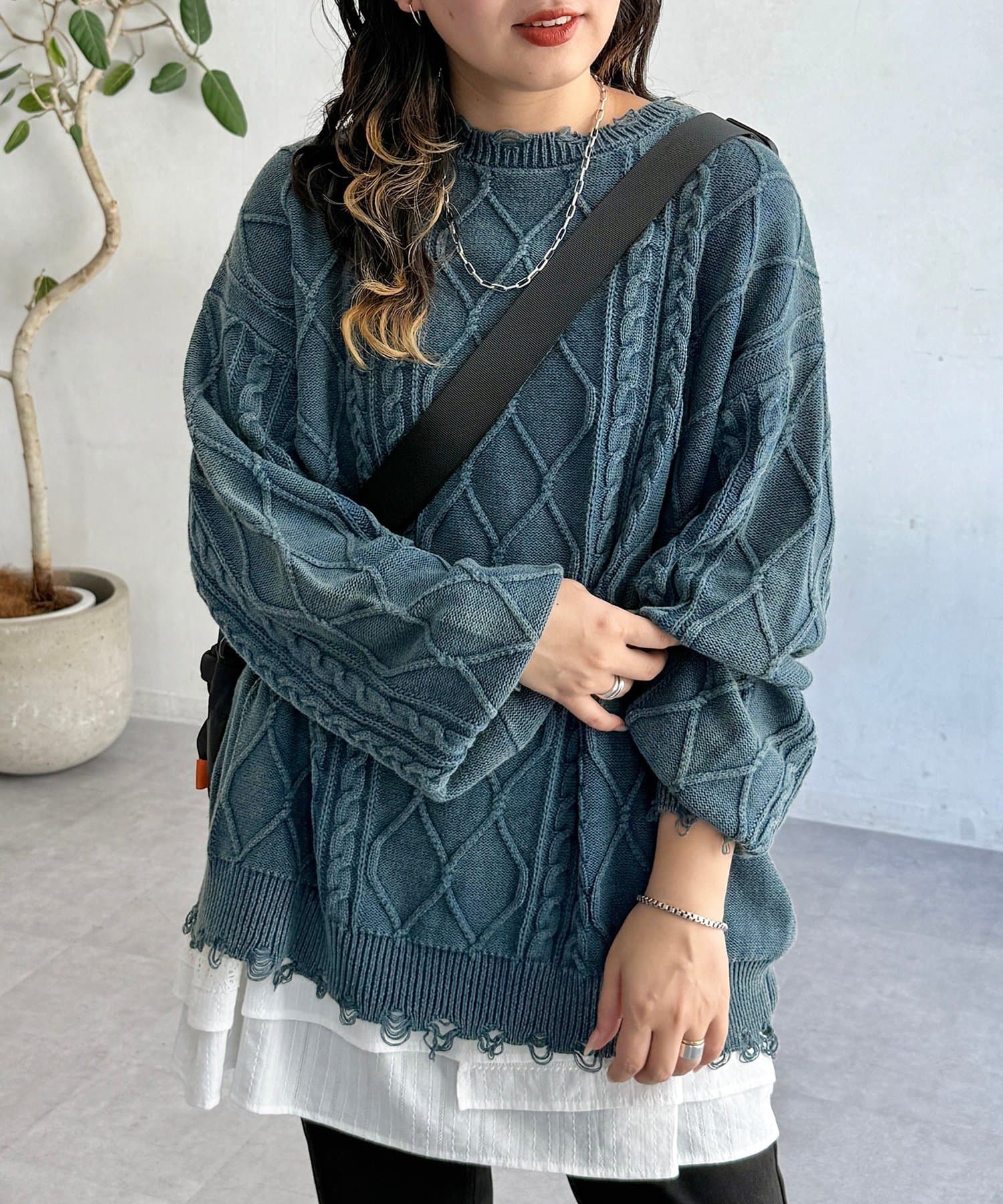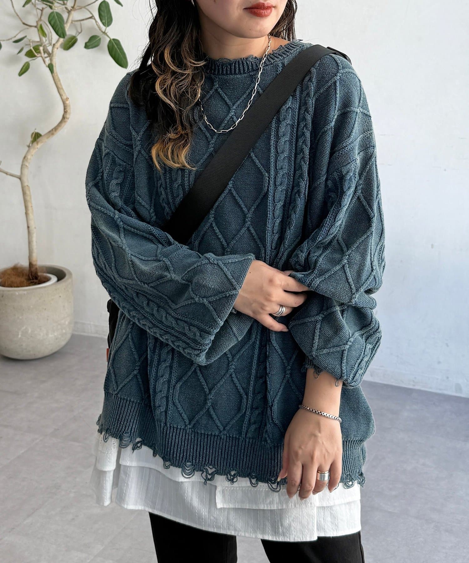 CPCM(シーピーシーエム) ピグメントケーブルダメージニット