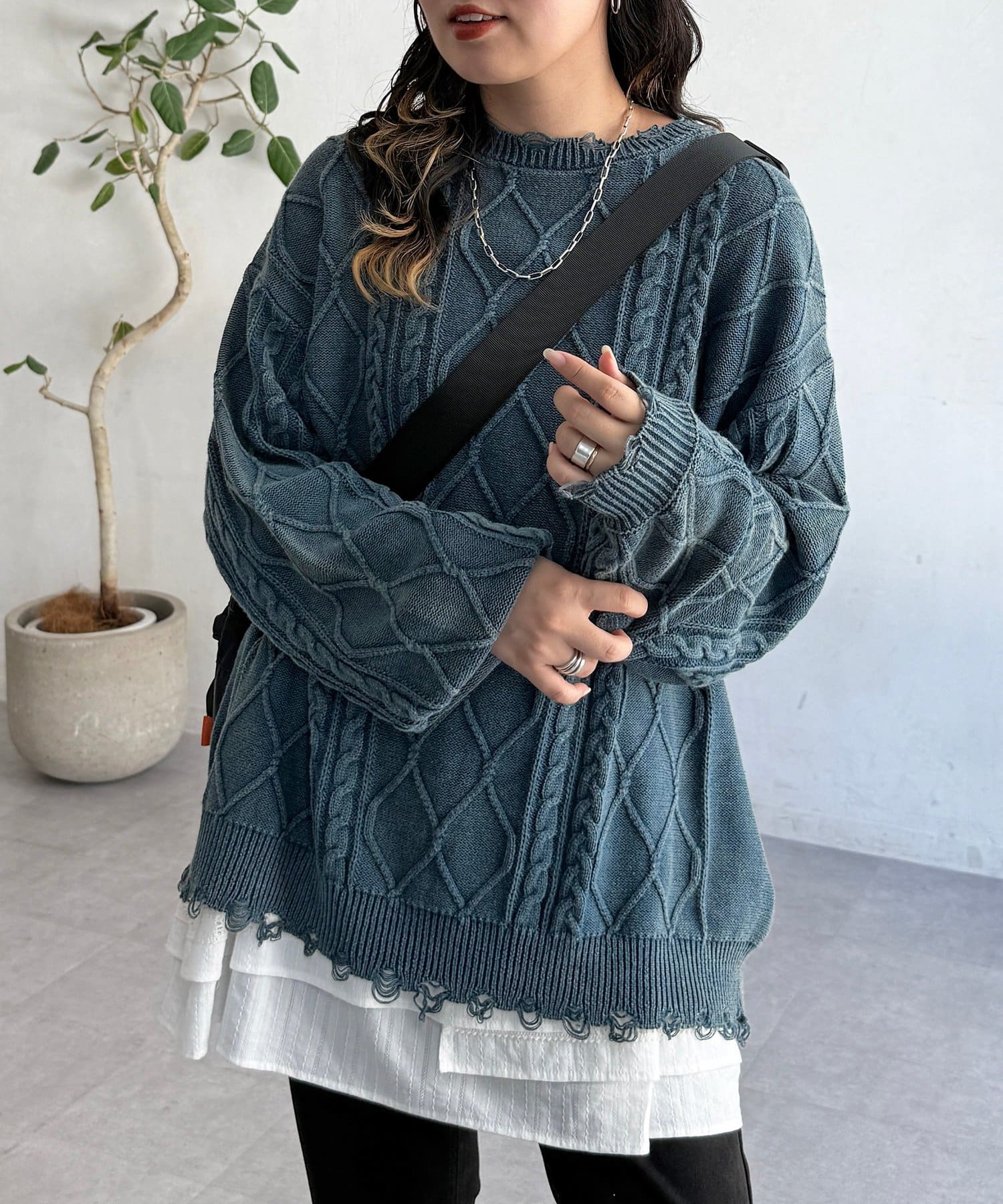 • CPCM(シーピーシーエム) ピグメントケーブルダメージニット