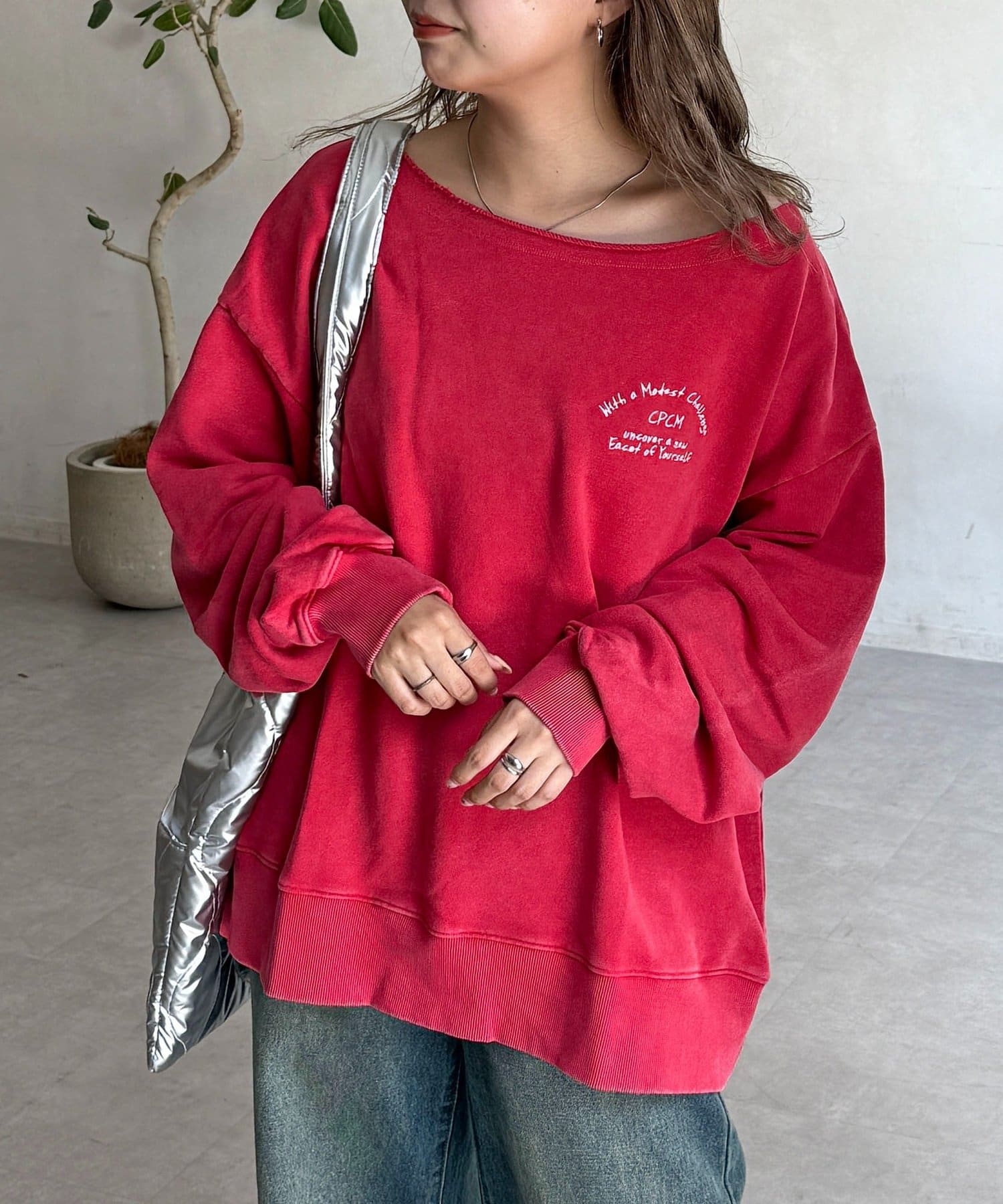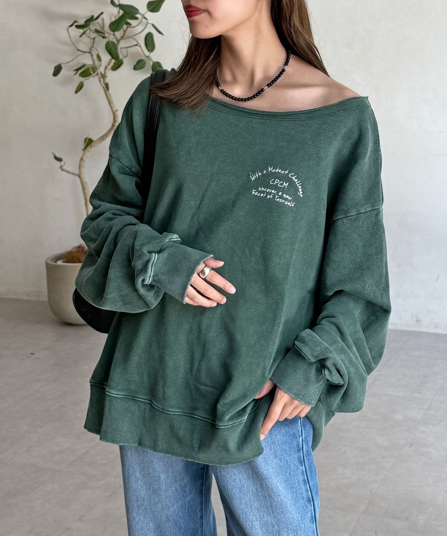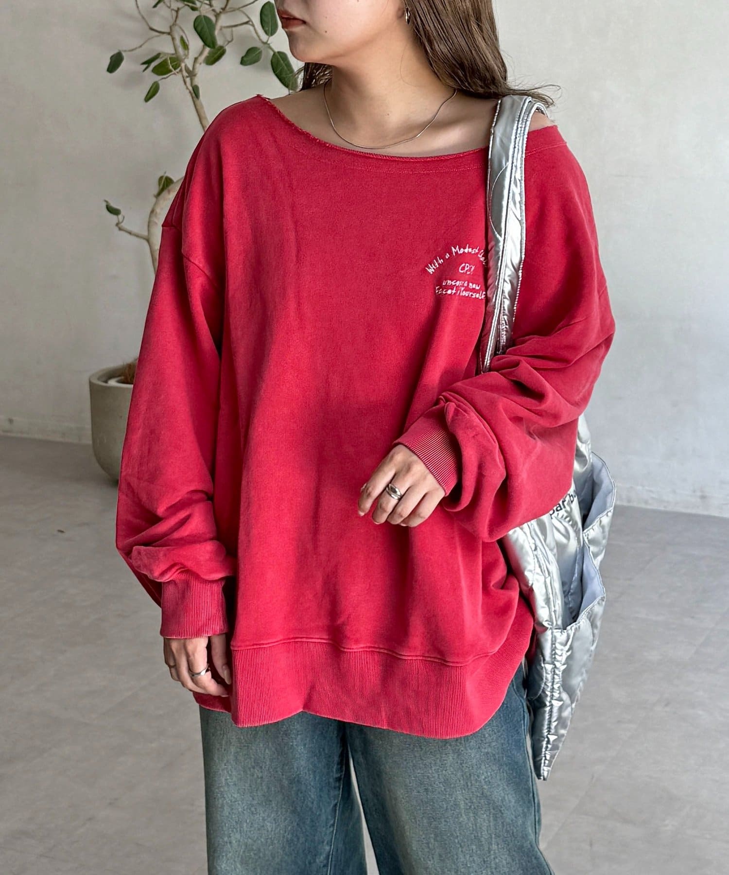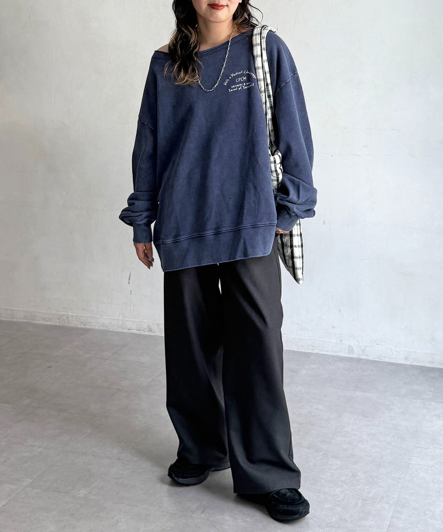 抜け感たっぷり!ヴィンテージライクなオフショルスウェット!