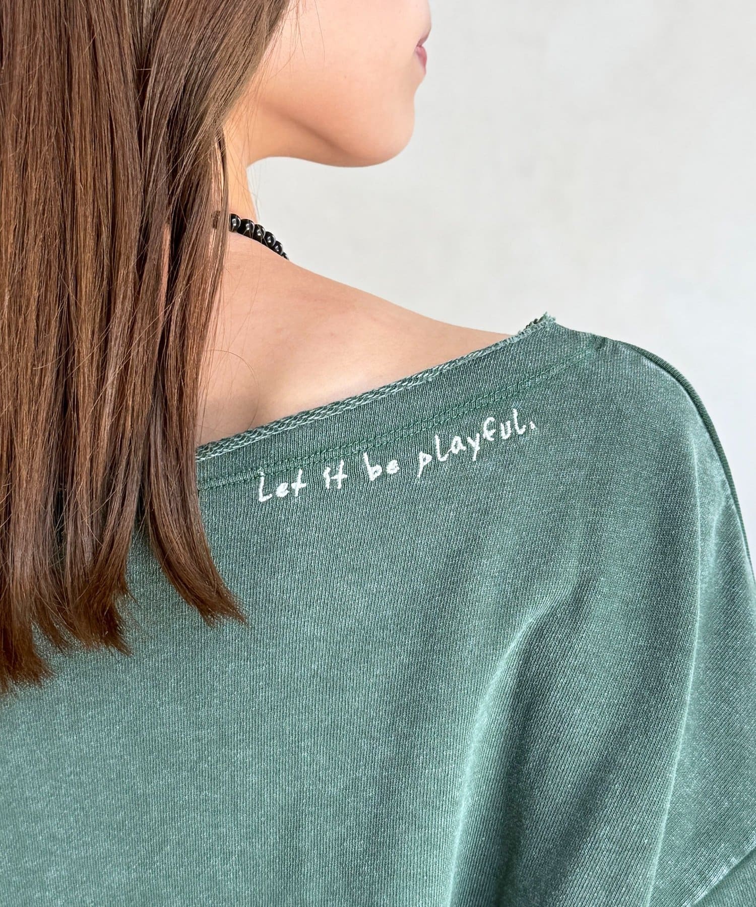 ・ゆったりサイズや、切りっぱなしデザインのネック、パウダー加工とカジュアル要素強めの中に、