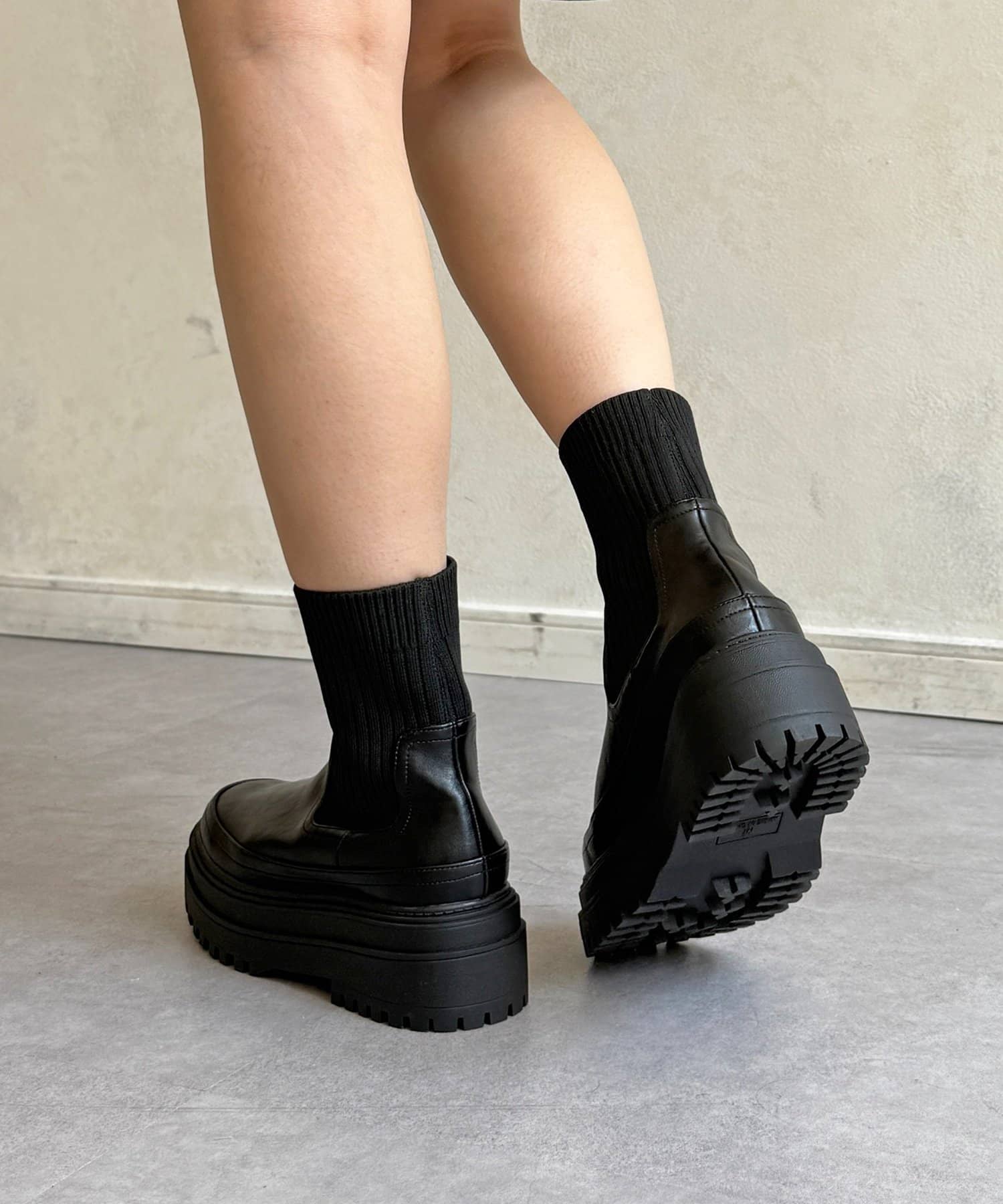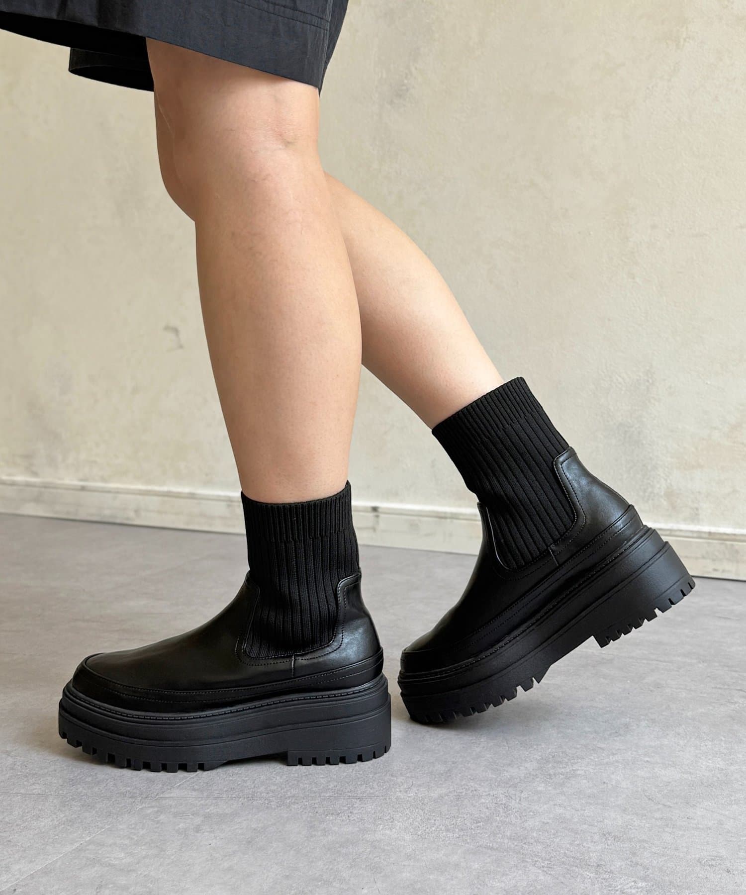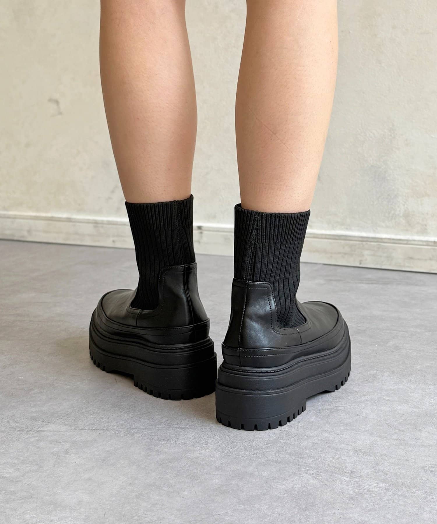 履くだけでスタイルアップが叶う厚底ニットブーツ!