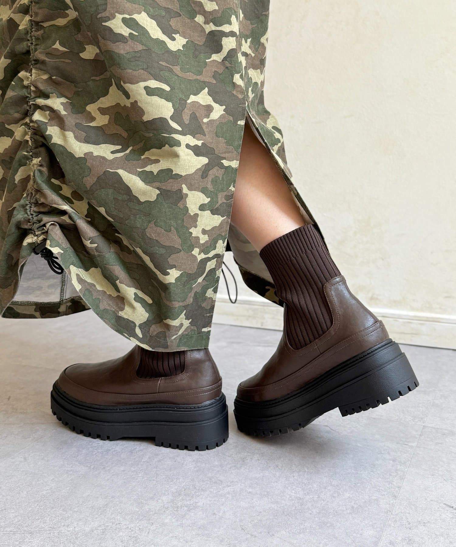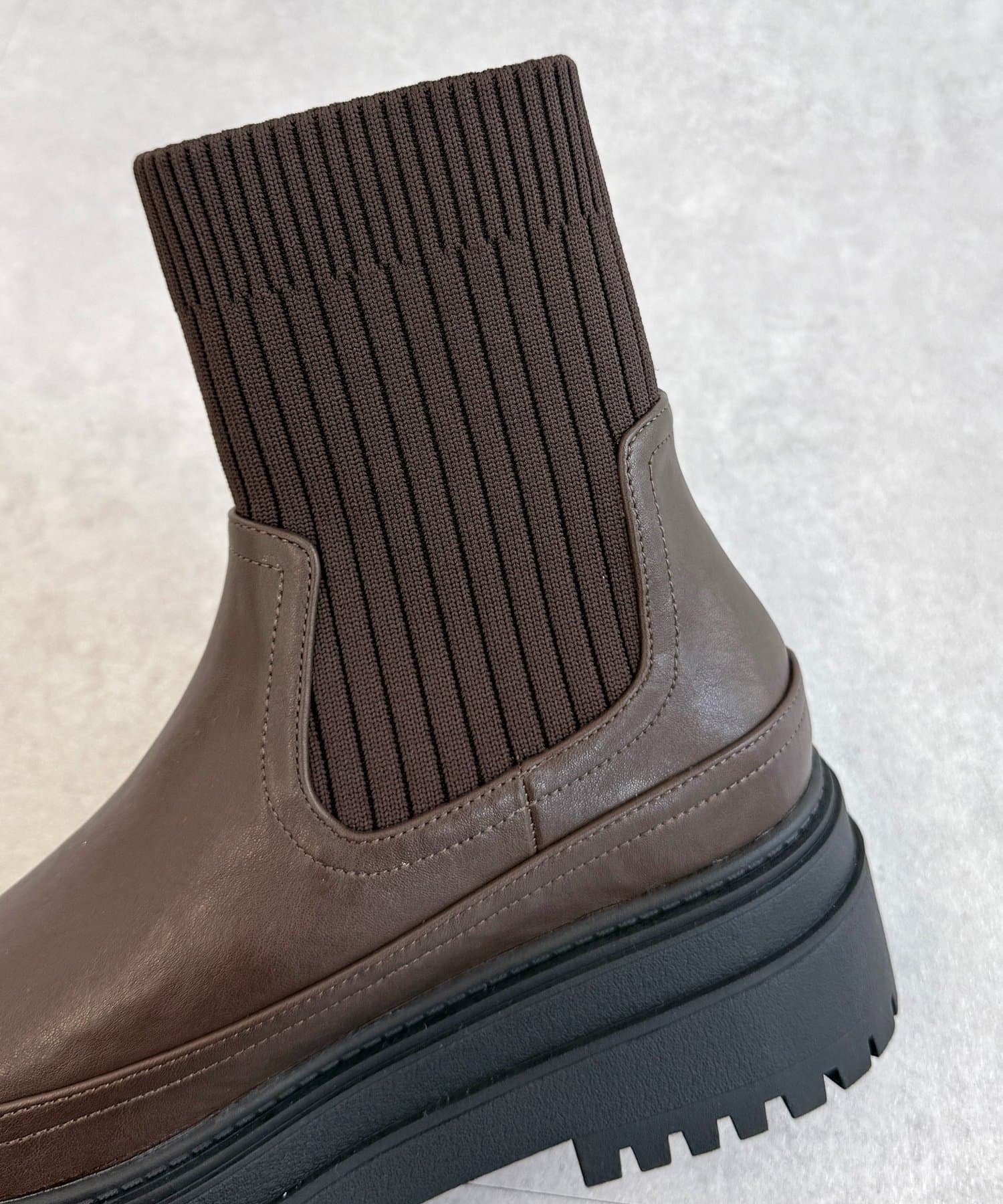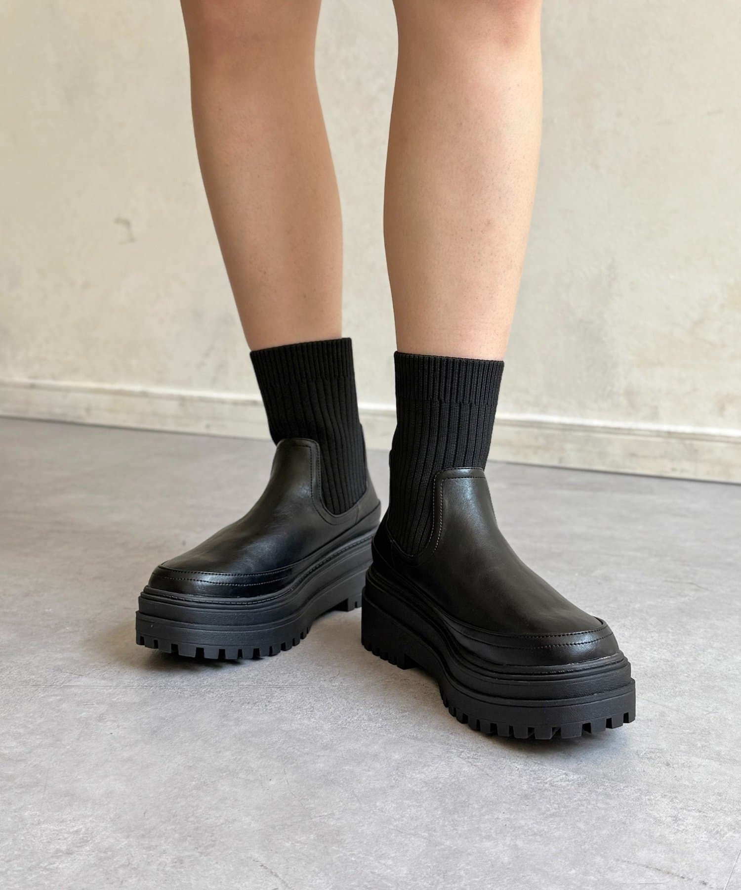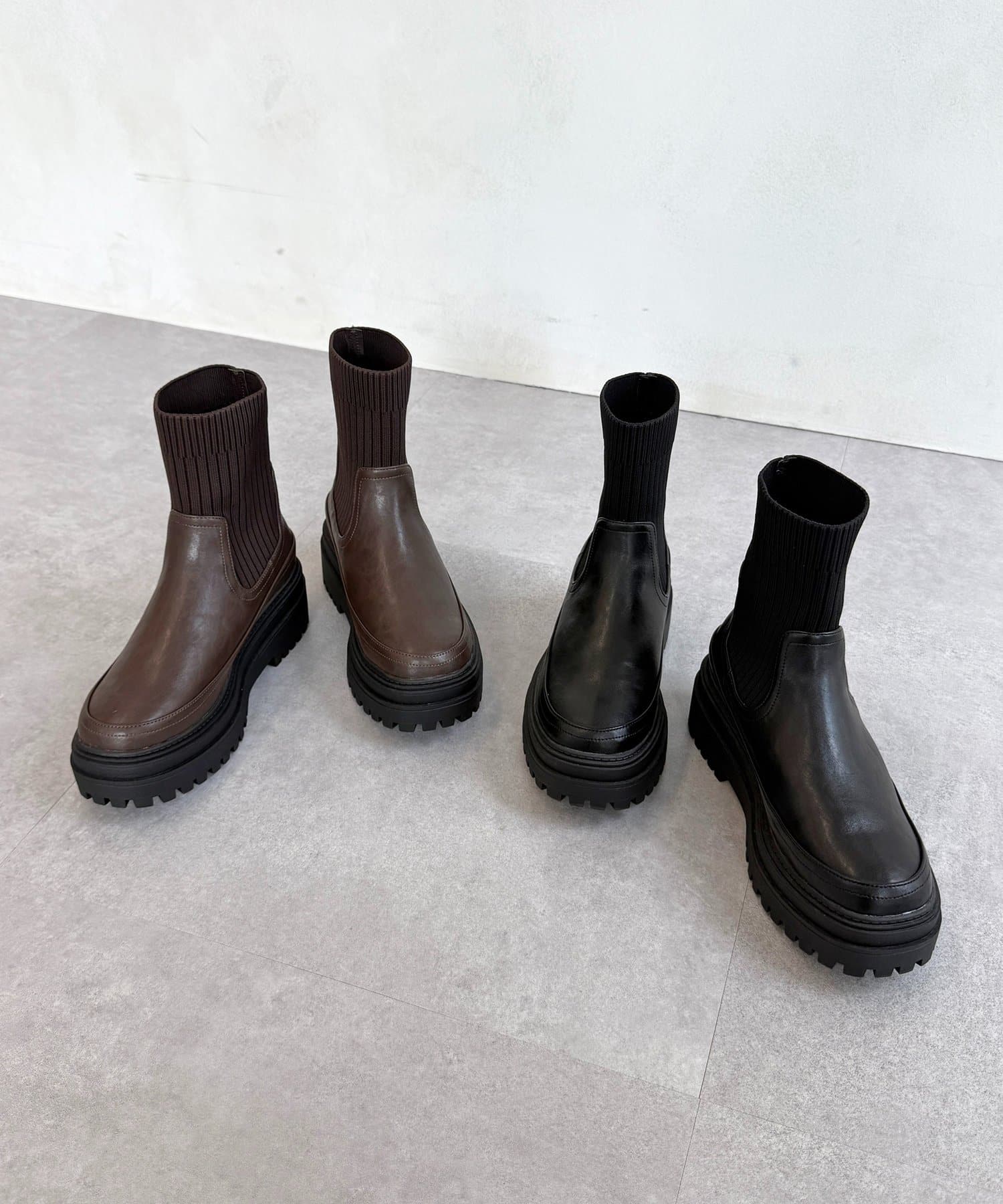 履くだけでスタイルアップが叶う厚底ニットブーツ!
