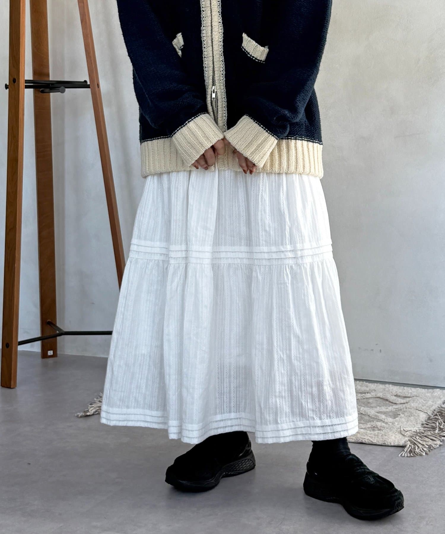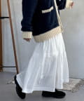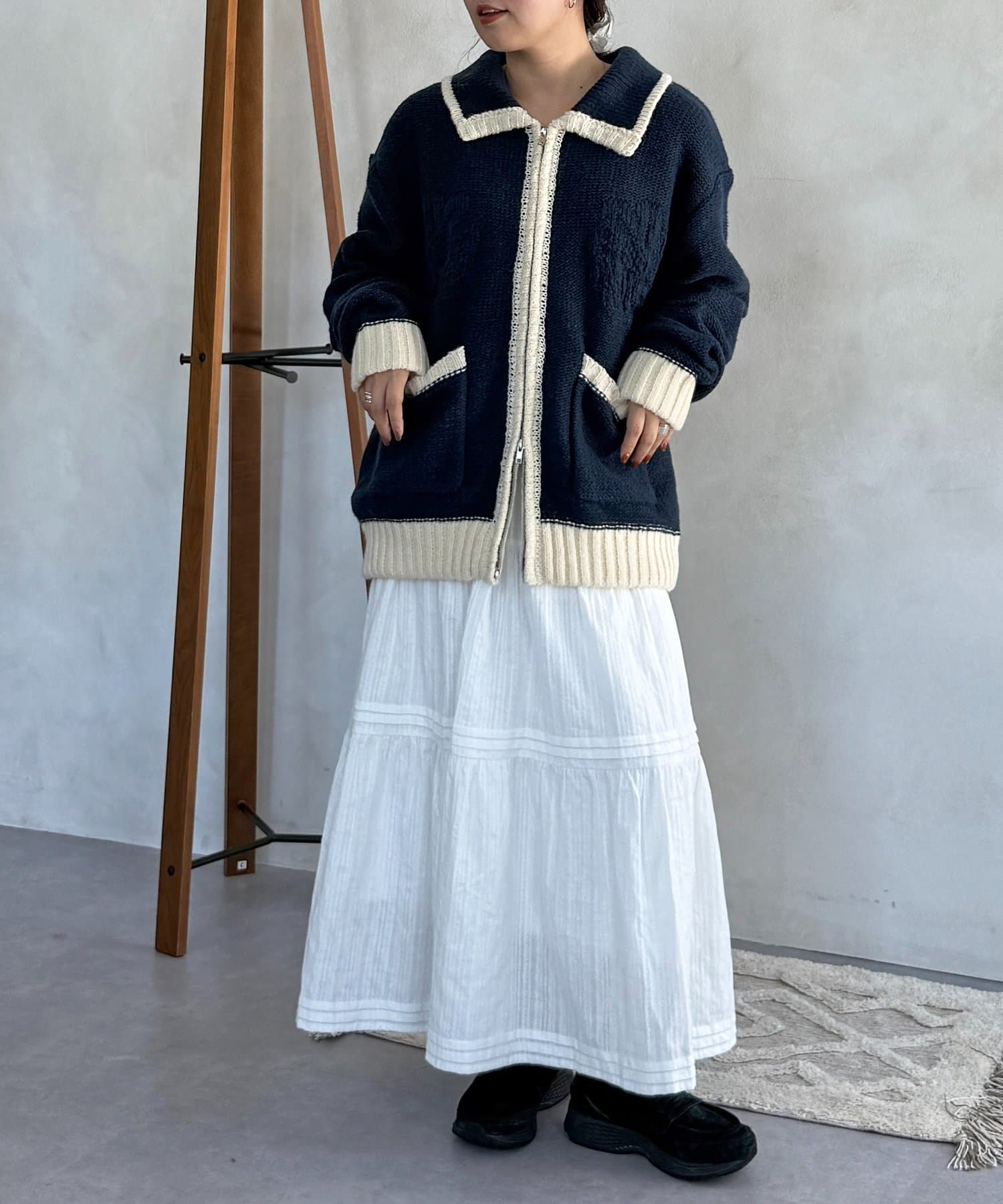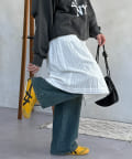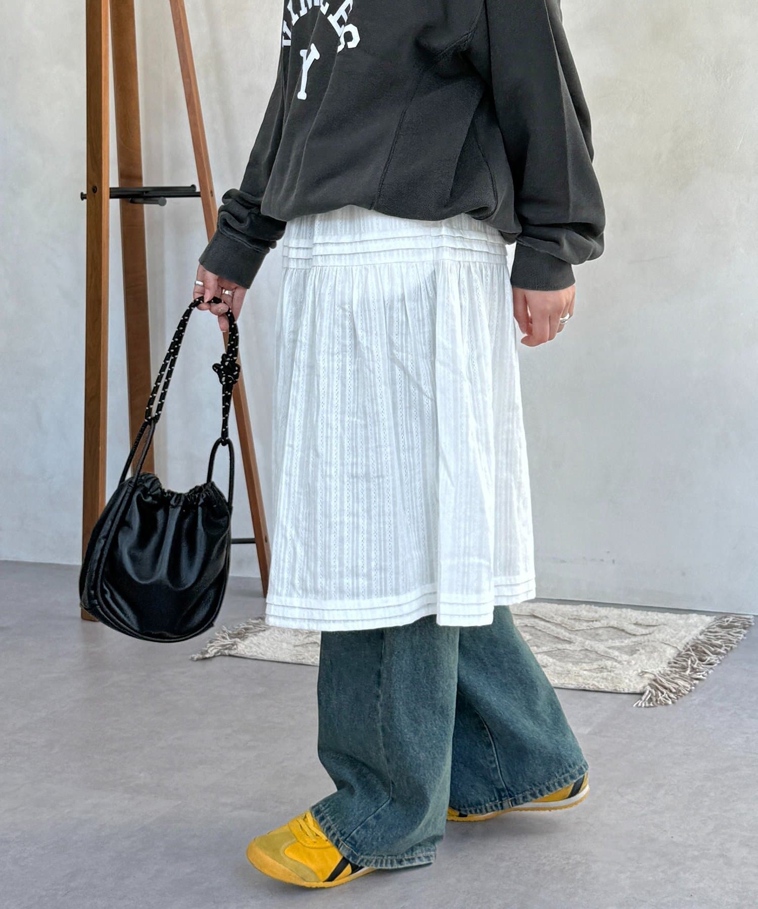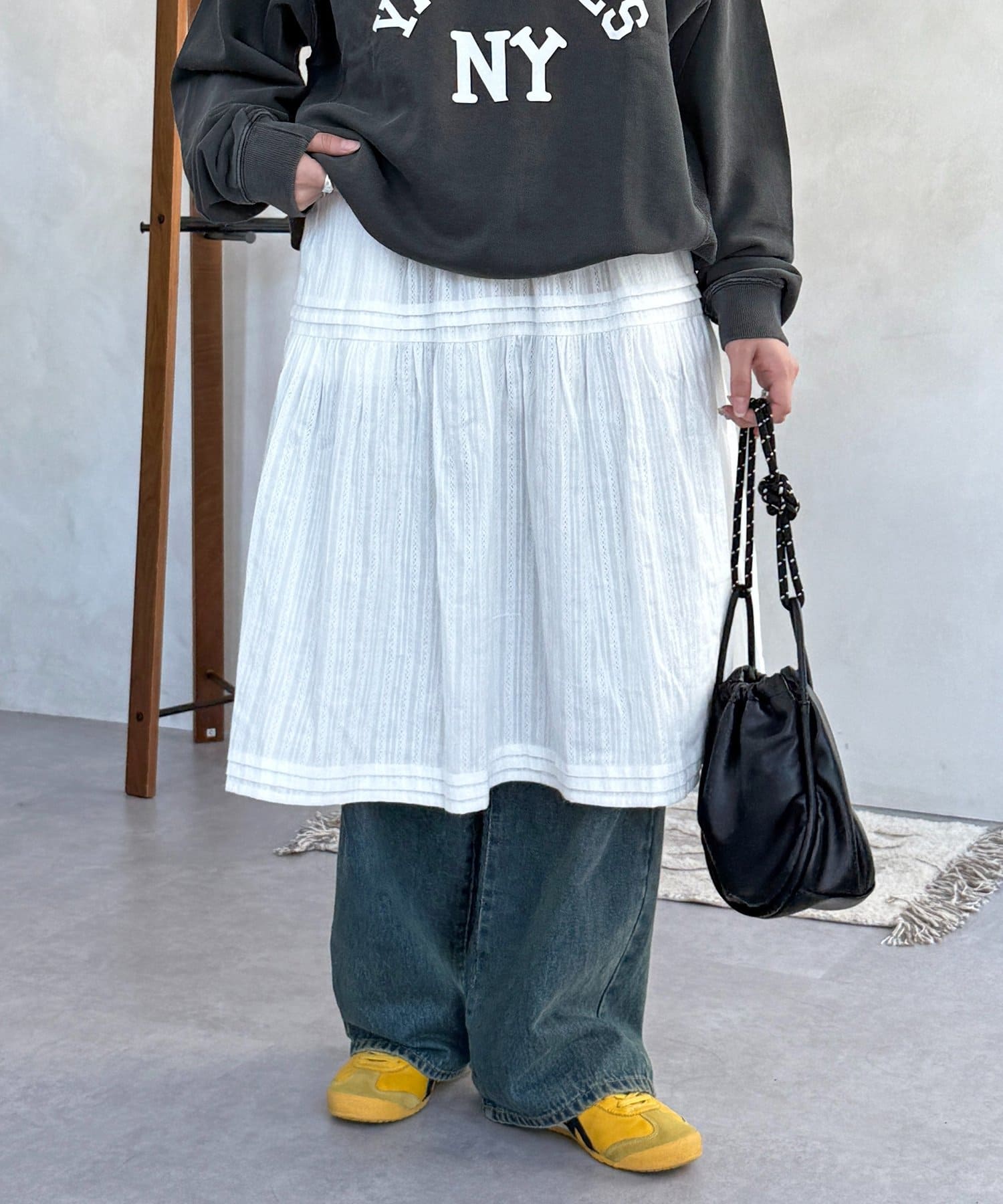 ・ゆったりとしたニットやカーディガンと合わせて、ちょっぴりガーリーなスタイルに