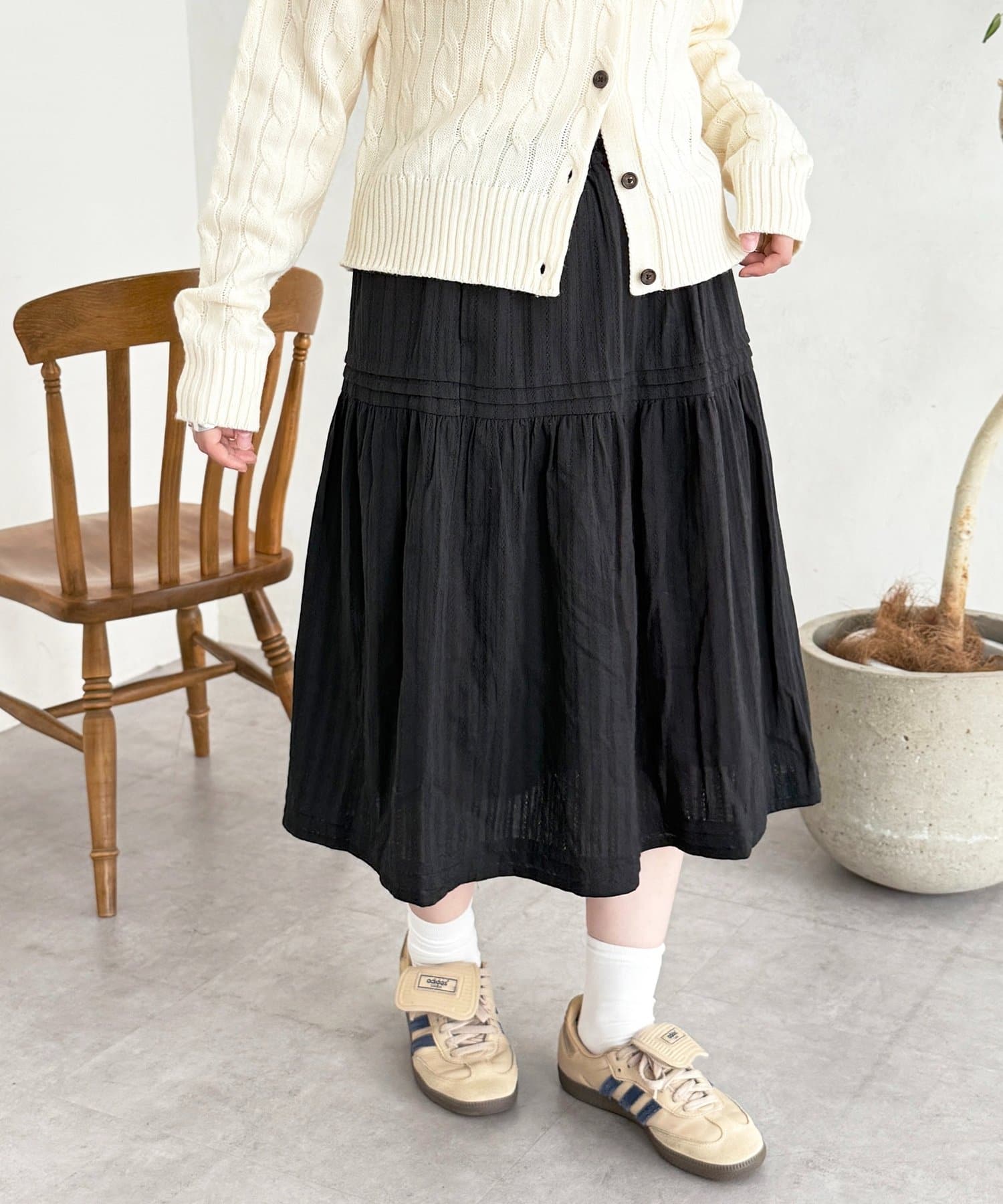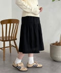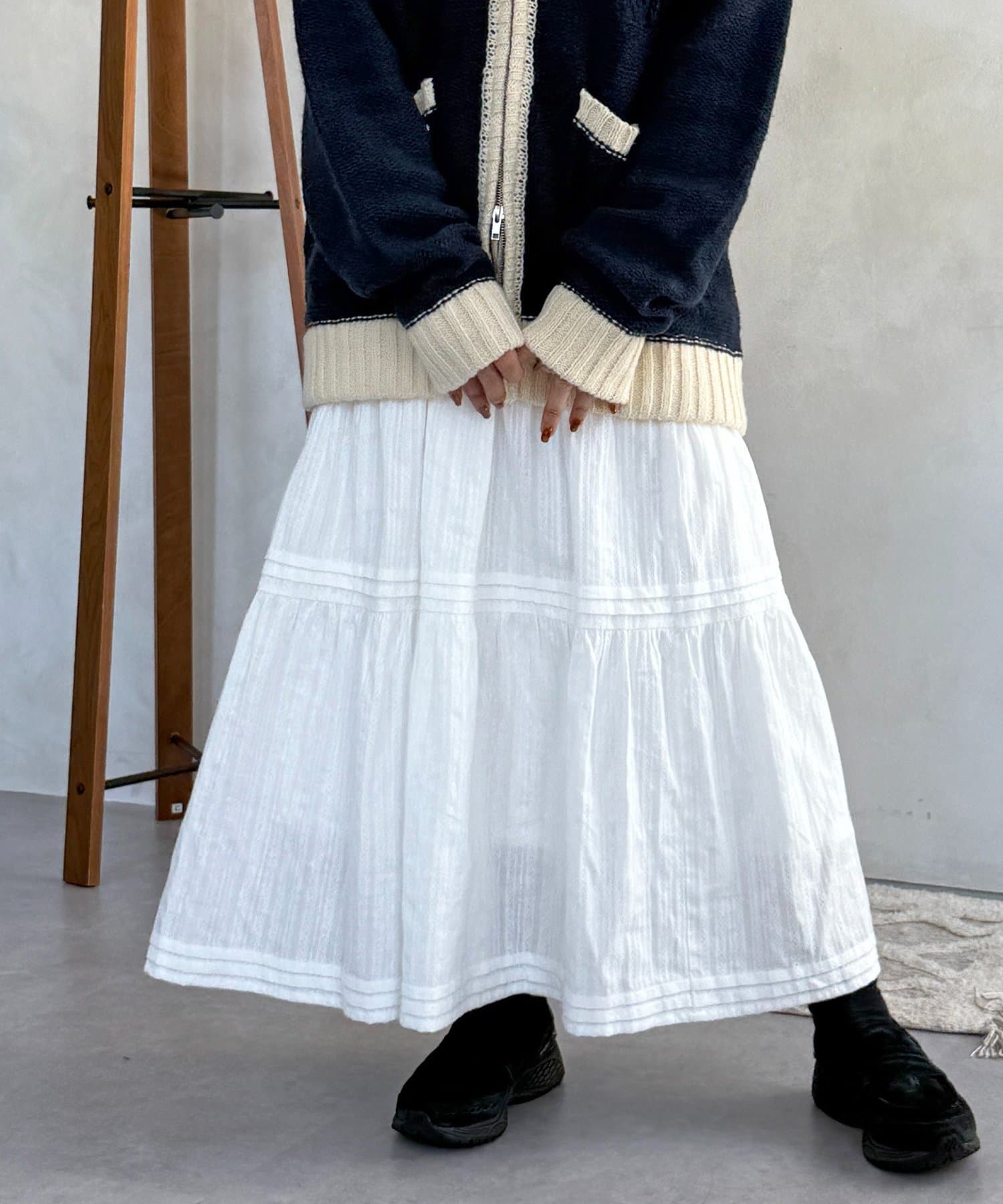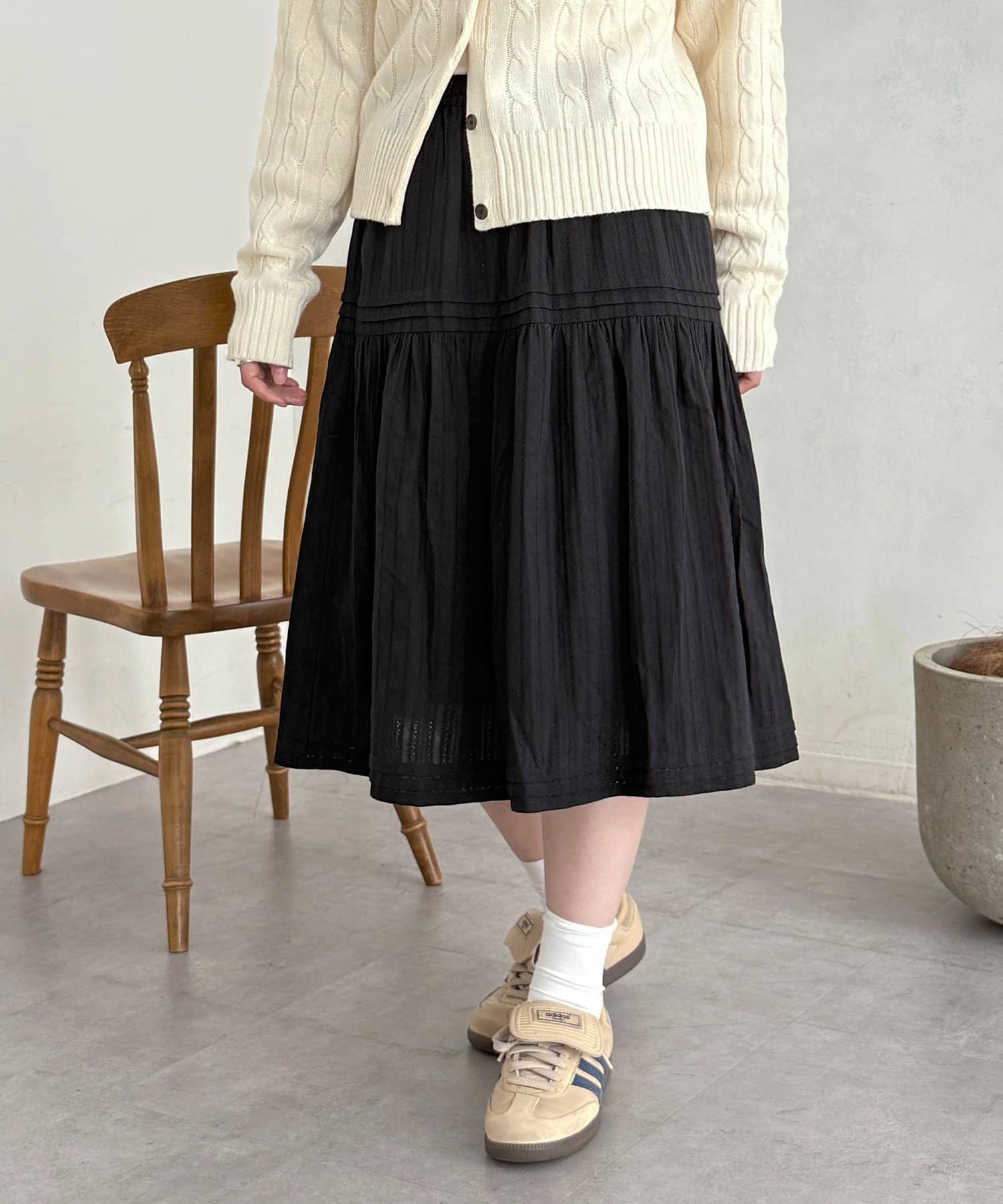 ・ゆったりとしたニットやカーディガンと合わせて、ちょっぴりガーリーなスタイルに
