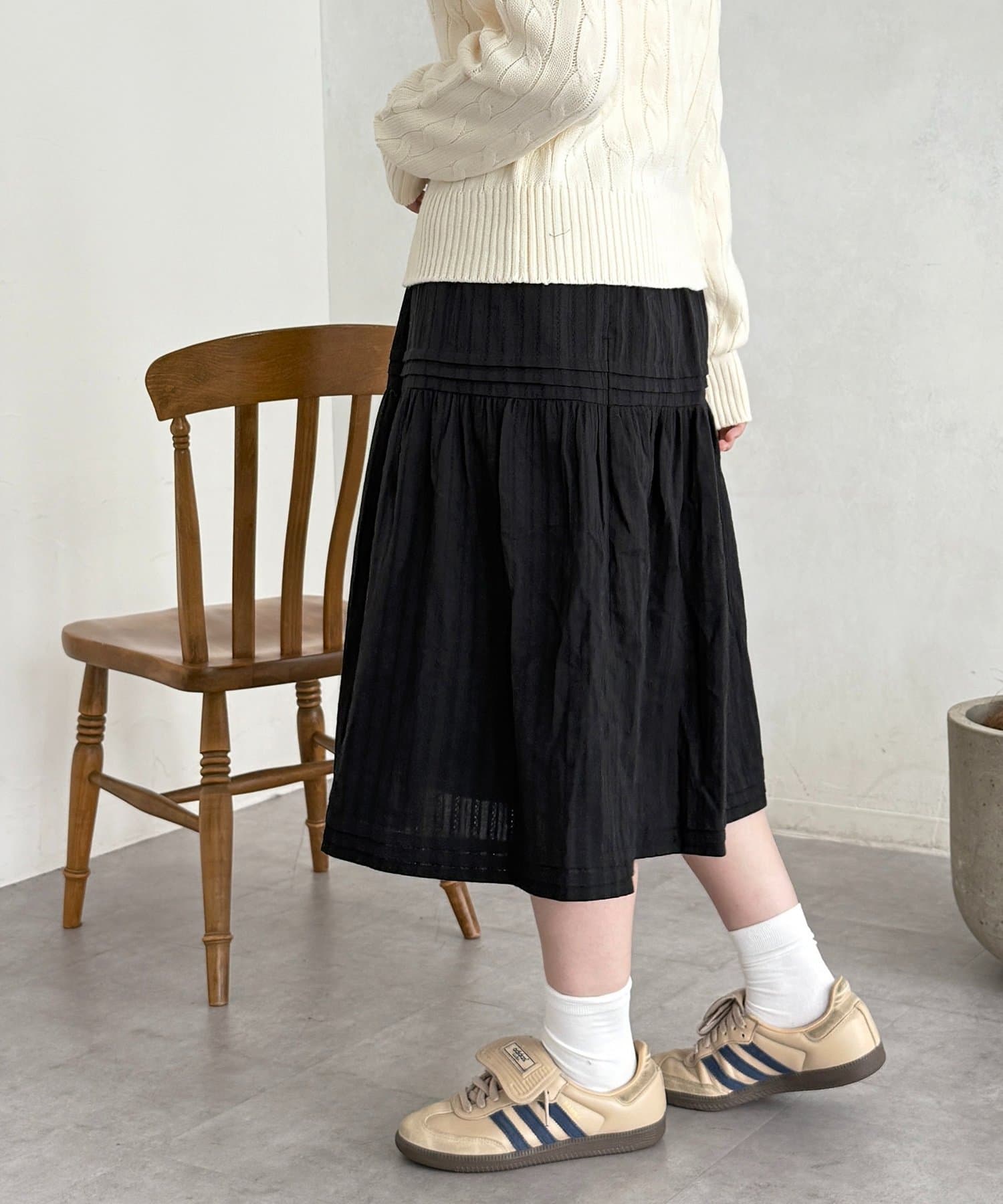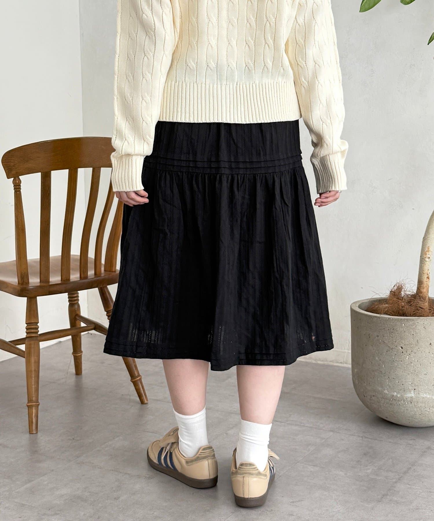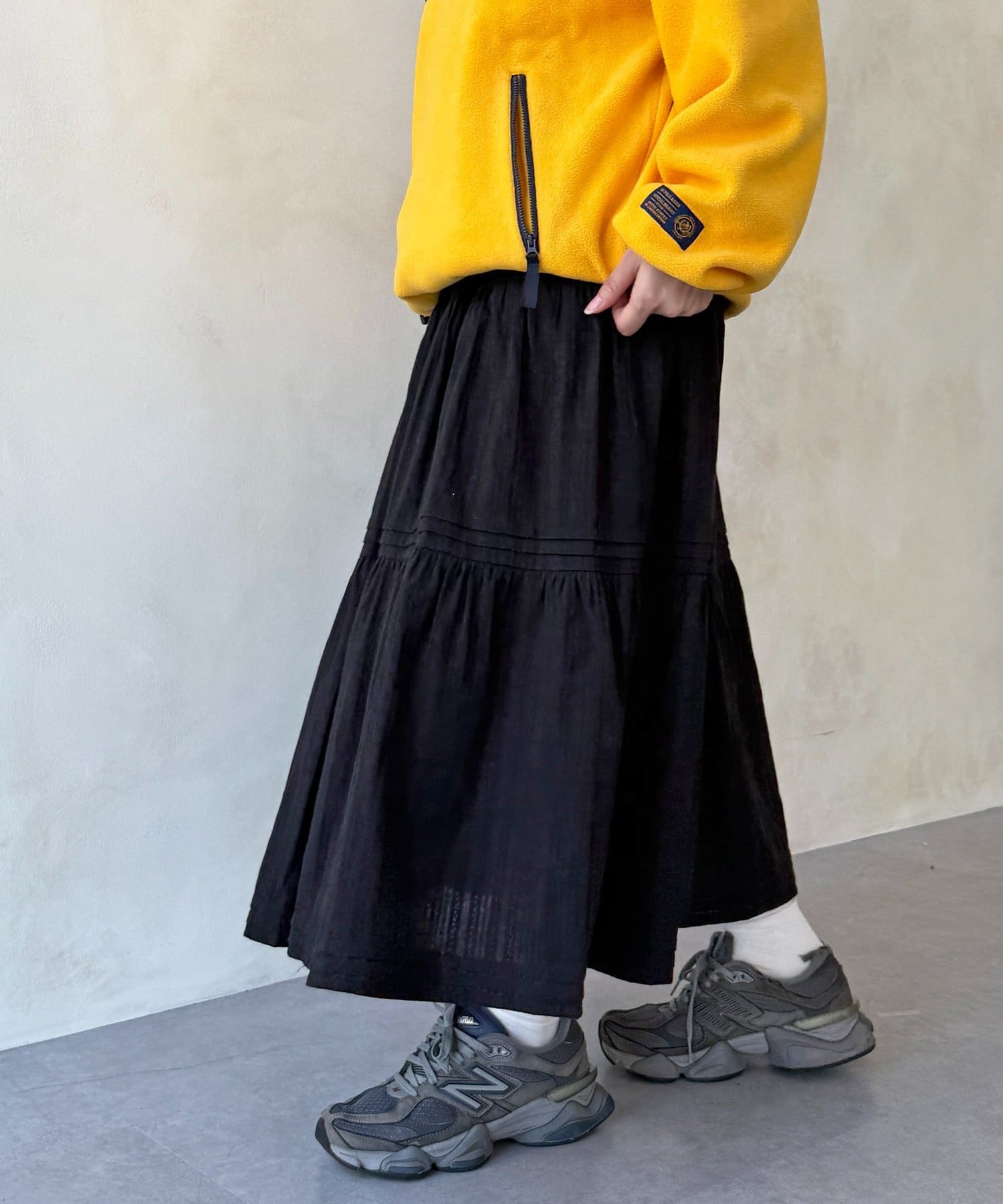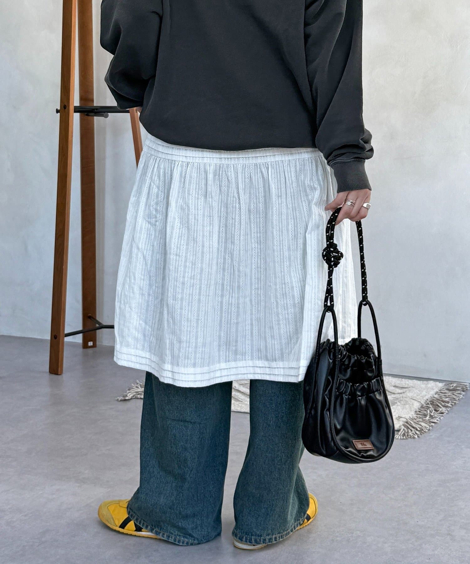 ・ゆったりとしたニットやカーディガンと合わせて、ちょっぴりガーリーなスタイルに