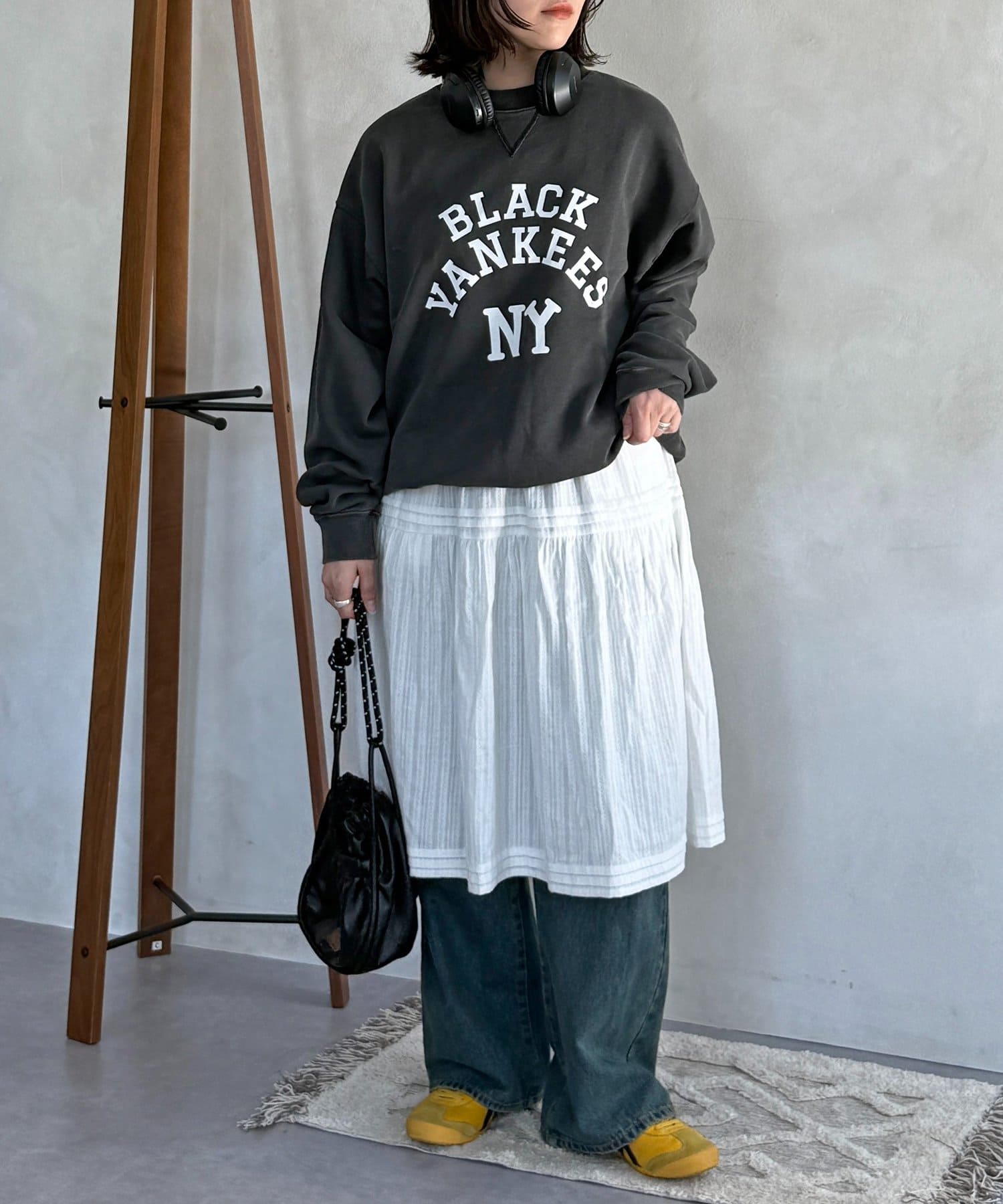・オーバーサイズのスウェット+デニムにレイヤードしてカジュアルスタイルに
