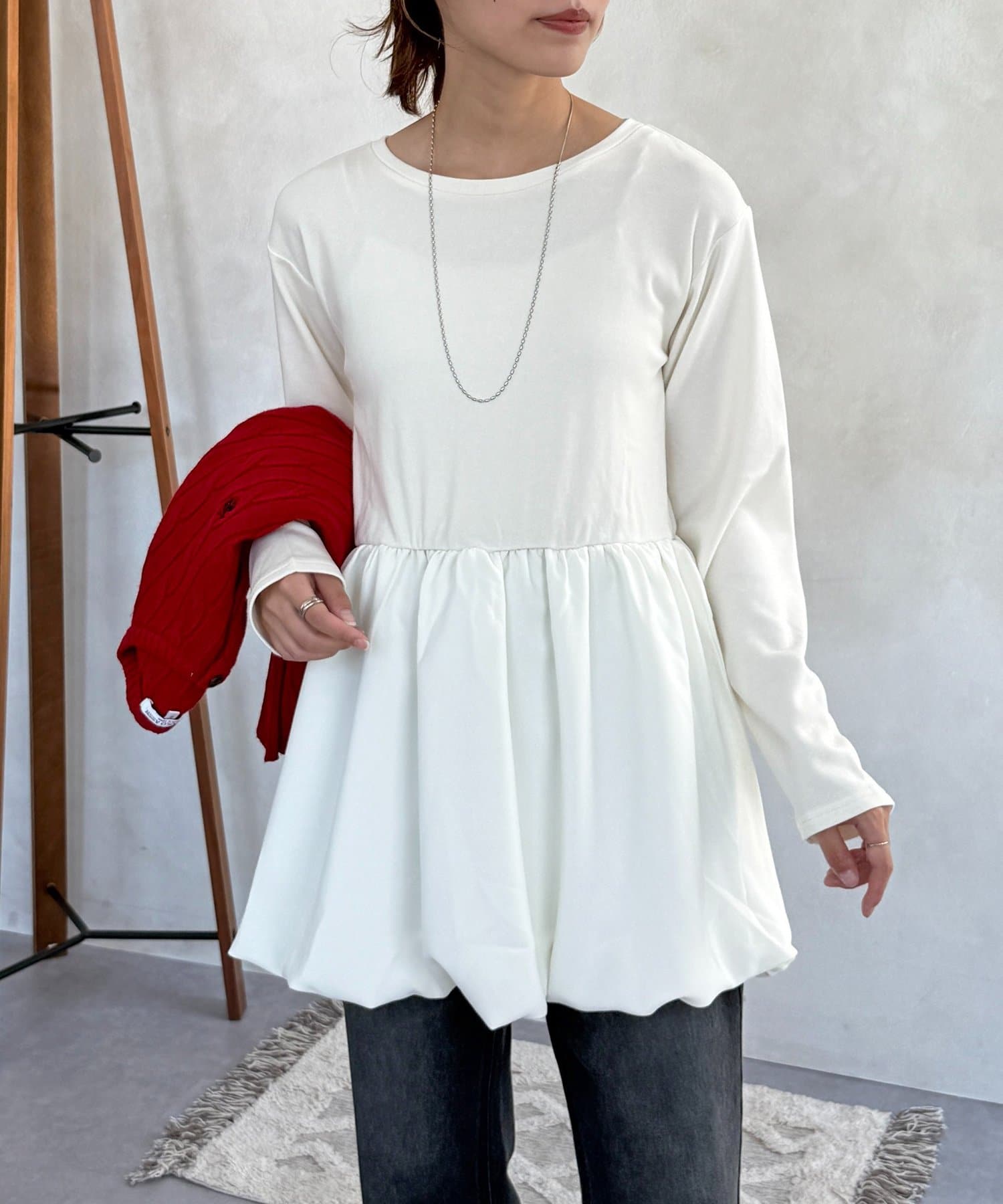 ふんわりシルエットが魅力!あったかデザイントップス