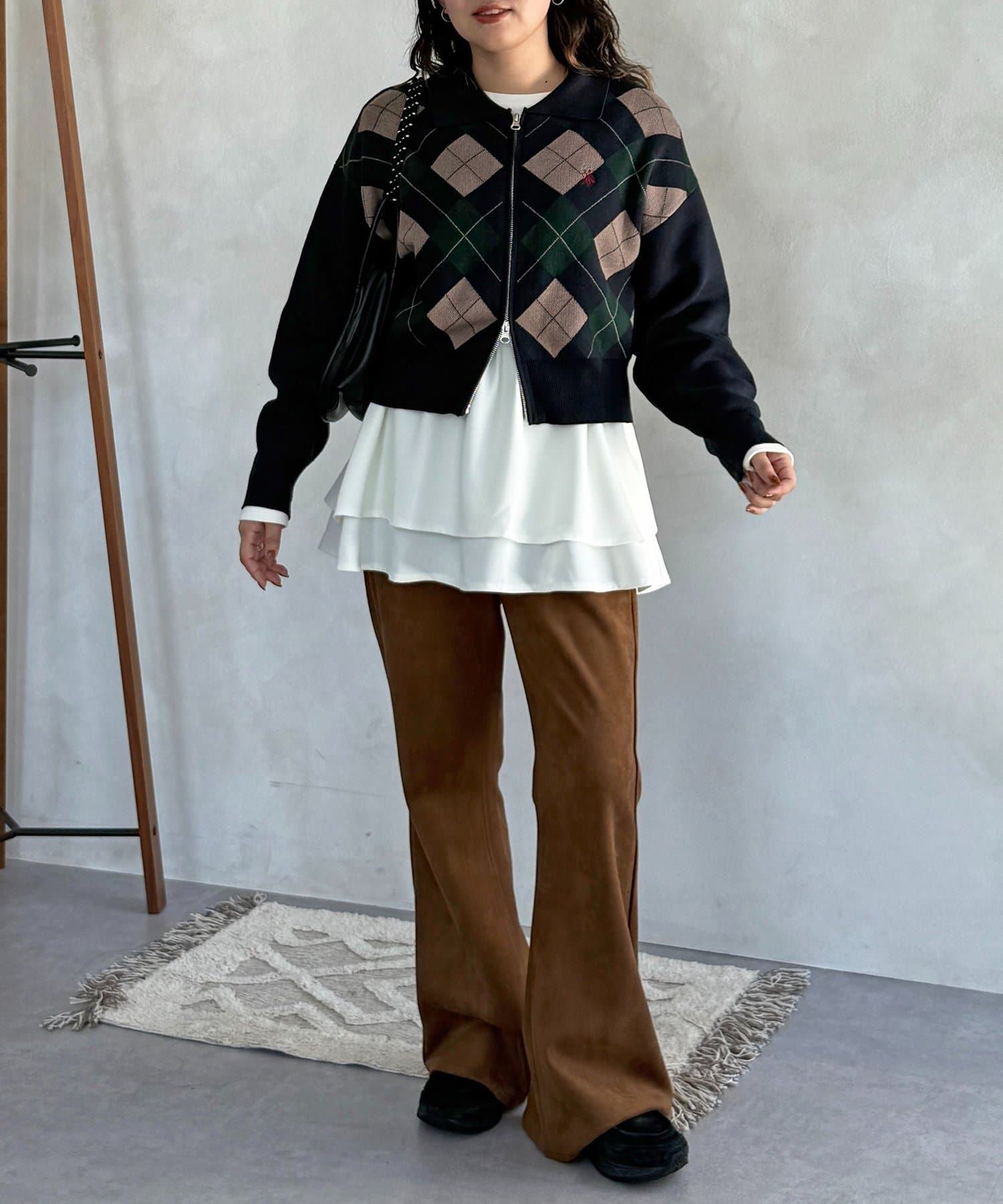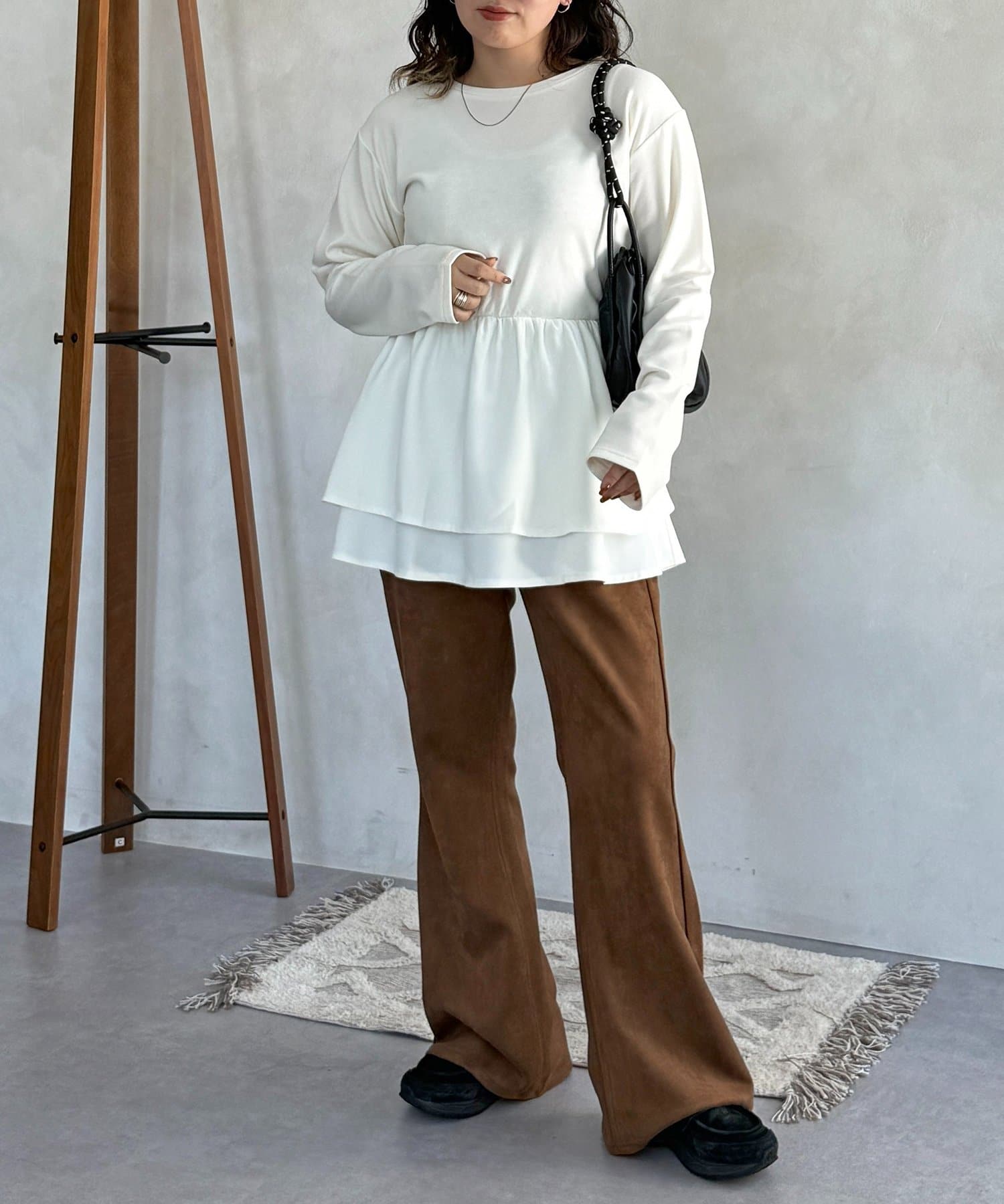 ・フレアパンツと合わせて、トレンド感のあるカジュアルスタイルに