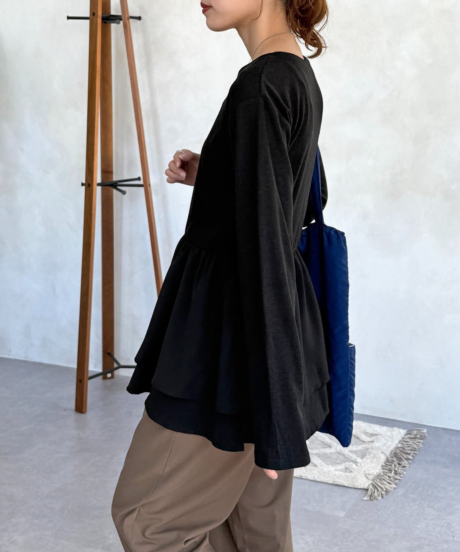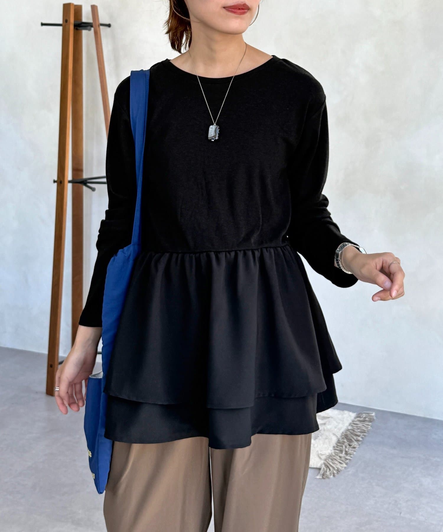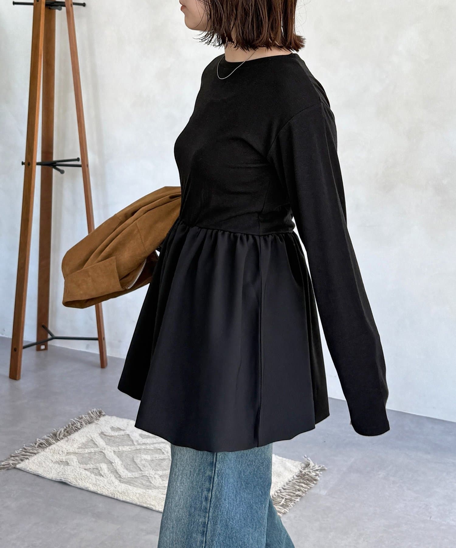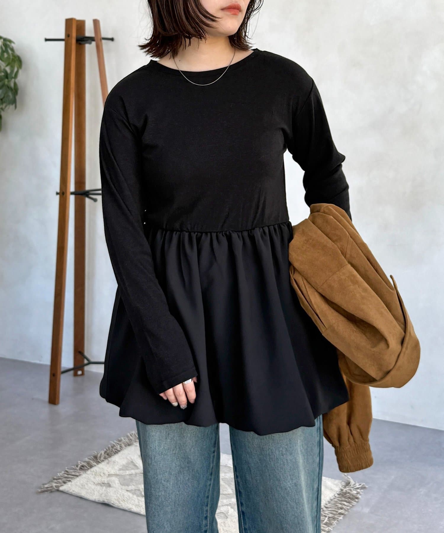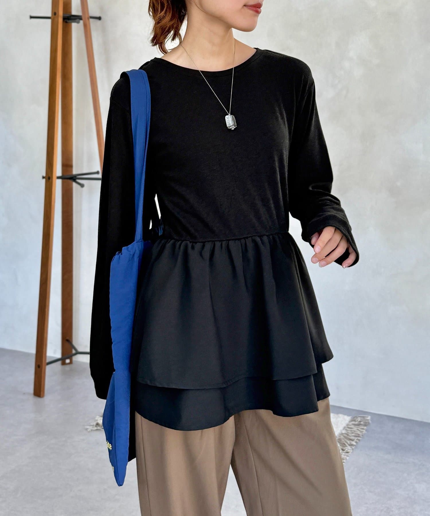 シンプルなトップスに、切り替えギャザーをあしらったトップス!
