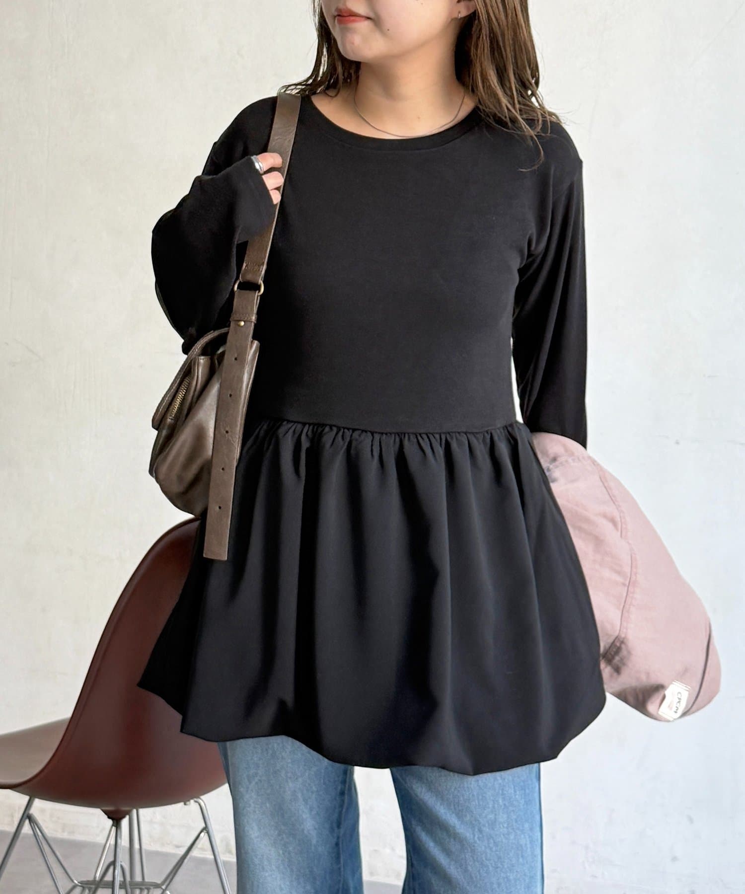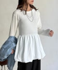 シンプルなトップスに、切り替えギャザーをあしらったトップス!