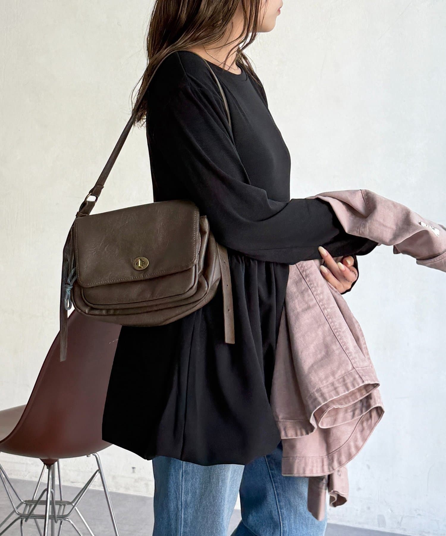 カジュアルながらも上品な印象で、ちょっとしたお出かけにもぴったり!