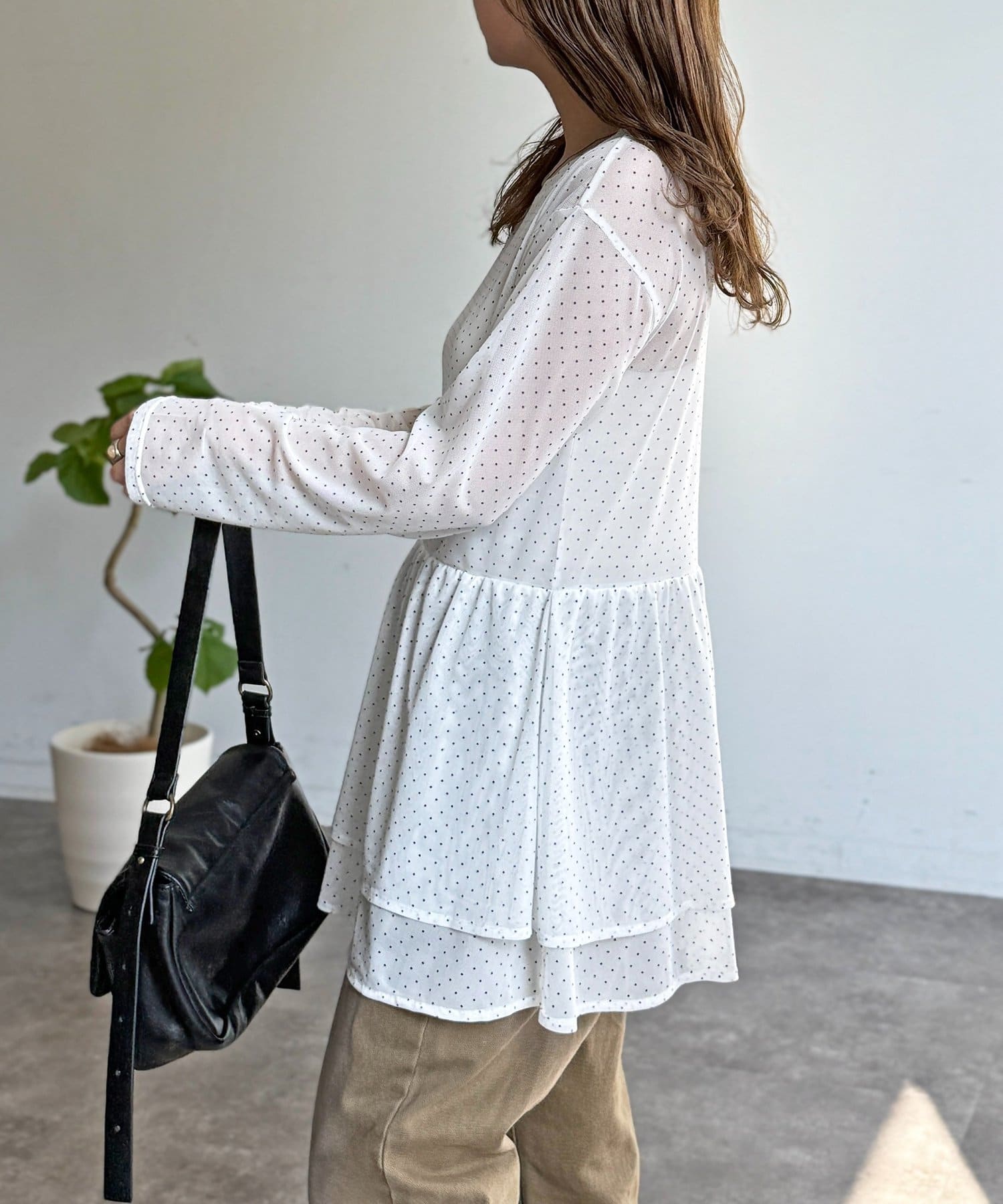 カジュアルながらも上品な印象で、ちょっとしたお出かけにもぴったり!