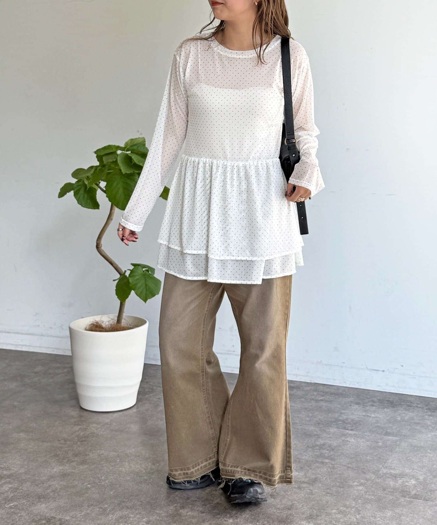・フレアパンツと合わせて、トレンド感のあるカジュアルスタイルに