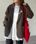 テーラージャケットって綺麗めにしか着こなせないと思っていましたが、こちらの商品はカジュアルな系統にも合わせやすく、万能アイテムだと思いました!缶バッチもかわいいです♡