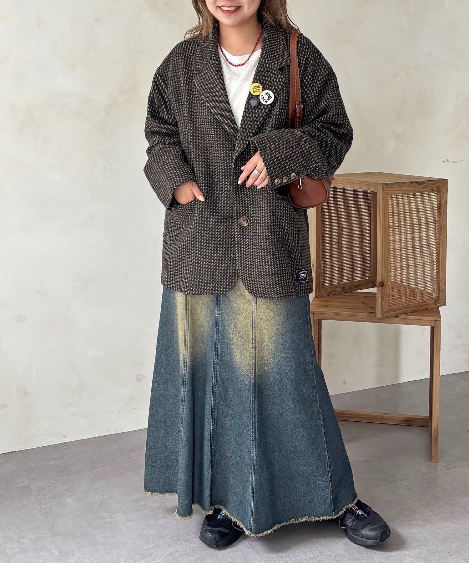 ・デニムスカートと合わせて、大人カジュアルに着こなす
