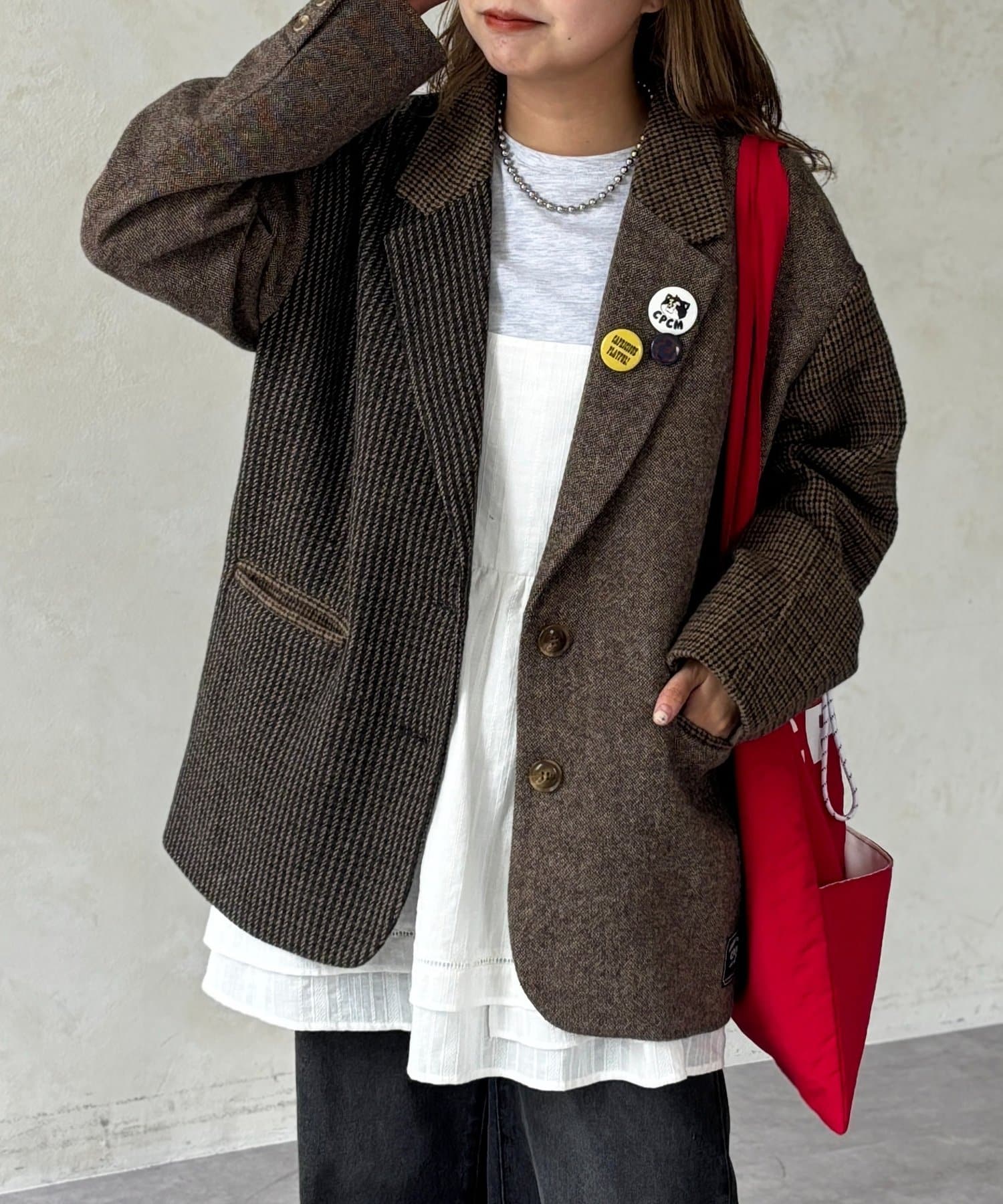 • CPCM(シーピーシーエム) 缶バッジ付きツイードテーラードジャケット
