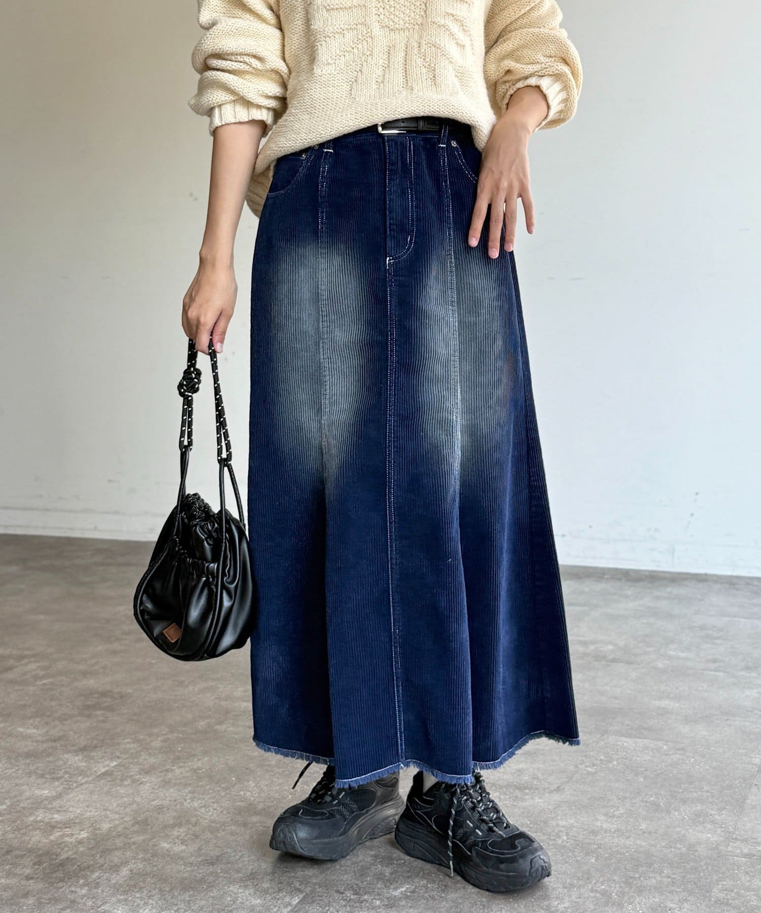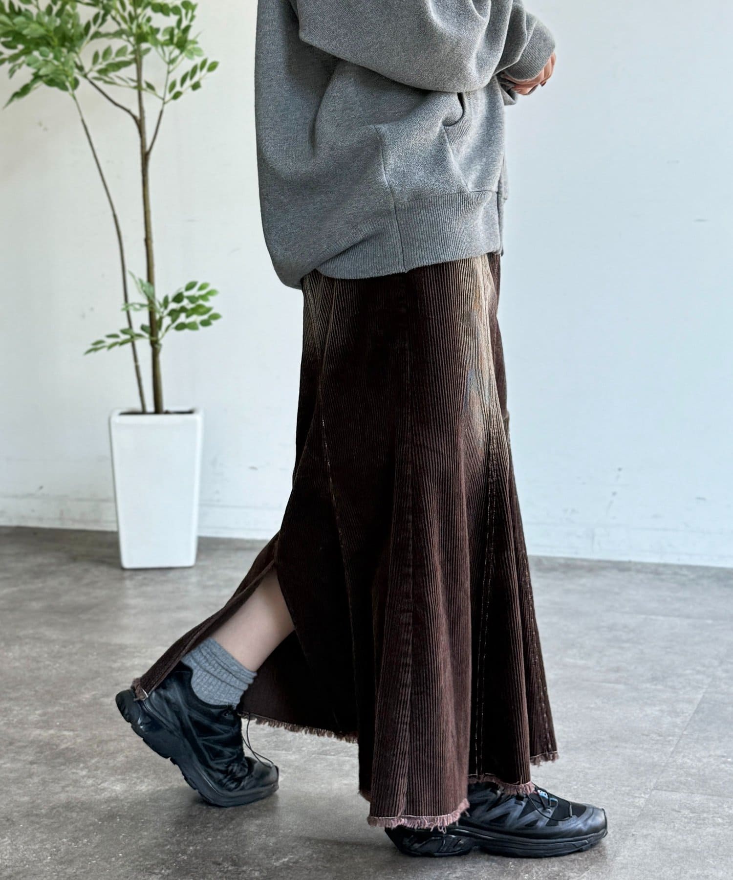 深みのある色合いと、ヴィンテージ感のある加工が魅力のスカート!