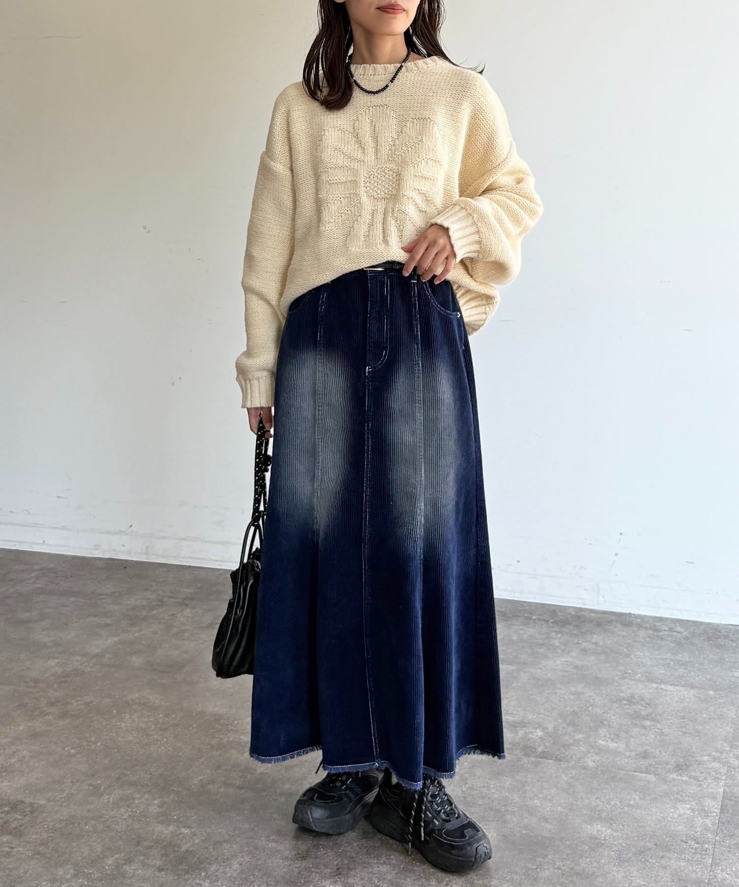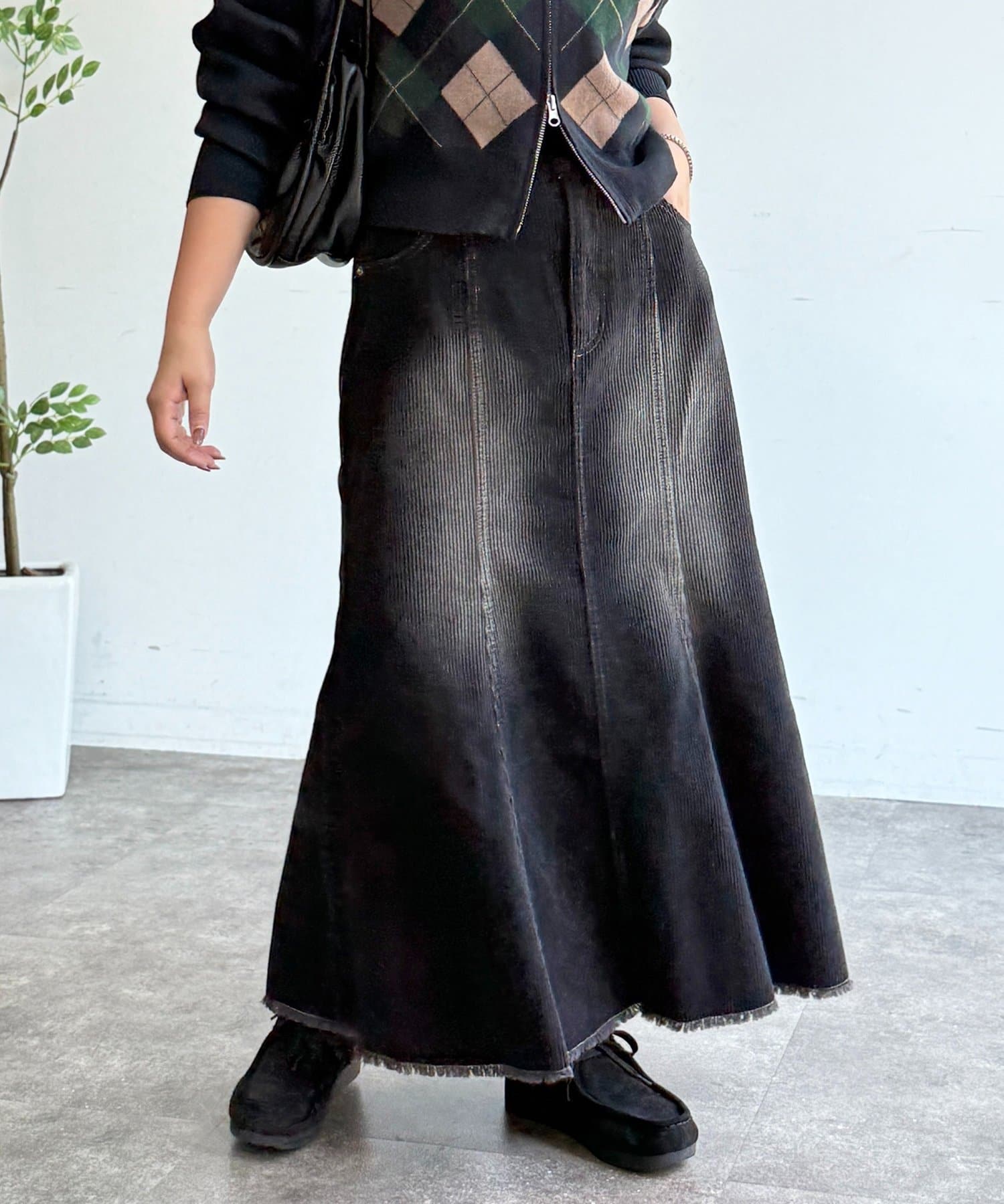 広がりすぎないマーメイドシルエットで、カジュアルながらも大人っぽい印象に!