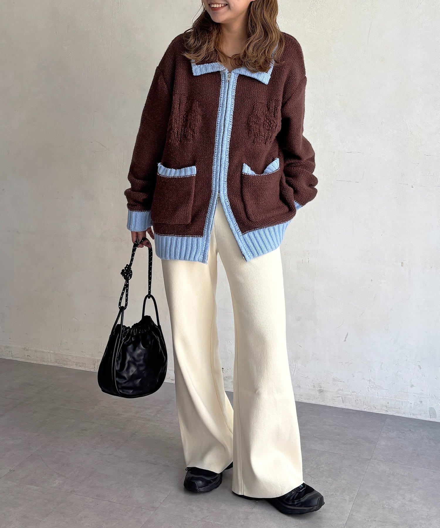 リラックス感のあるシルエットながら、リブニットの素材感が上品さをプラス。