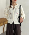 レトロ可愛い花刺繍が、個性を演出するクルーネックカーディガンです!