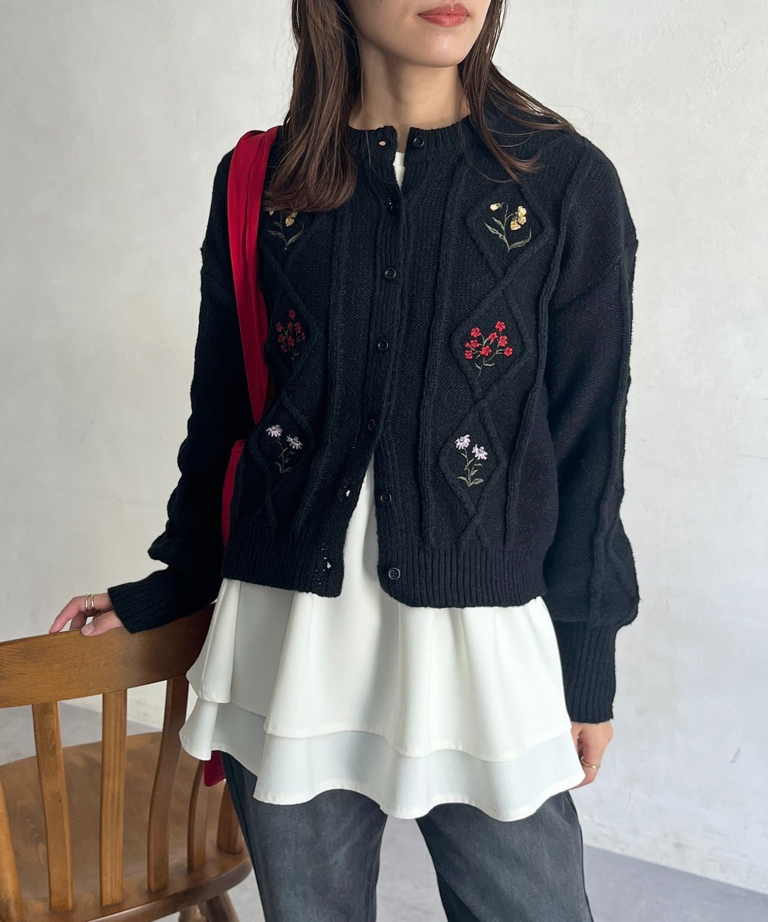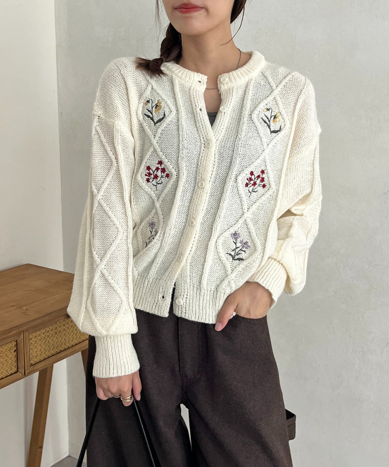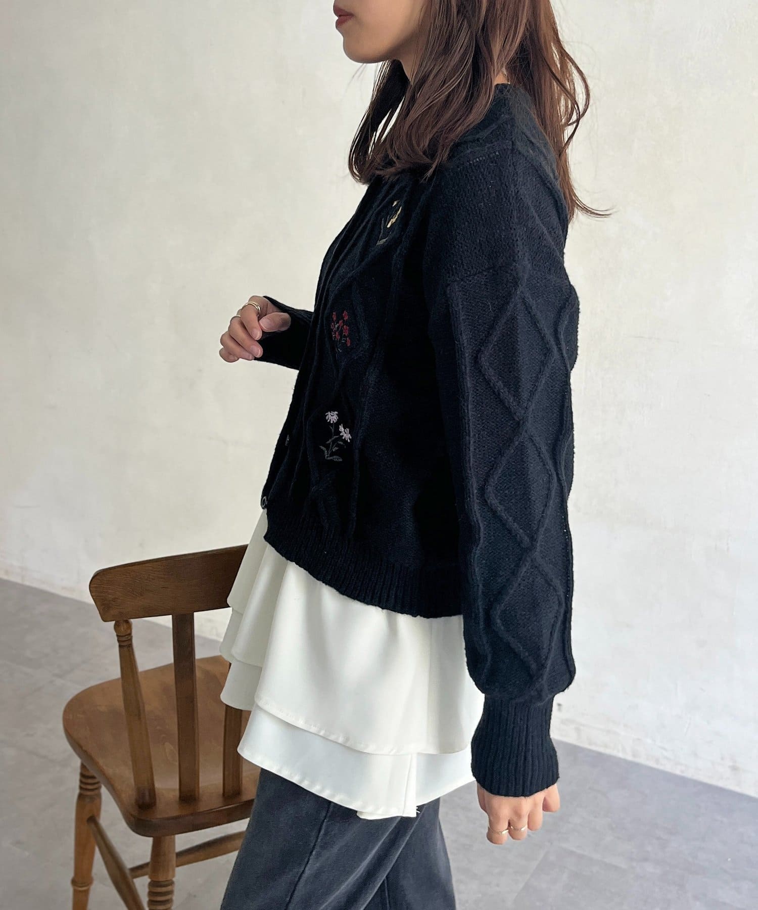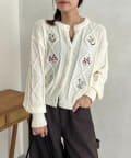 花刺繍ケーブルカーディガン