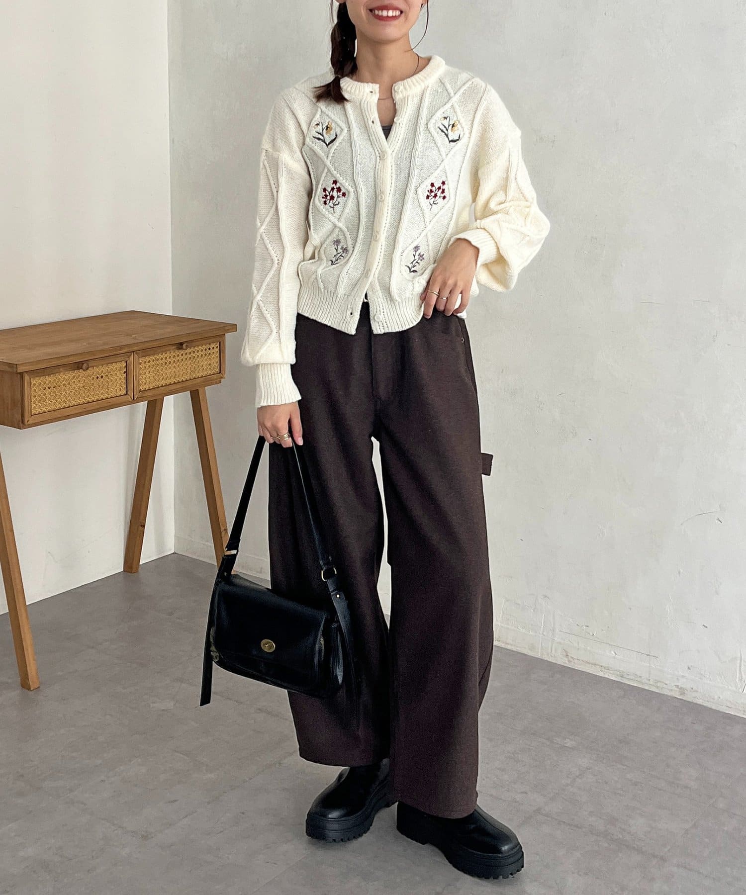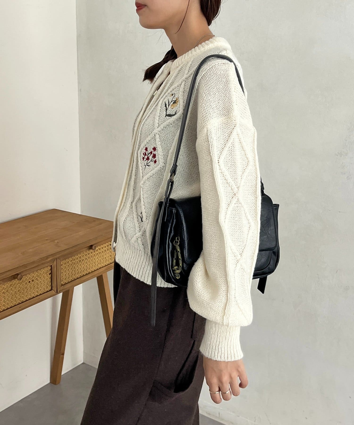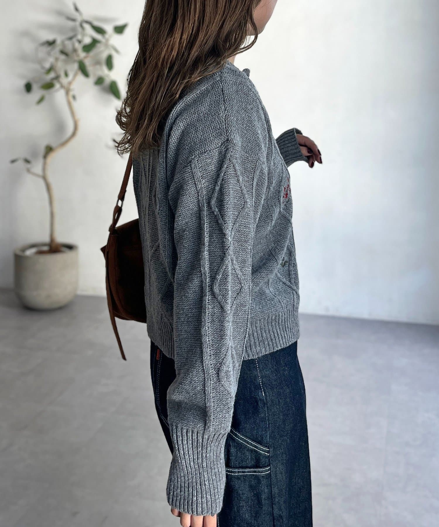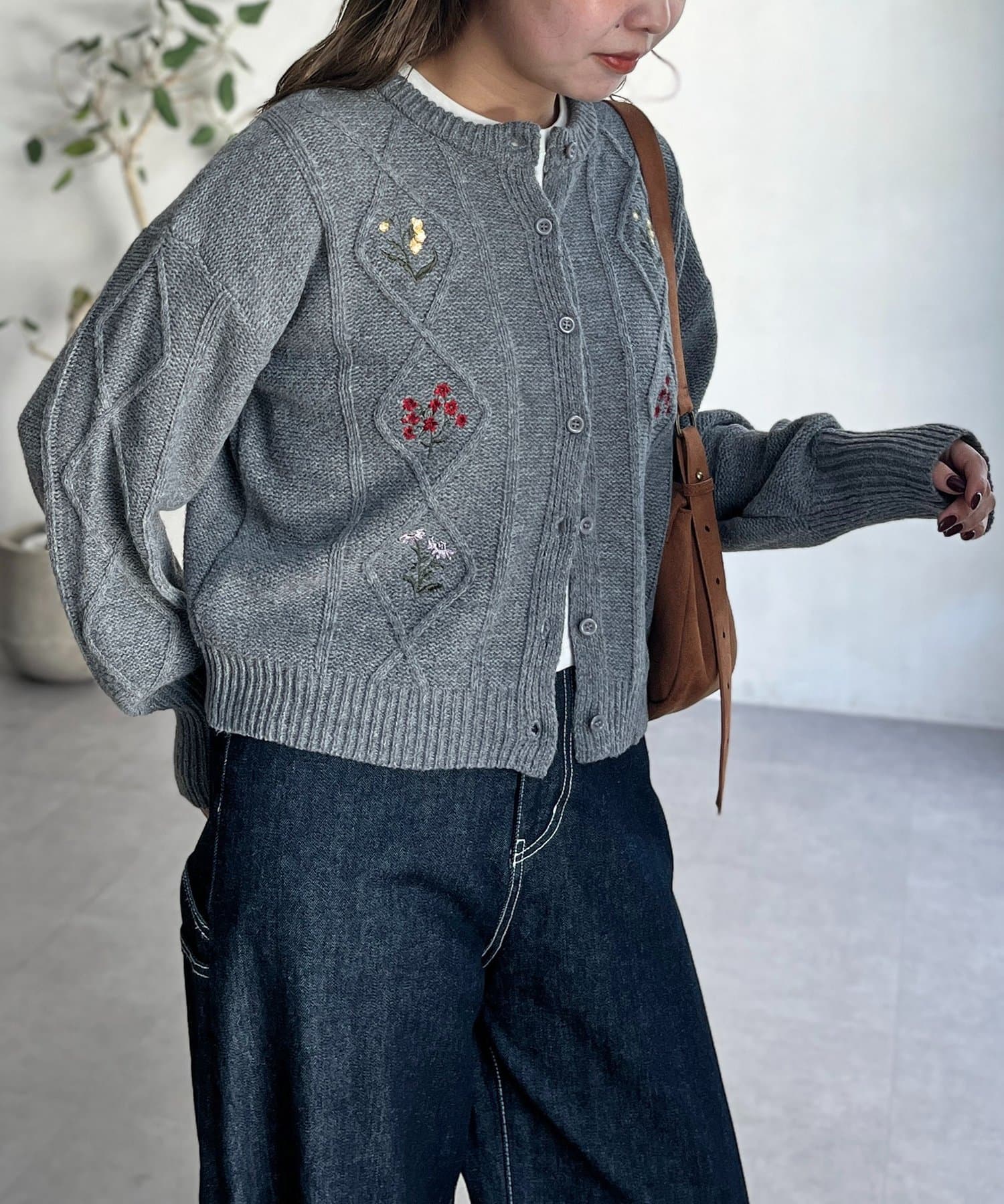 花刺繍ケーブルカーディガン