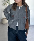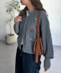花刺繍がポイントのクルーネックカーディガン