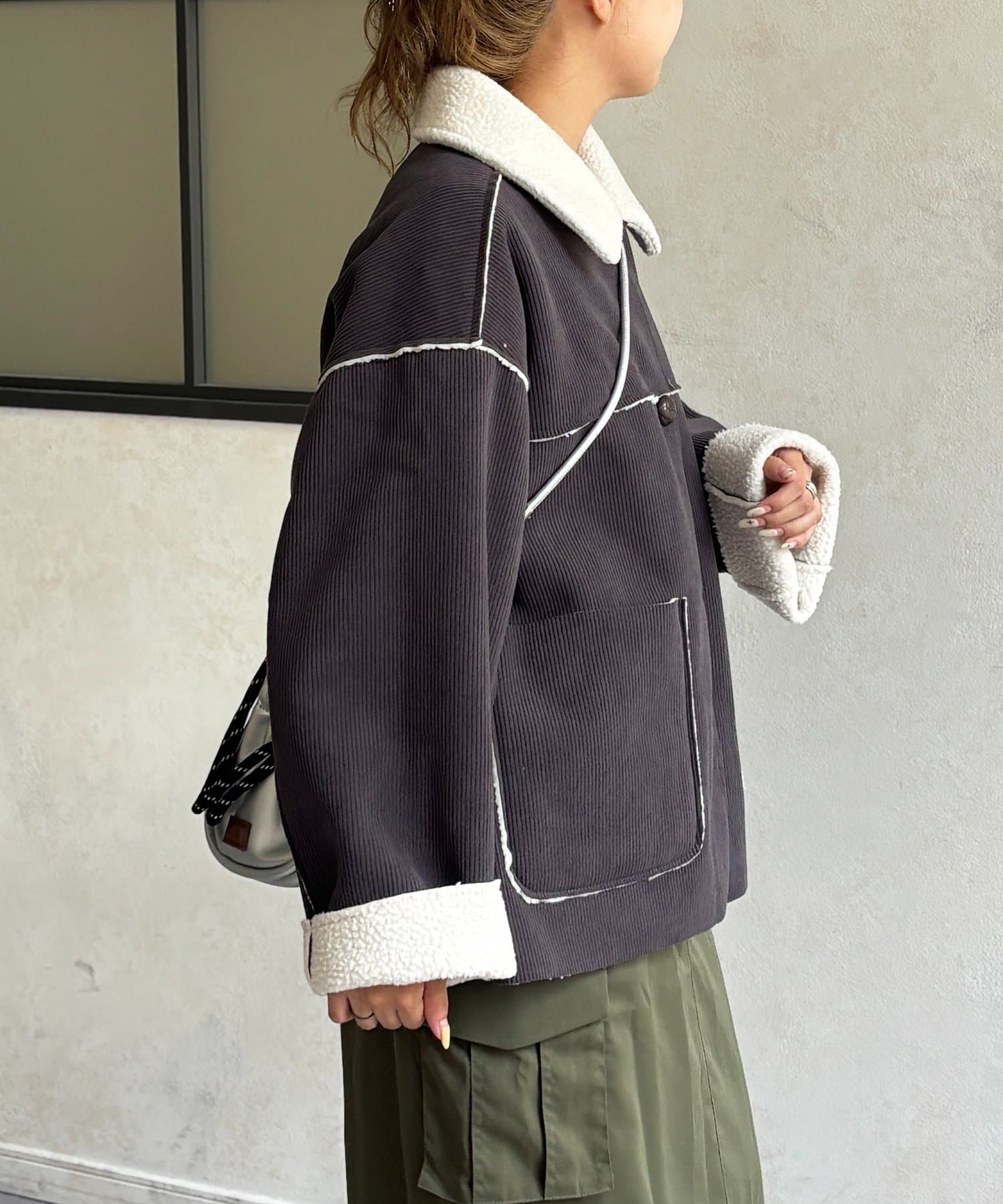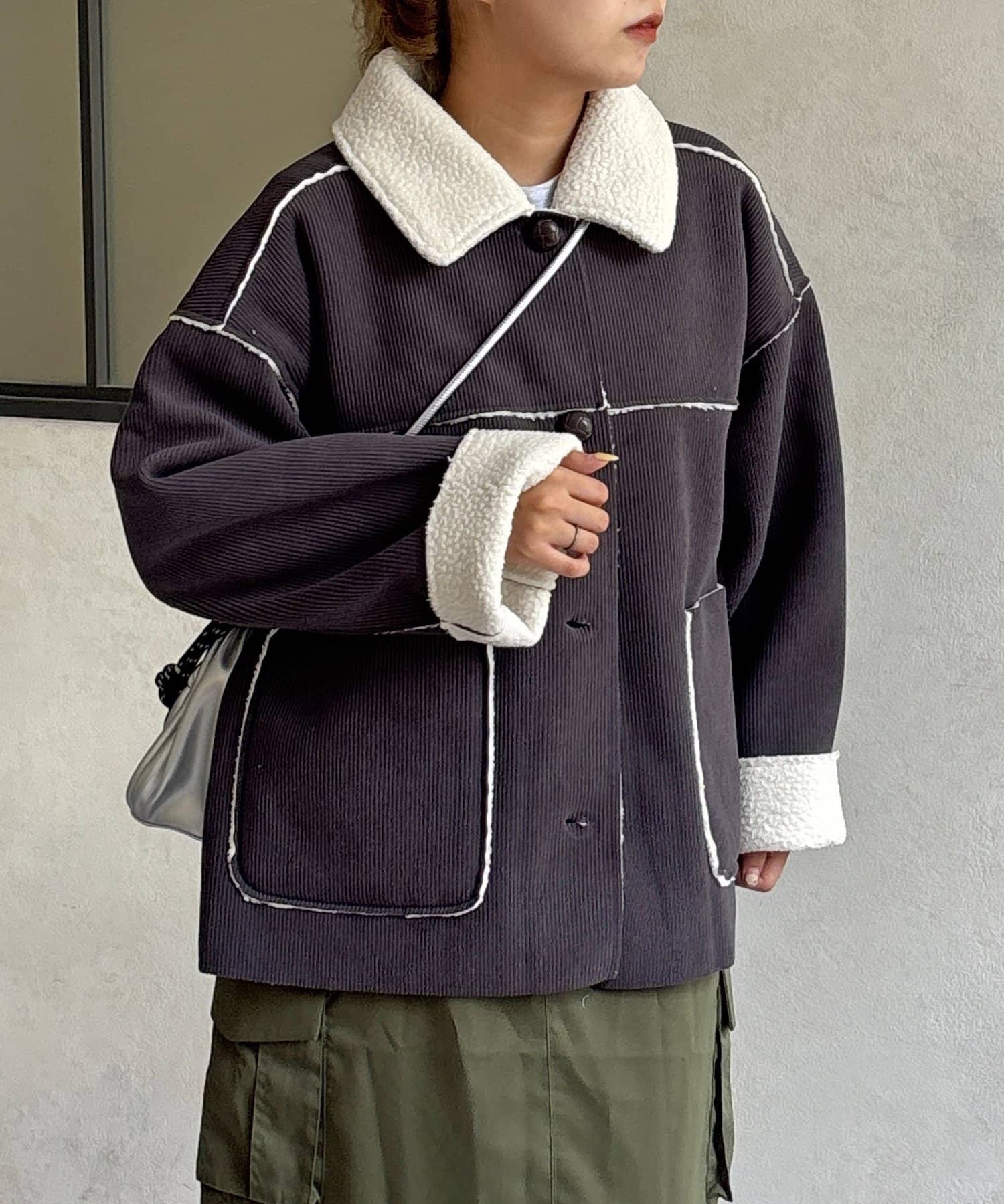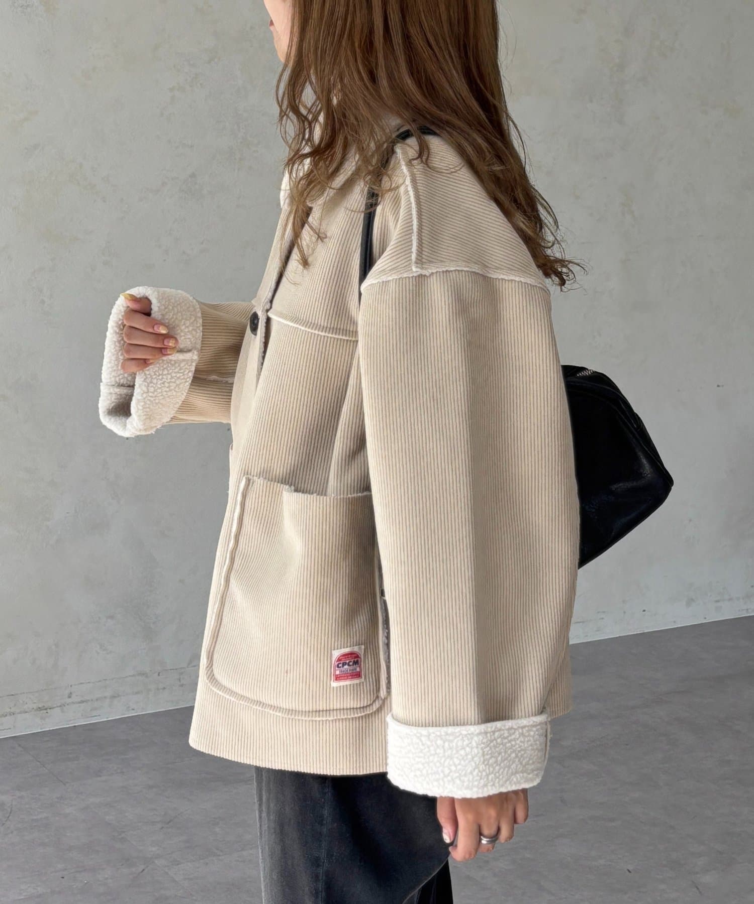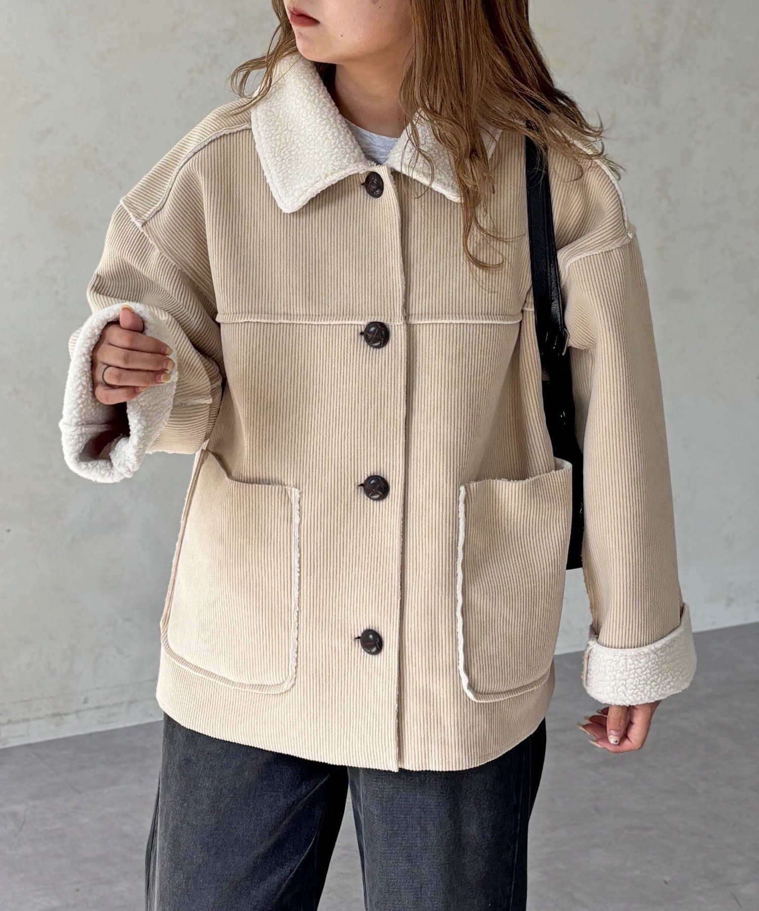 表はカジュアルなコーデュロイ素材、裏は暖かみのあるボア素材を使用しています。