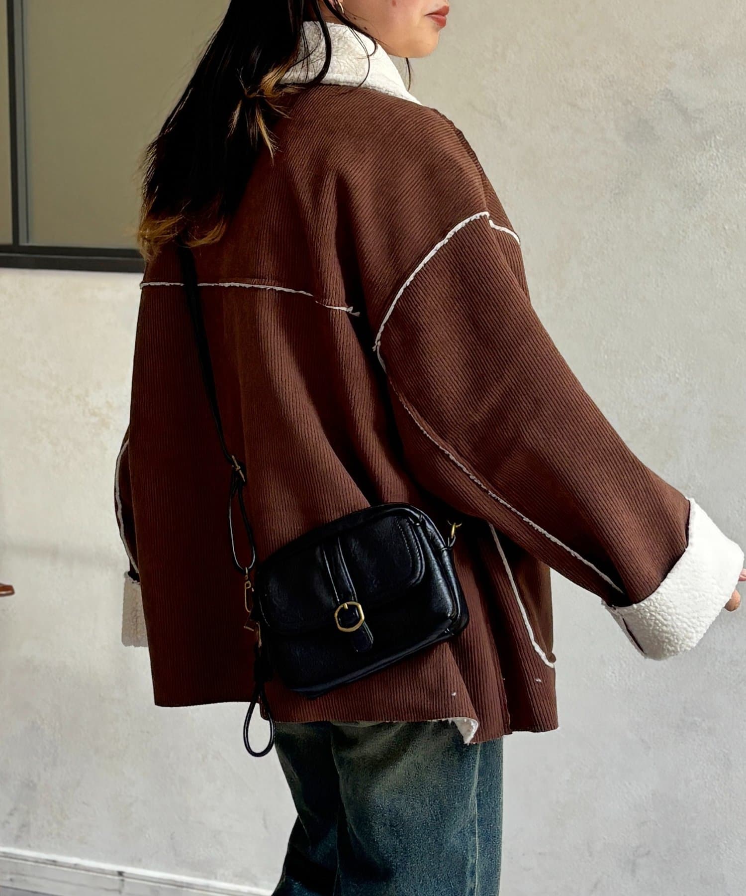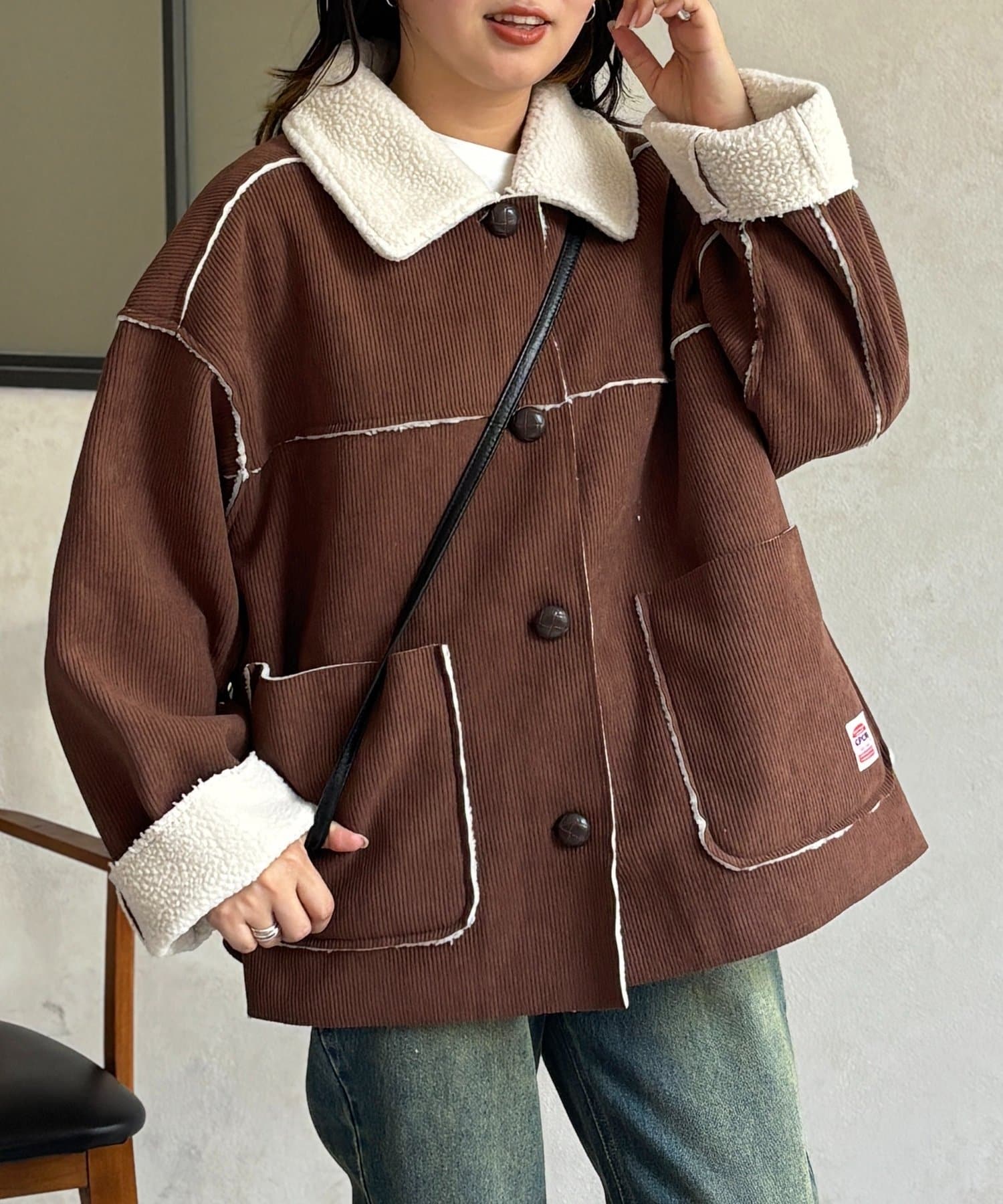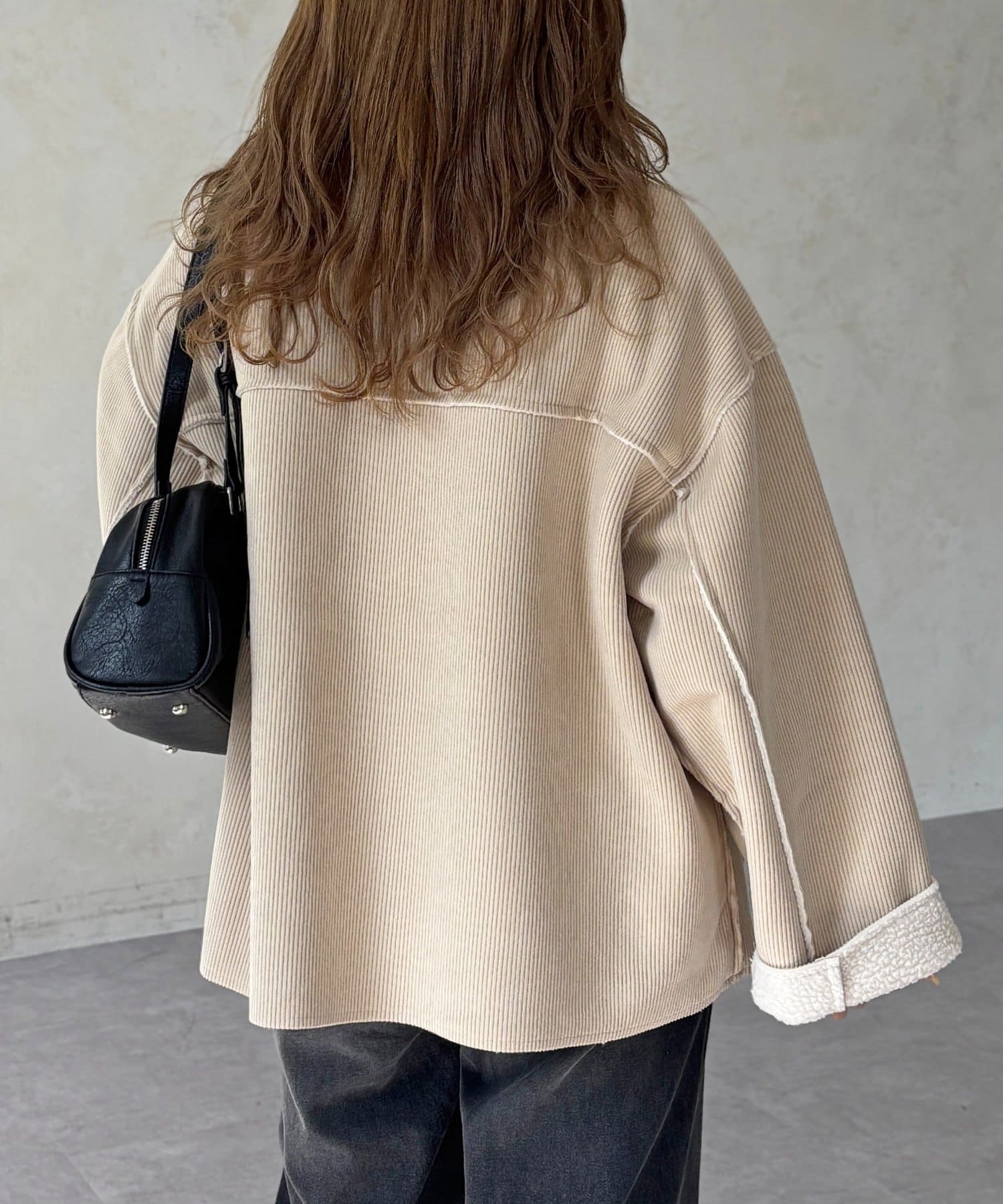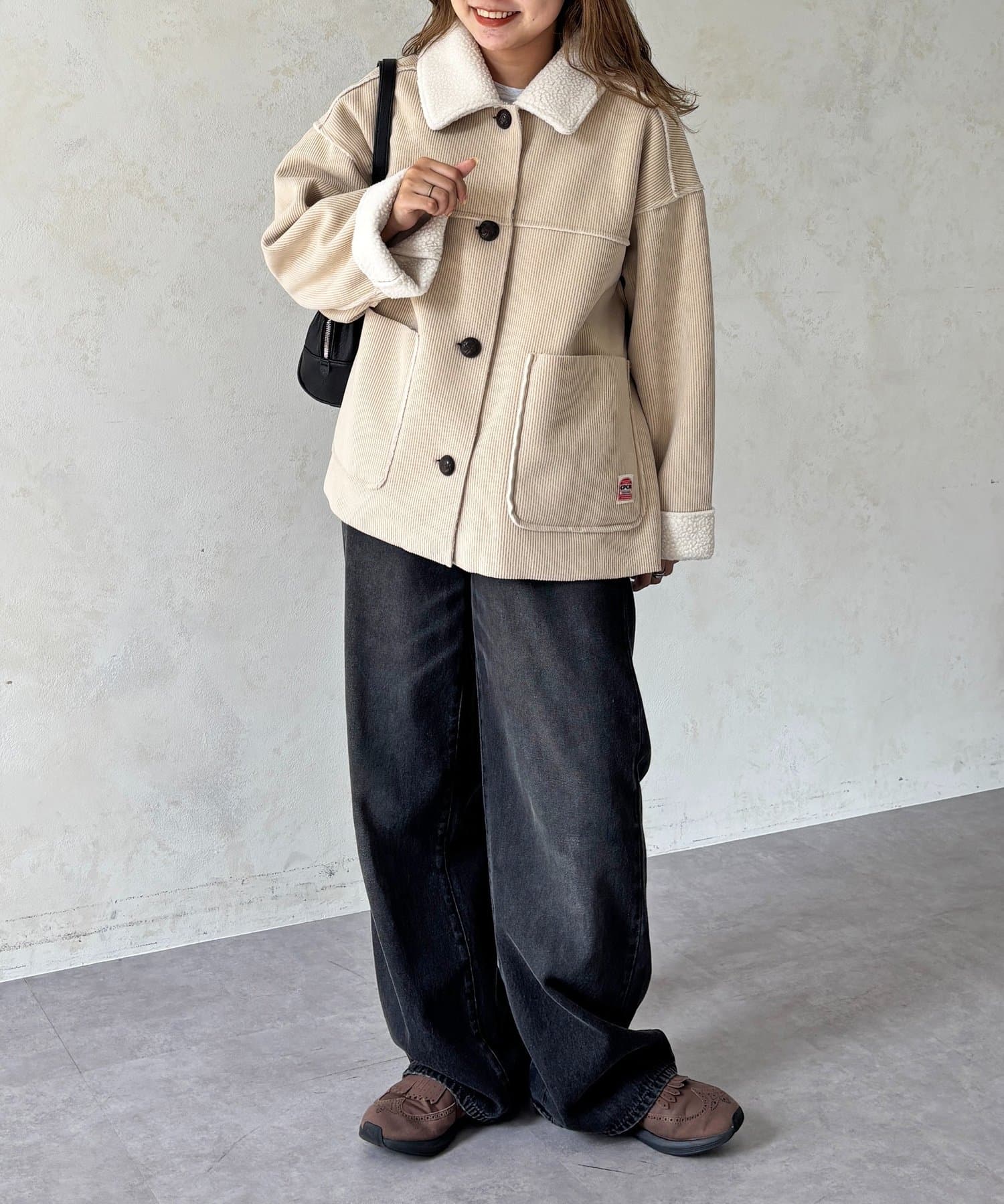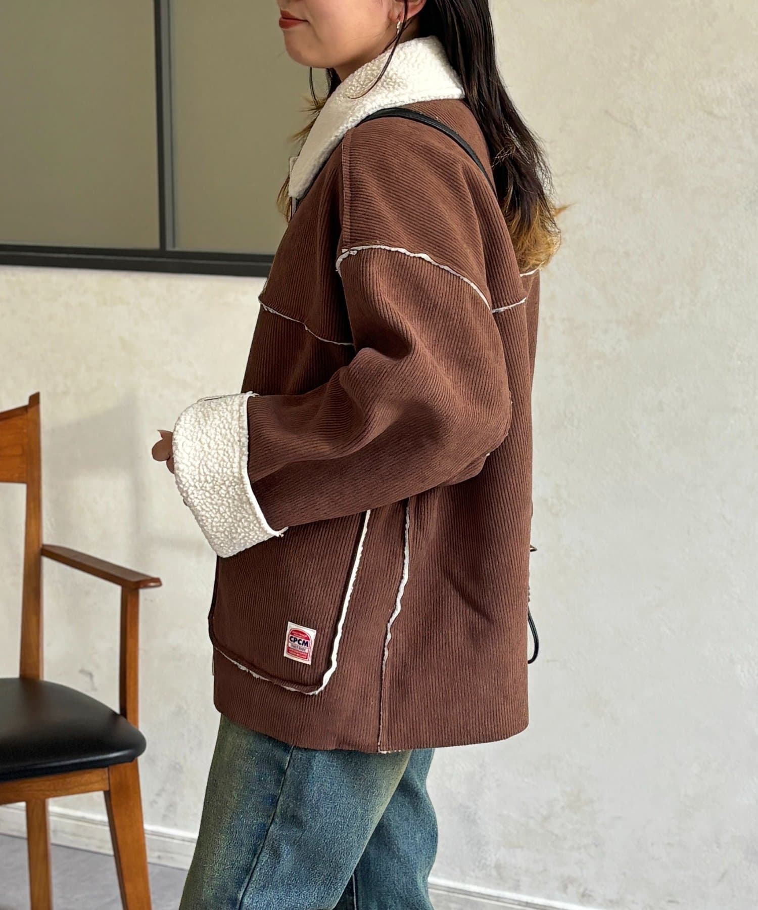 表はカジュアルなコーデュロイ素材、裏は暖かみのあるボア素材を使用しています。