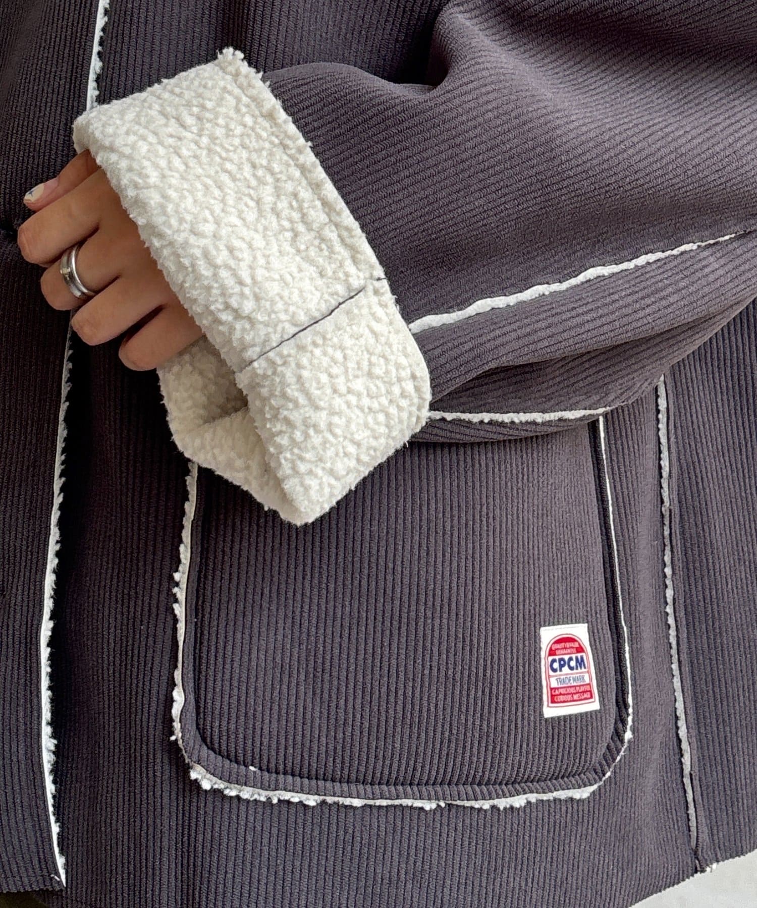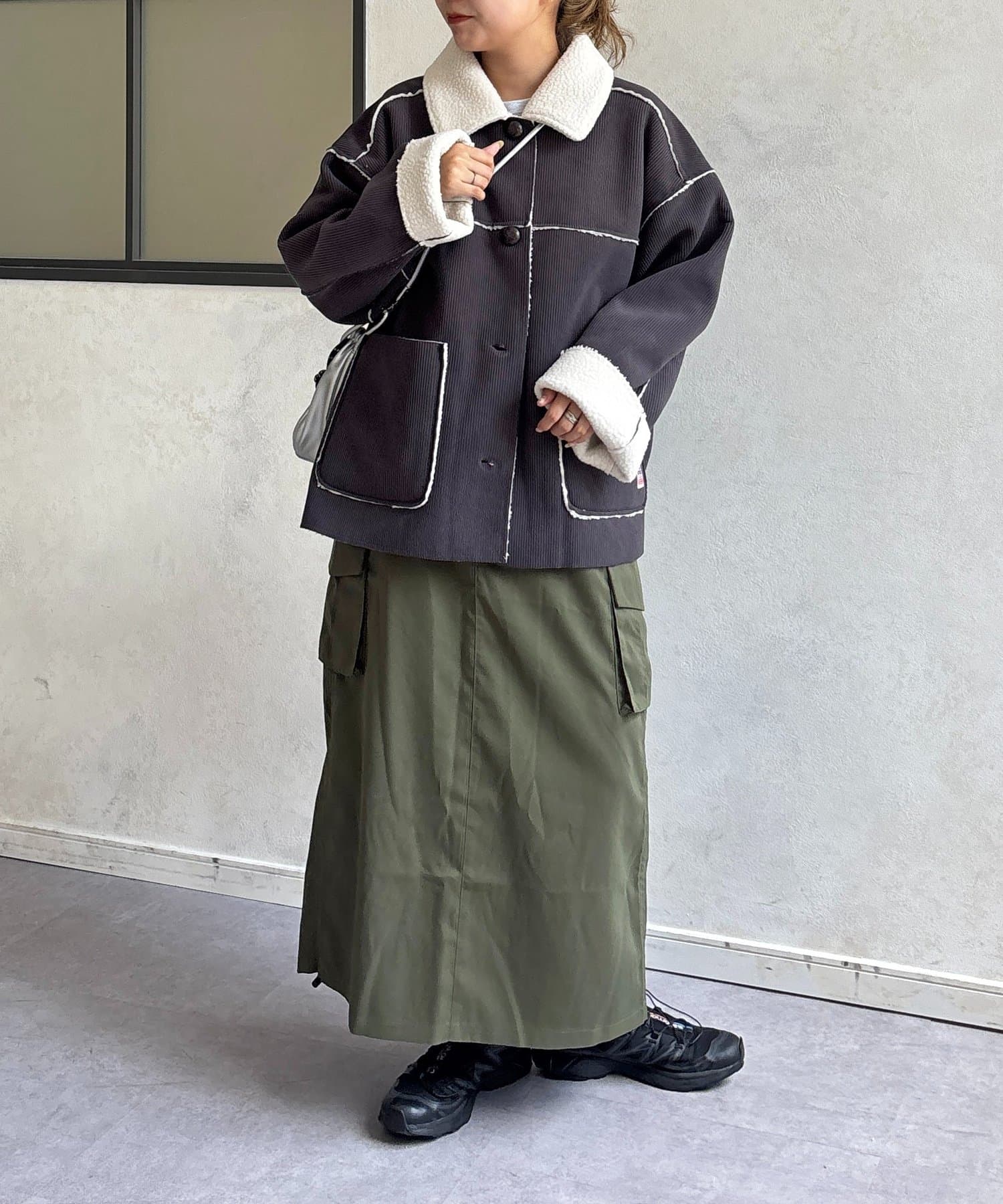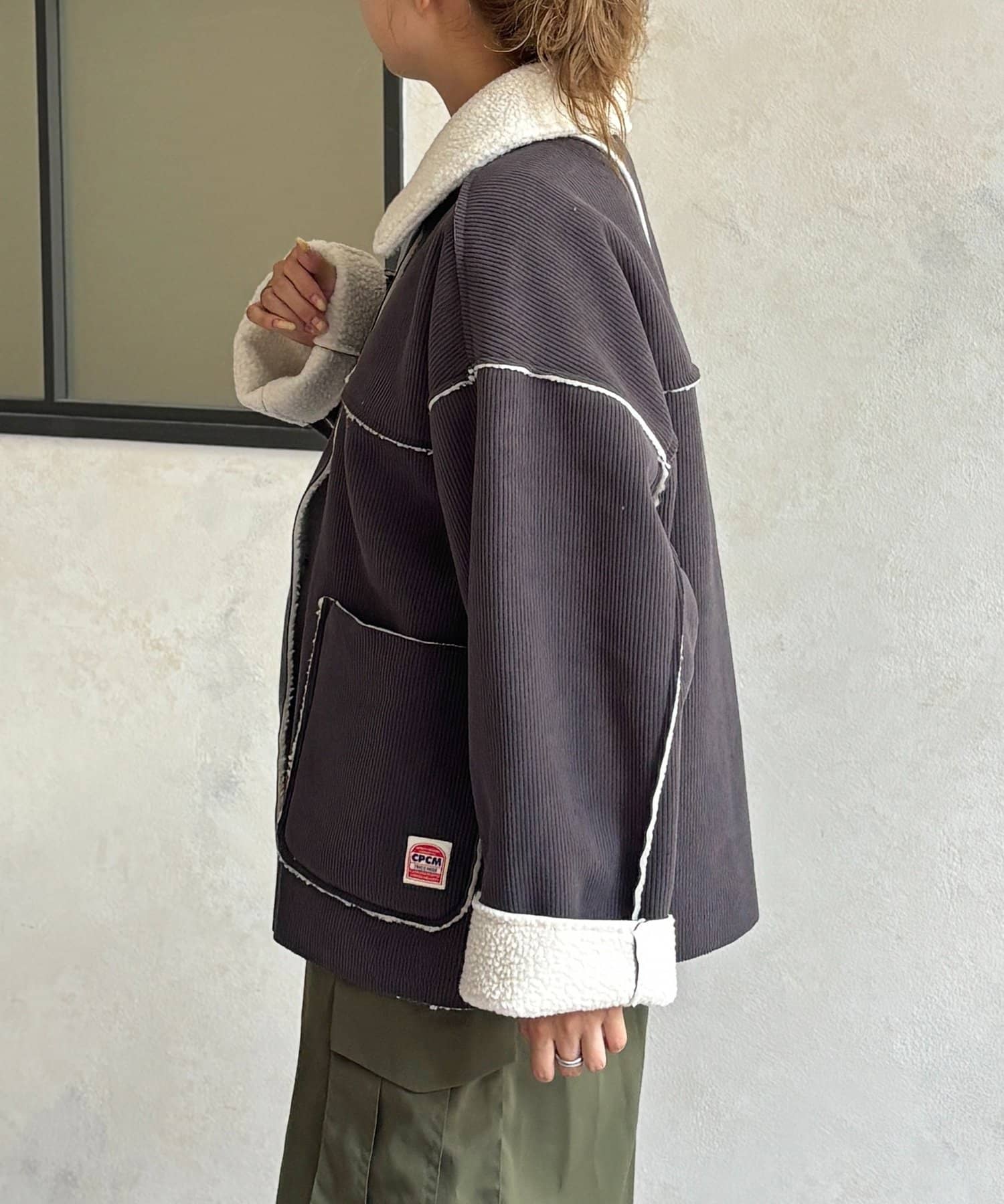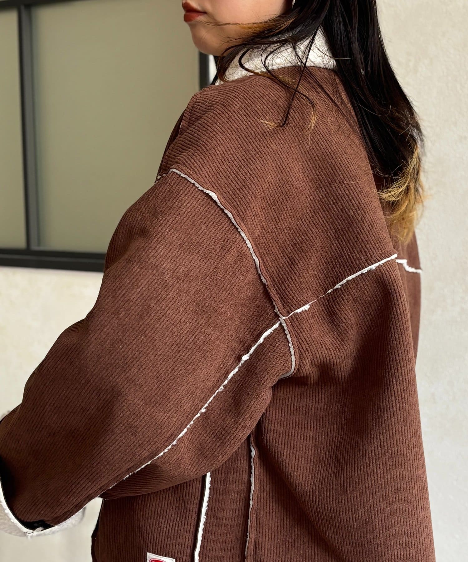 表はカジュアルなコーデュロイ素材、裏は暖かみのあるボア素材を使用しています。