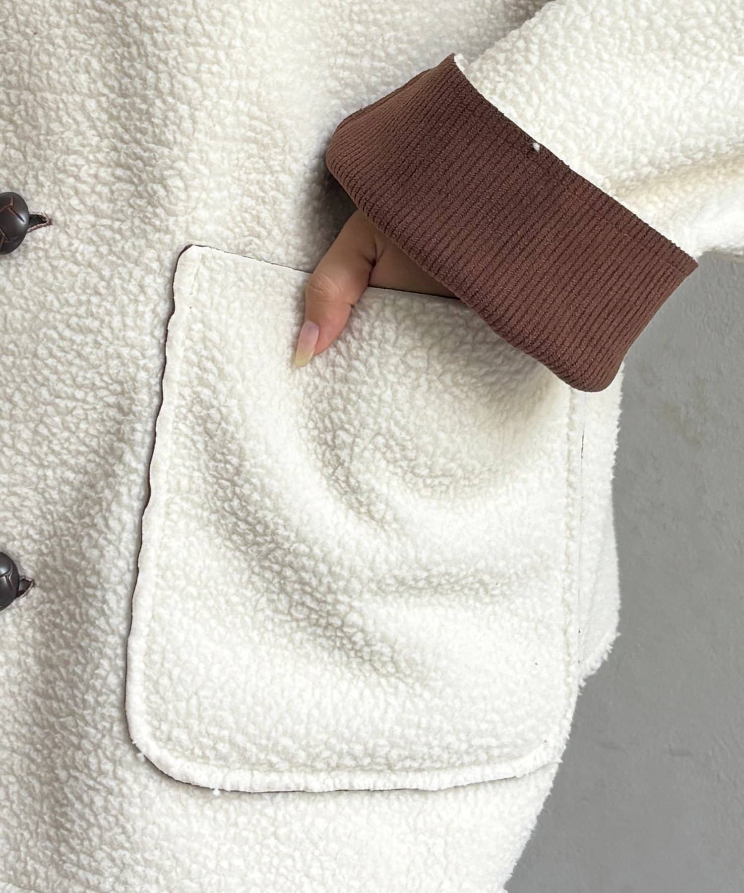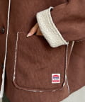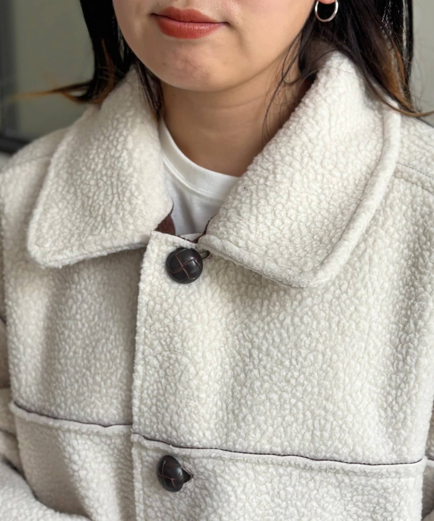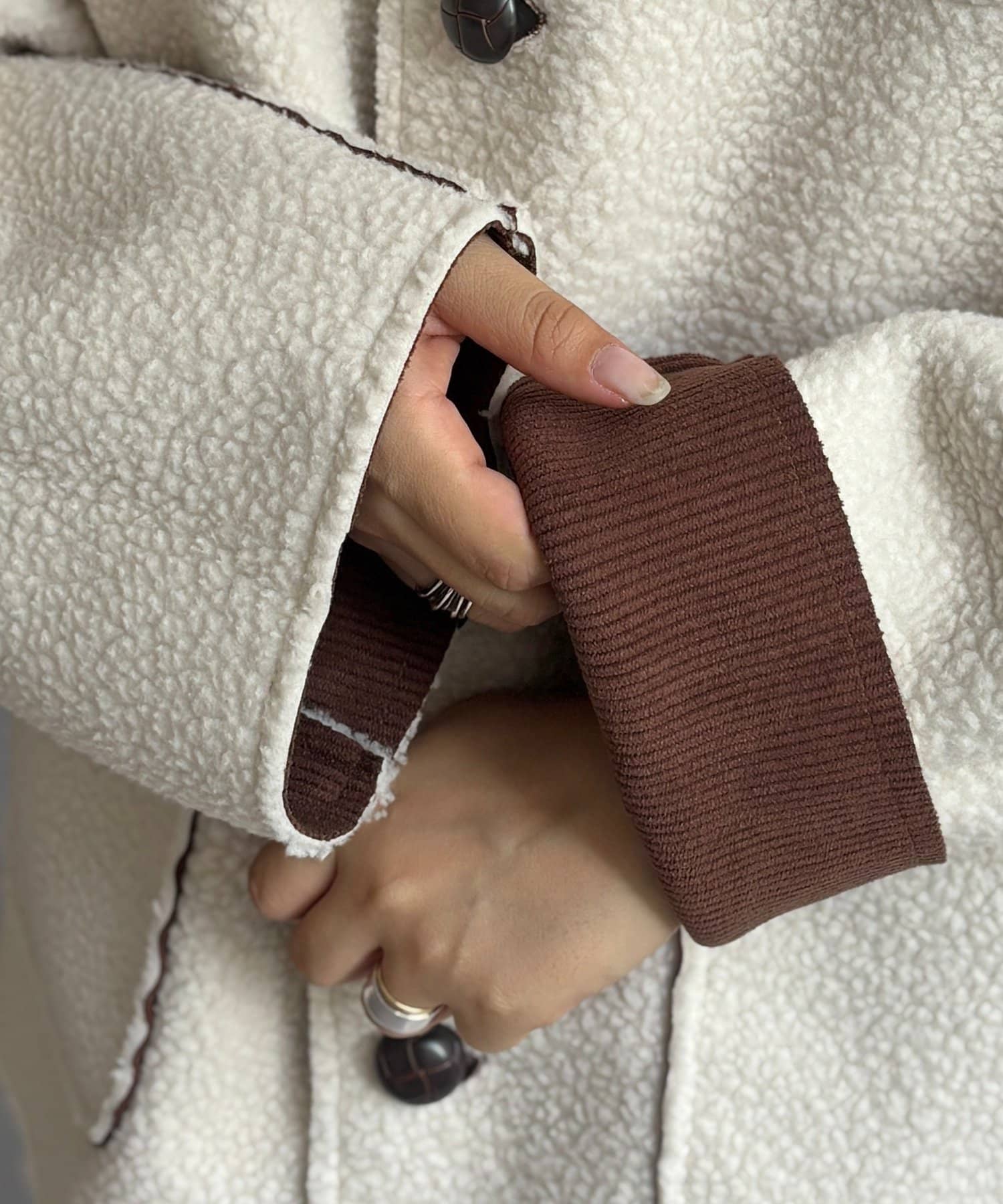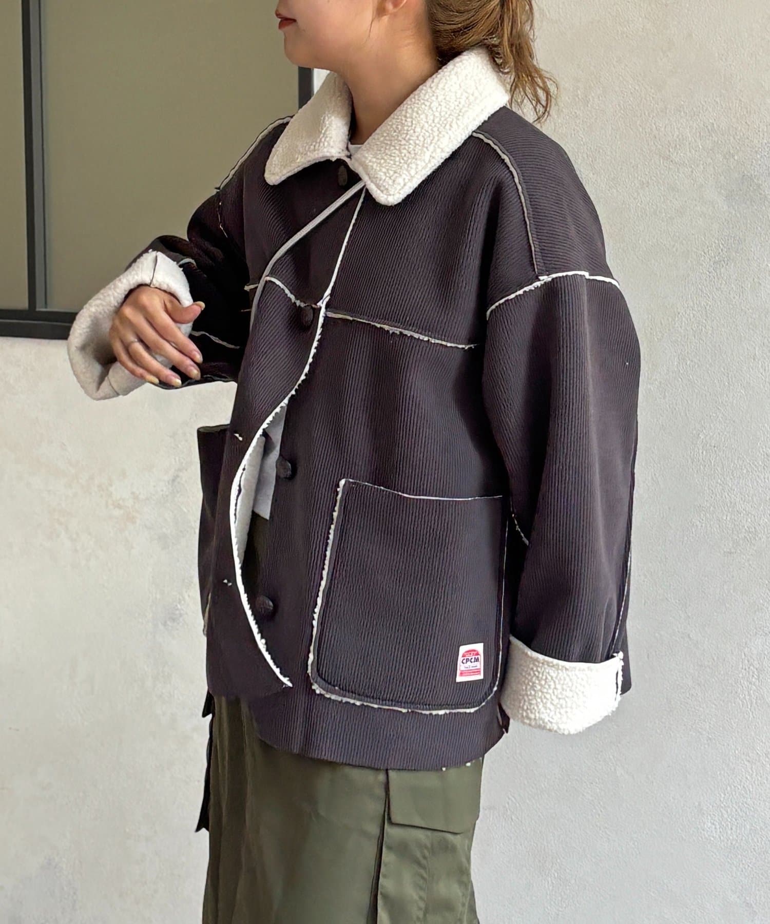 表はカジュアルなコーデュロイ素材、裏は暖かみのあるボア素材を使用しています。