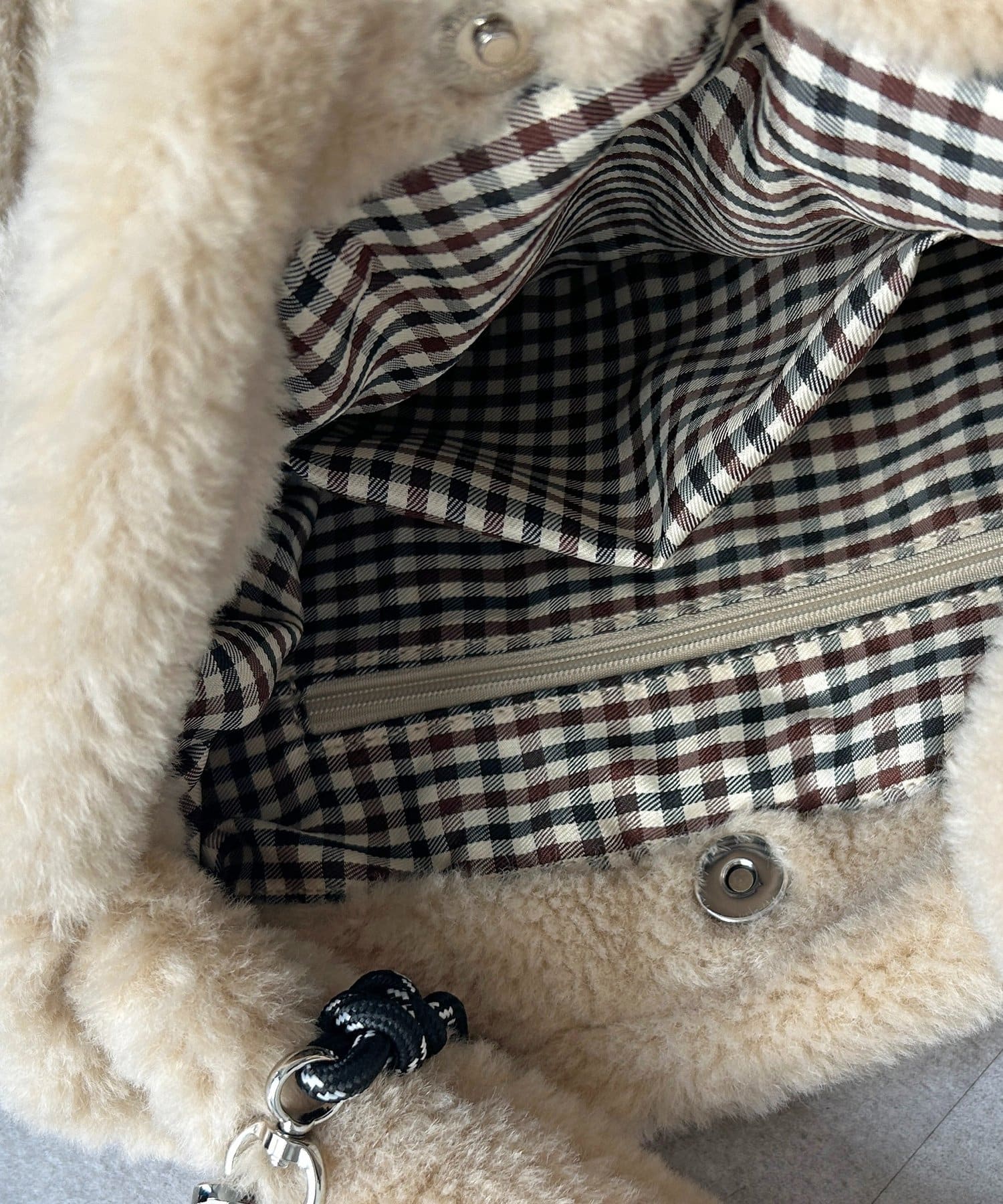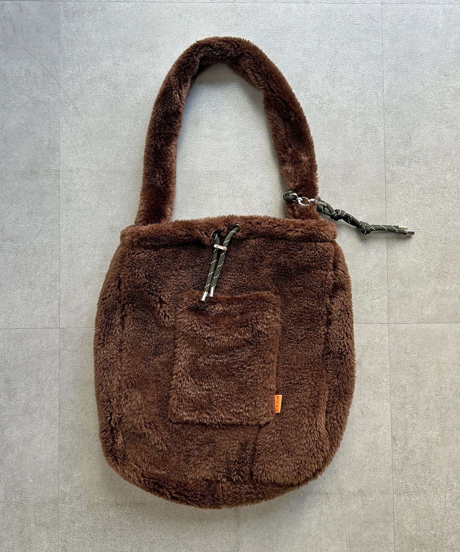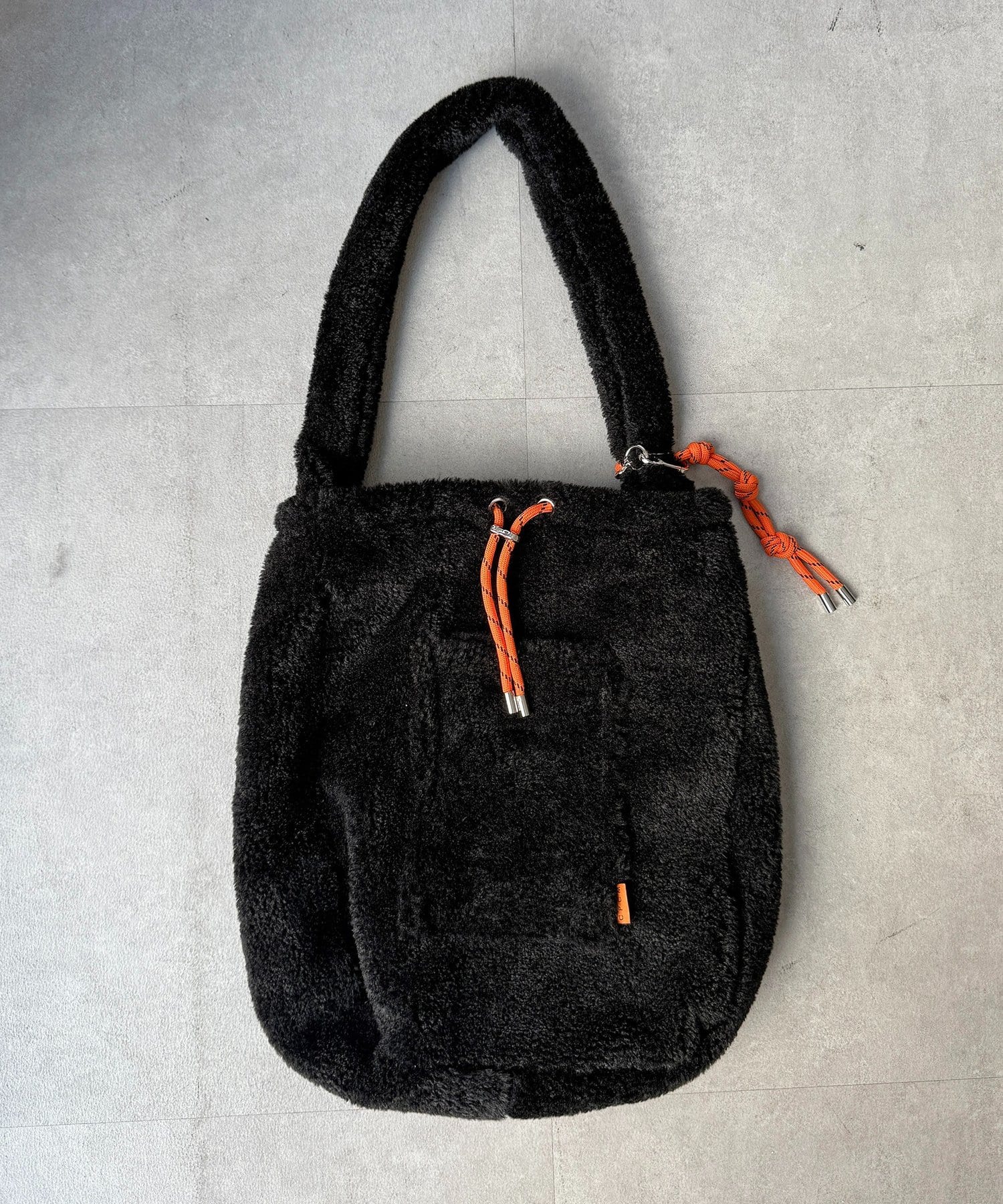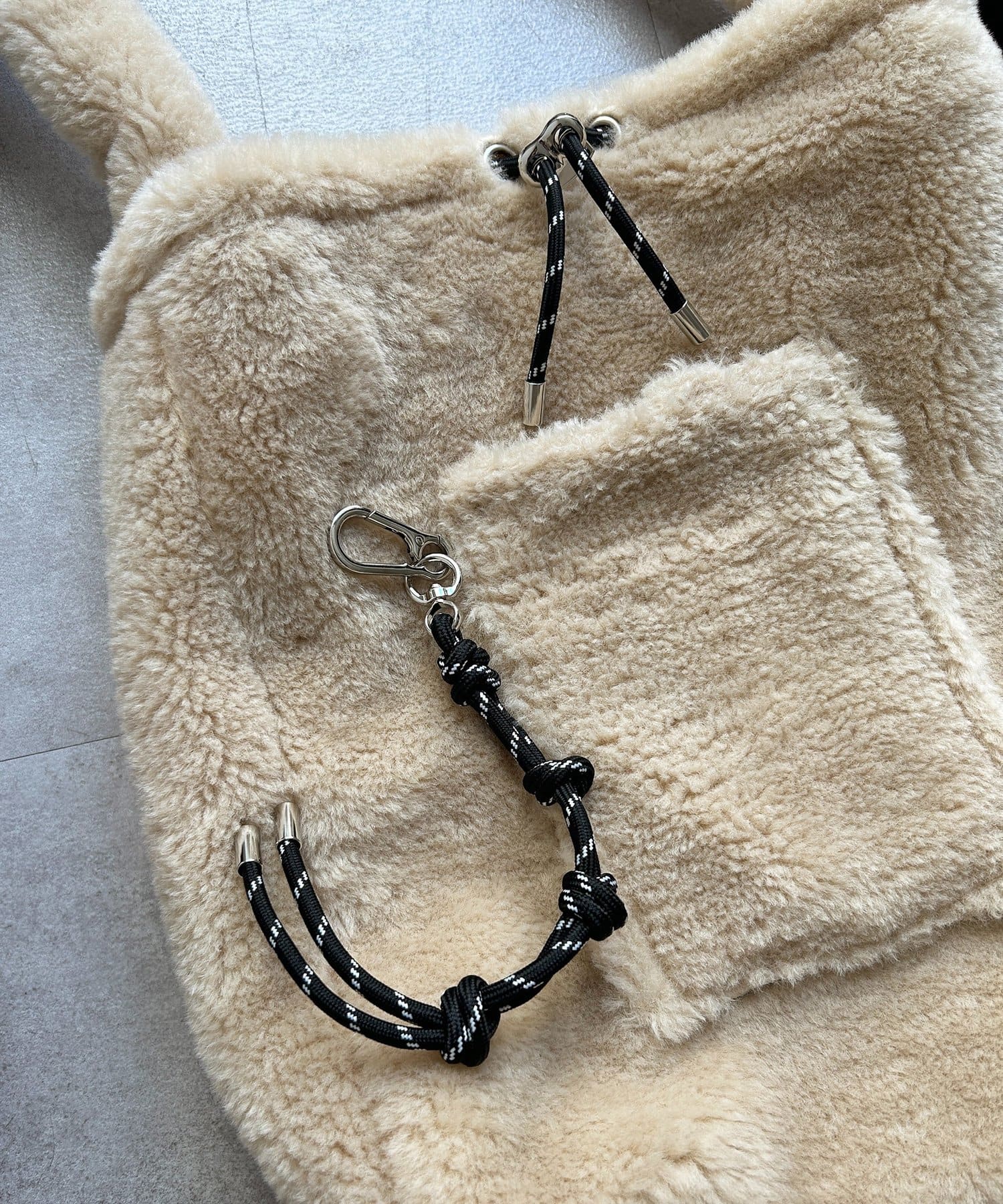 チャーム付きファー巾着トート