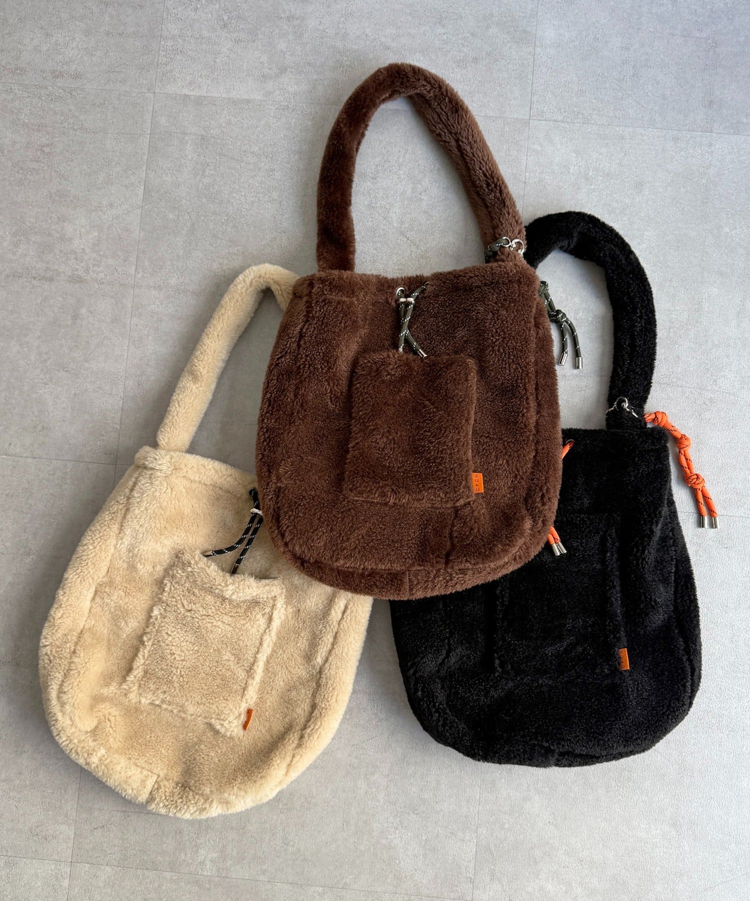 秋冬コーデに季節感をプラスしてくれる、もこもこボア素材の巾着バッグ!