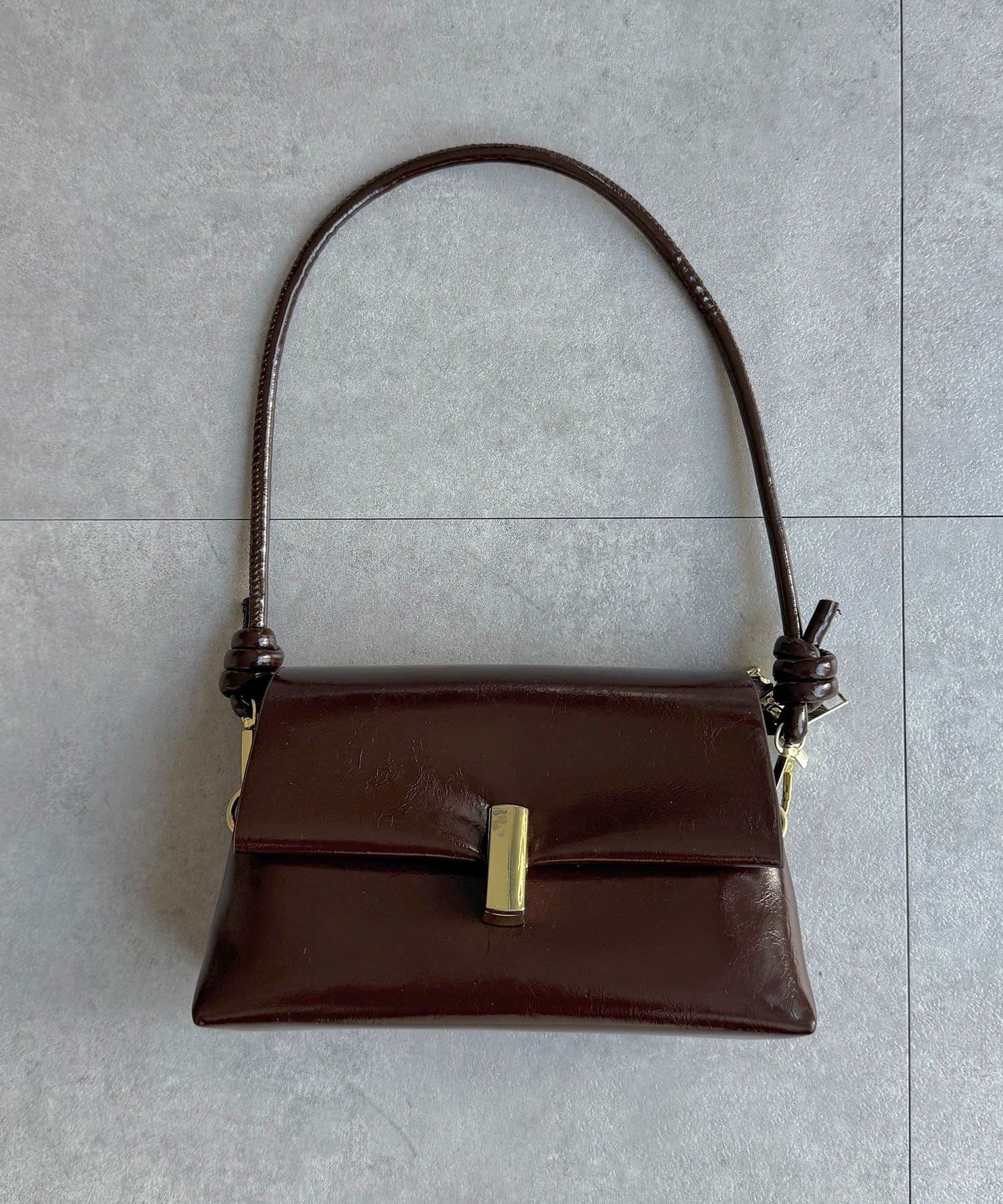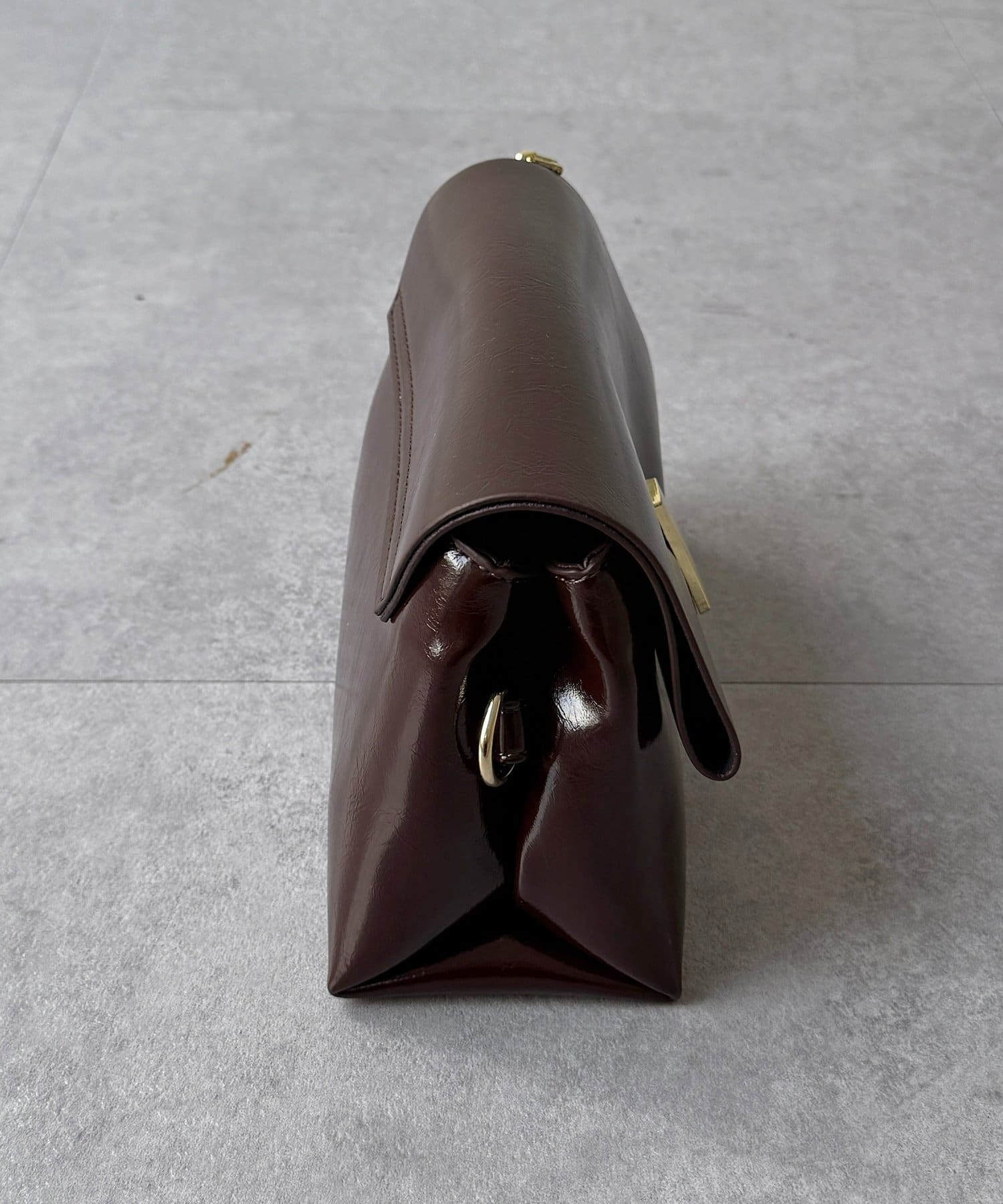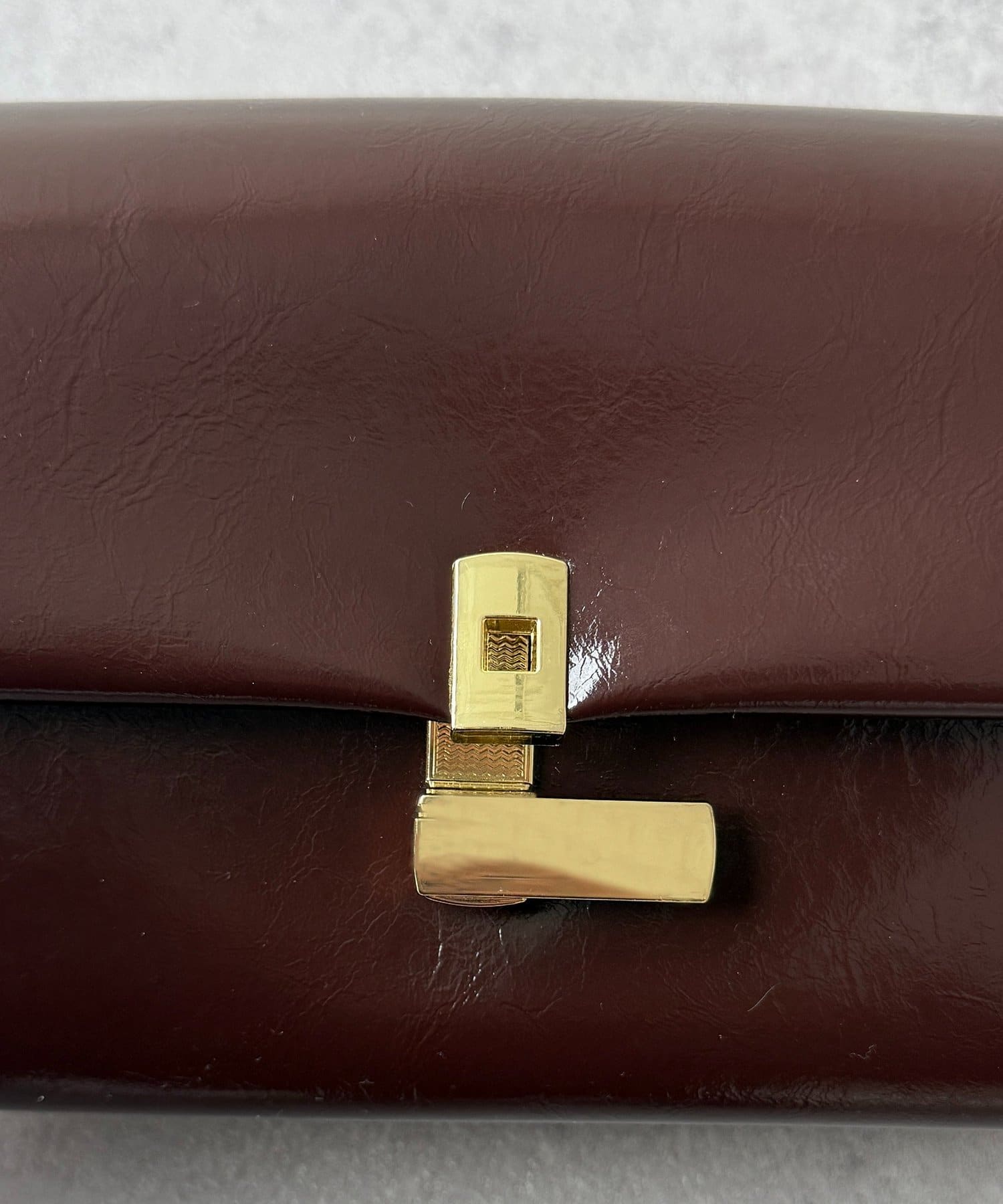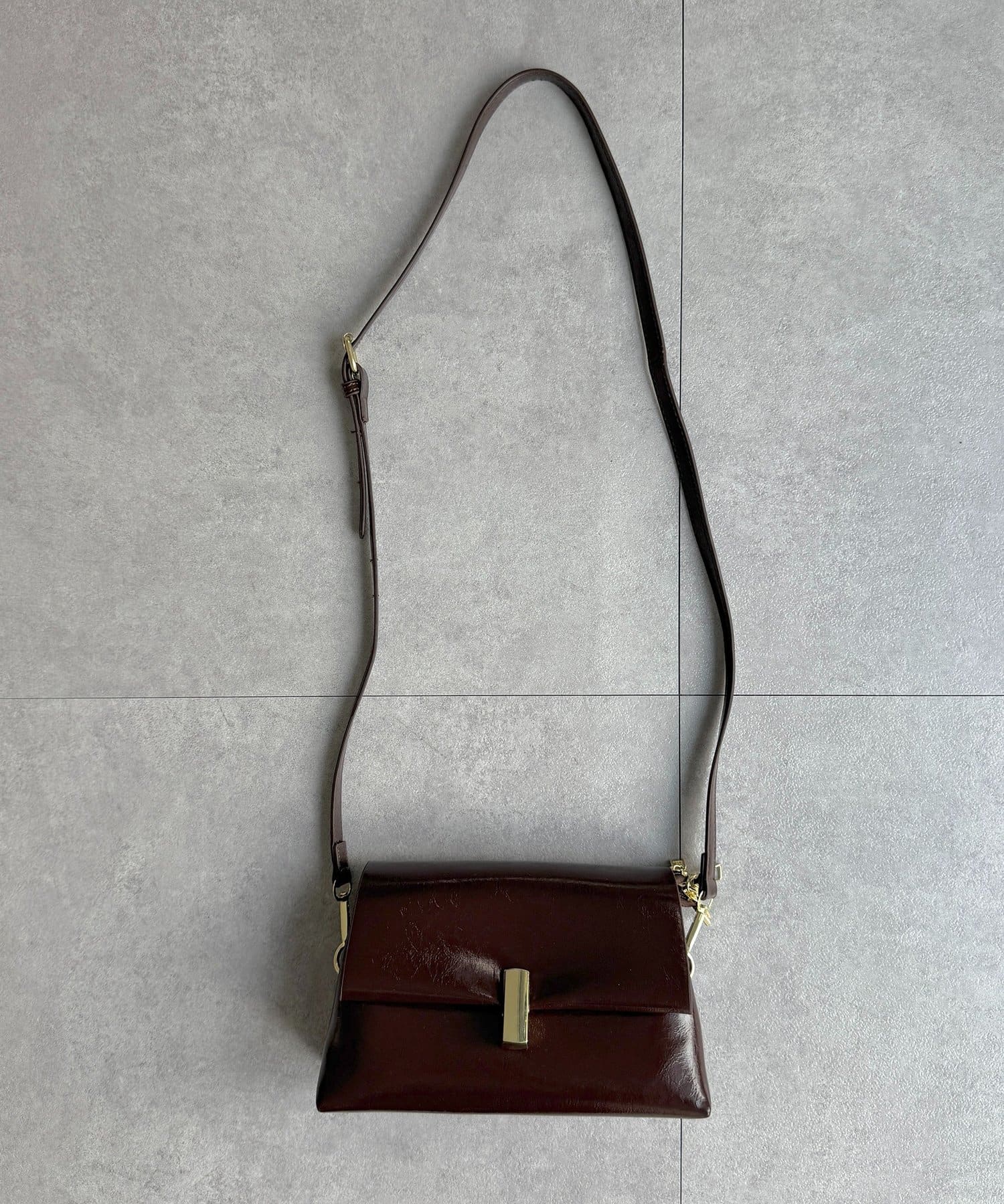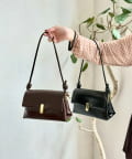 上品な光沢感が魅力の、スクエアフォルムバッグ