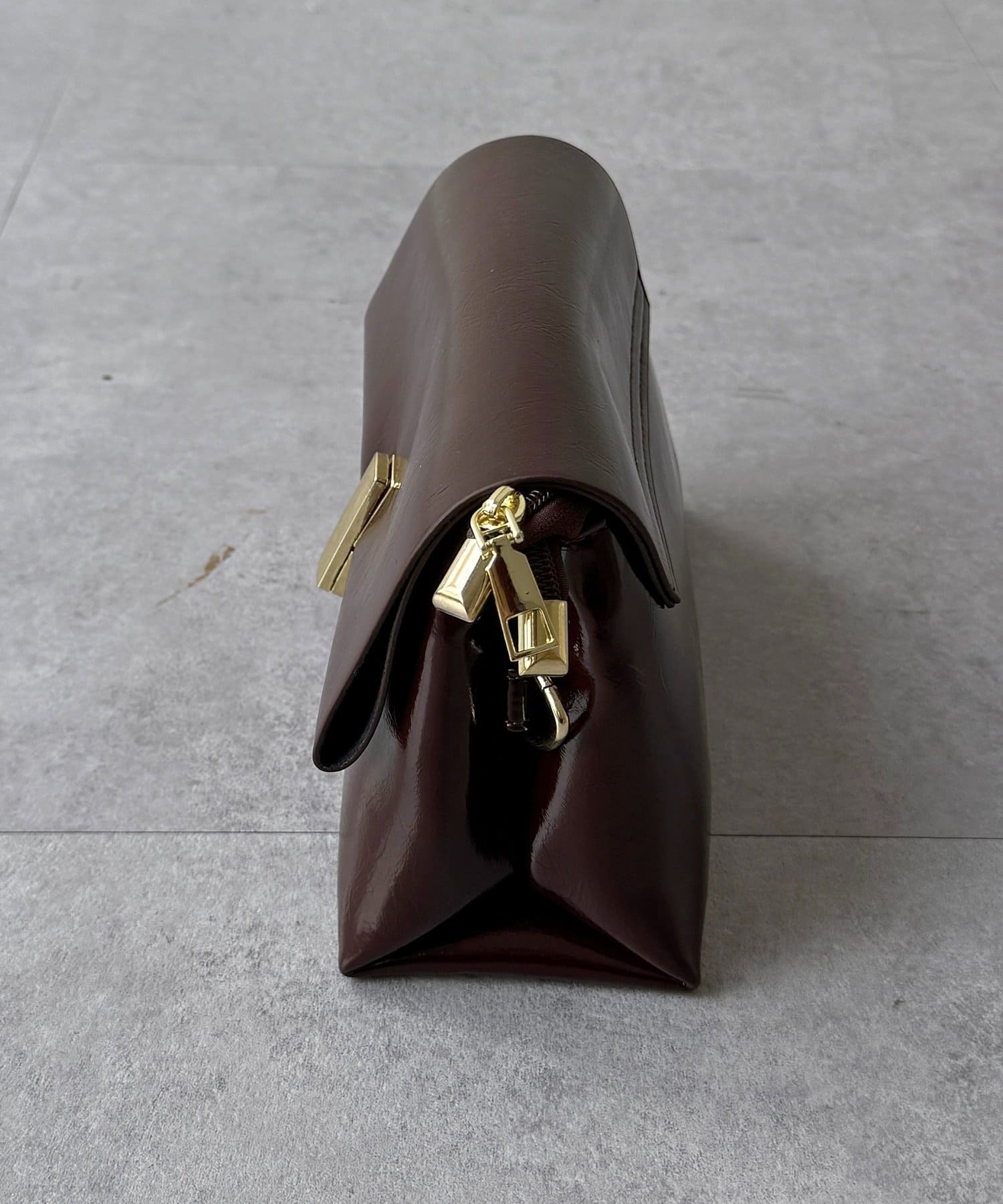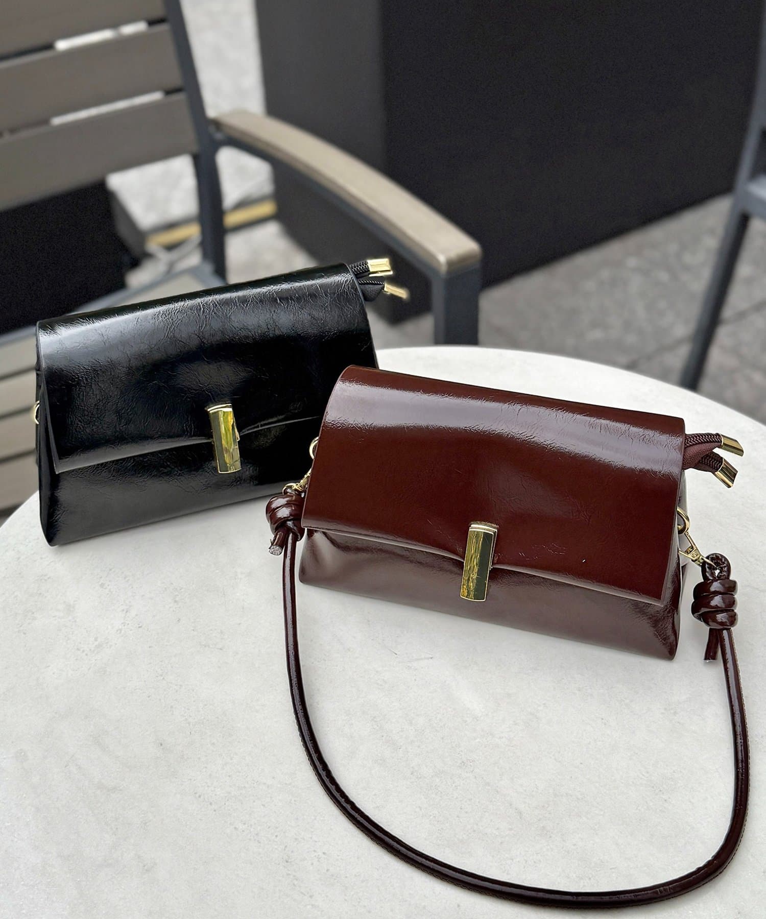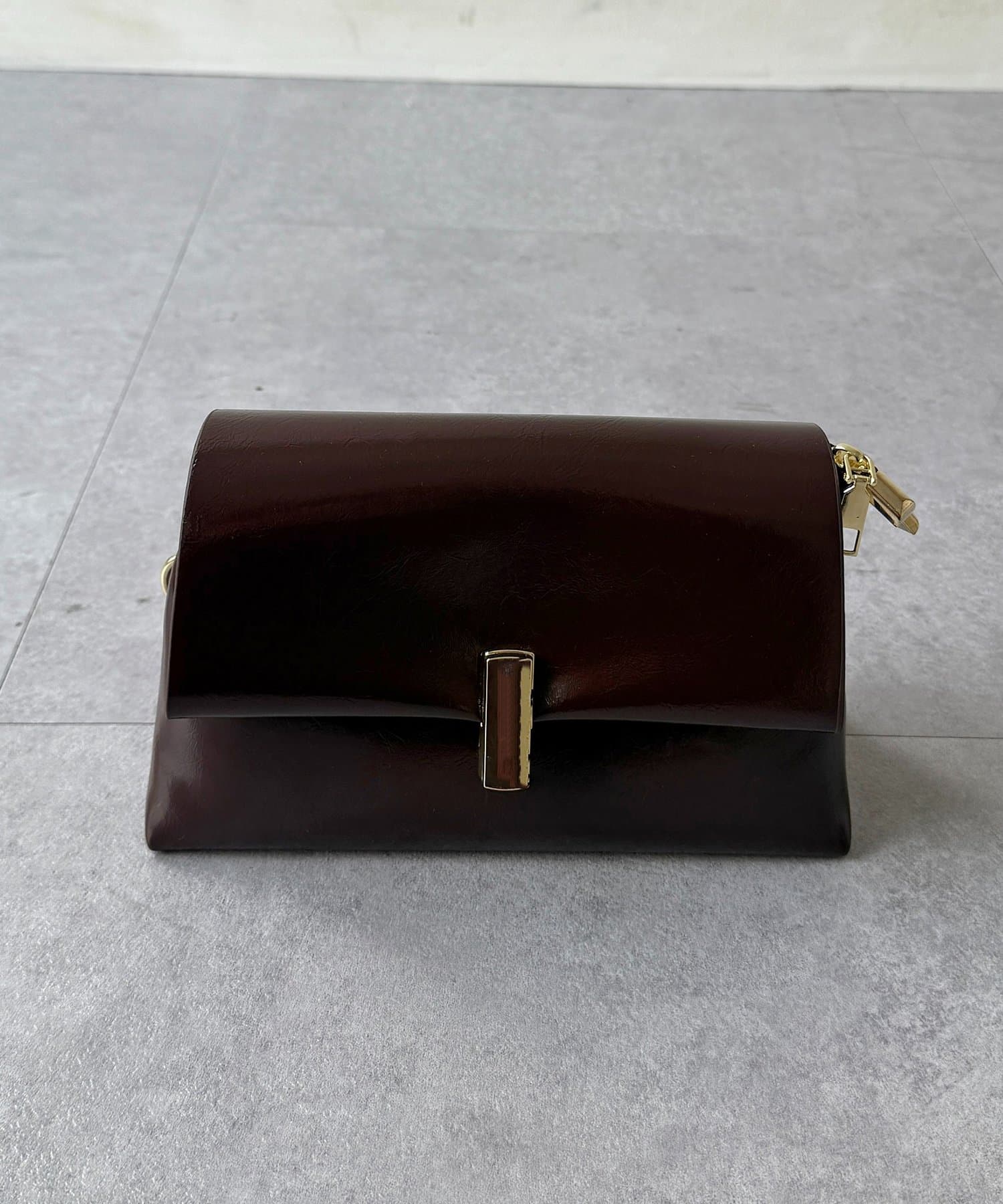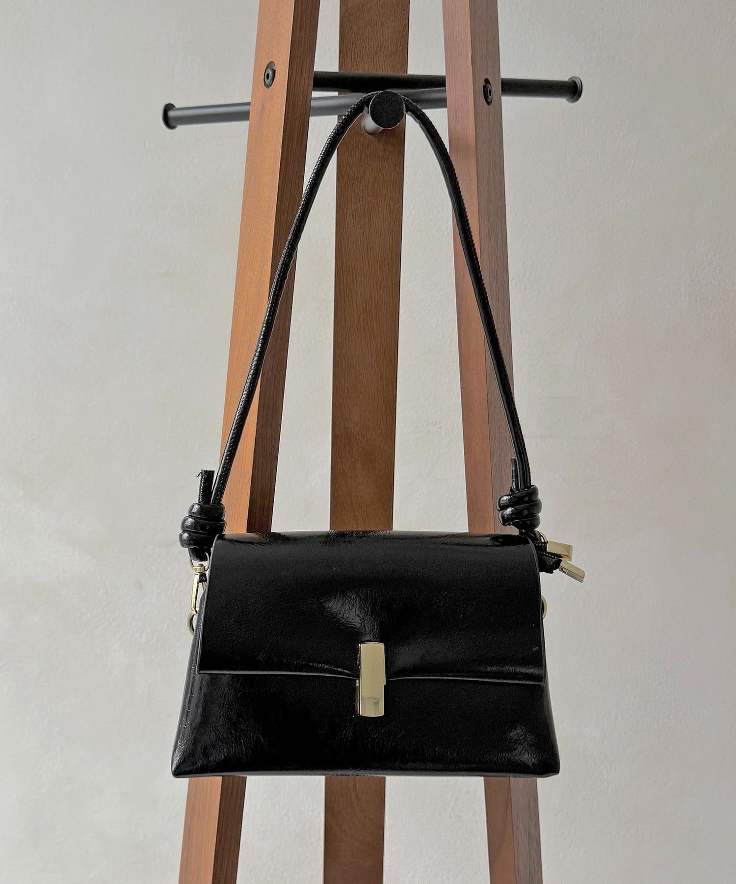 上品な光沢感が魅力の、スクエアフォルムバッグ