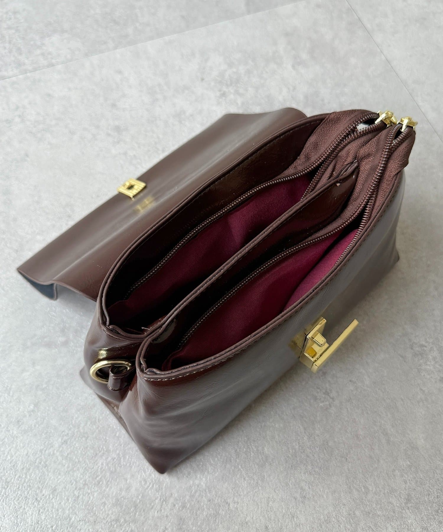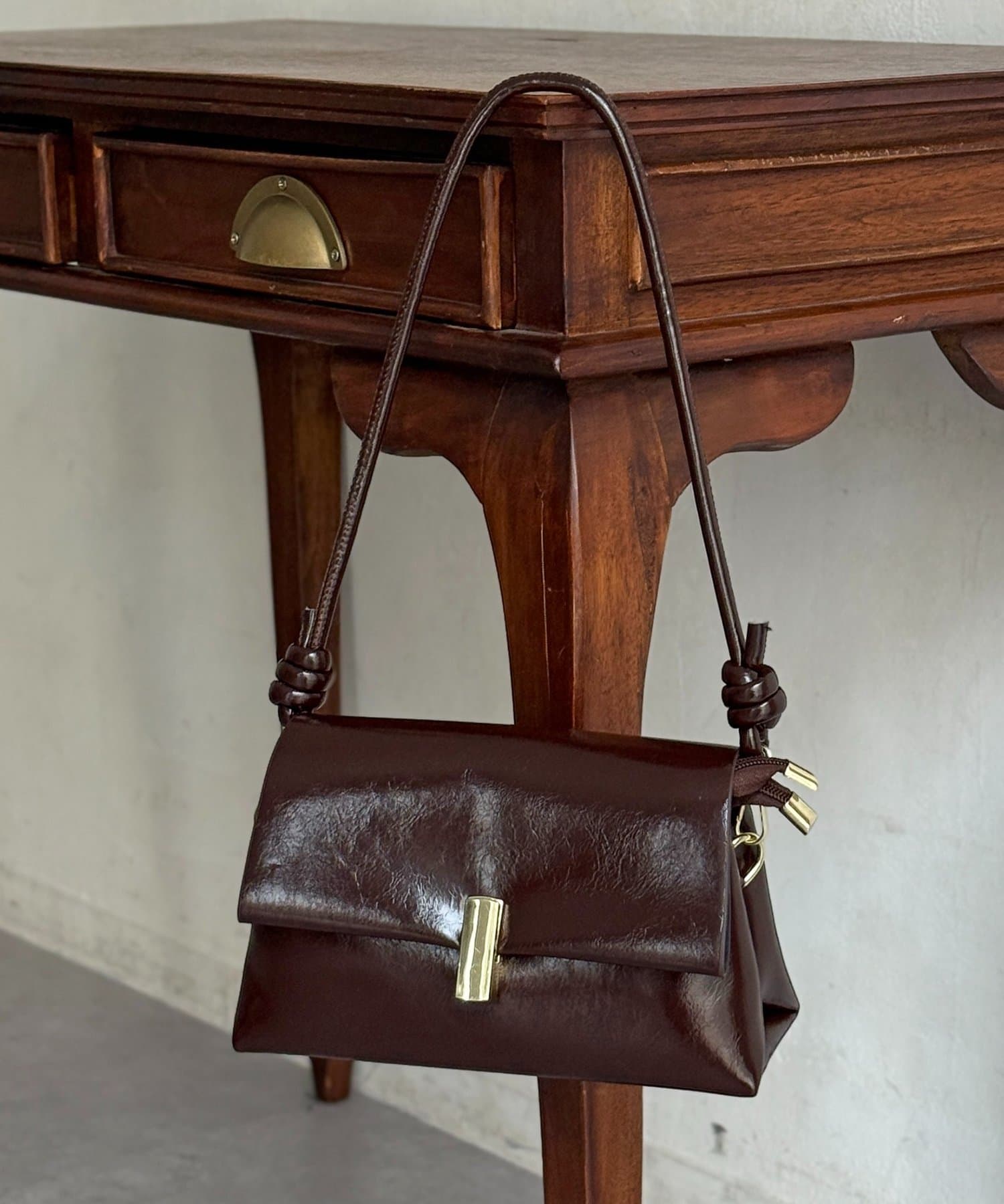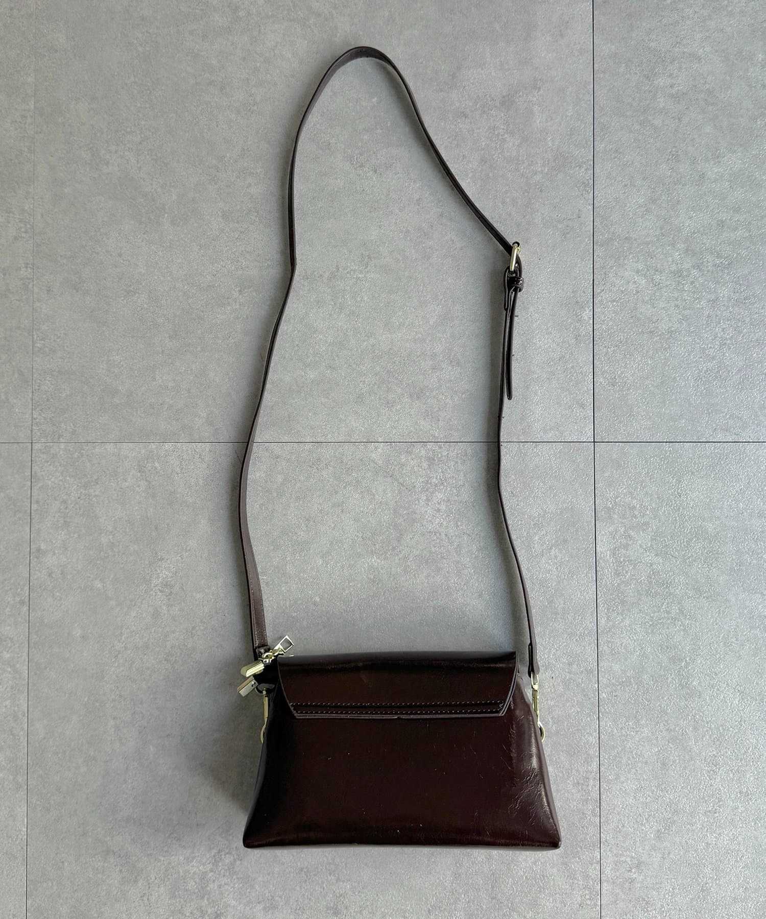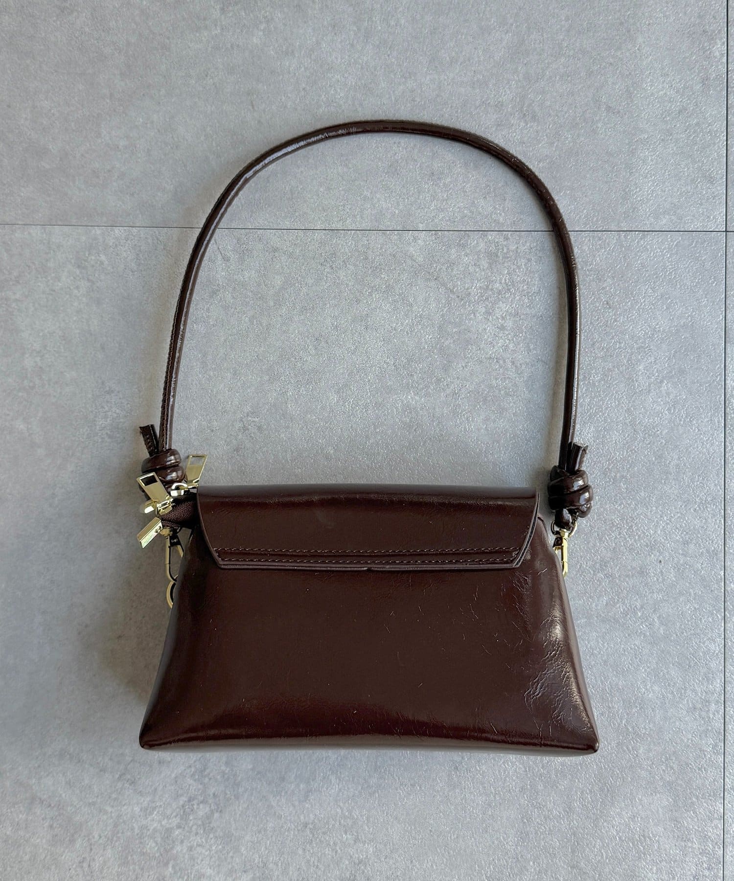 上品な光沢感が魅力の、スクエアフォルムバッグ