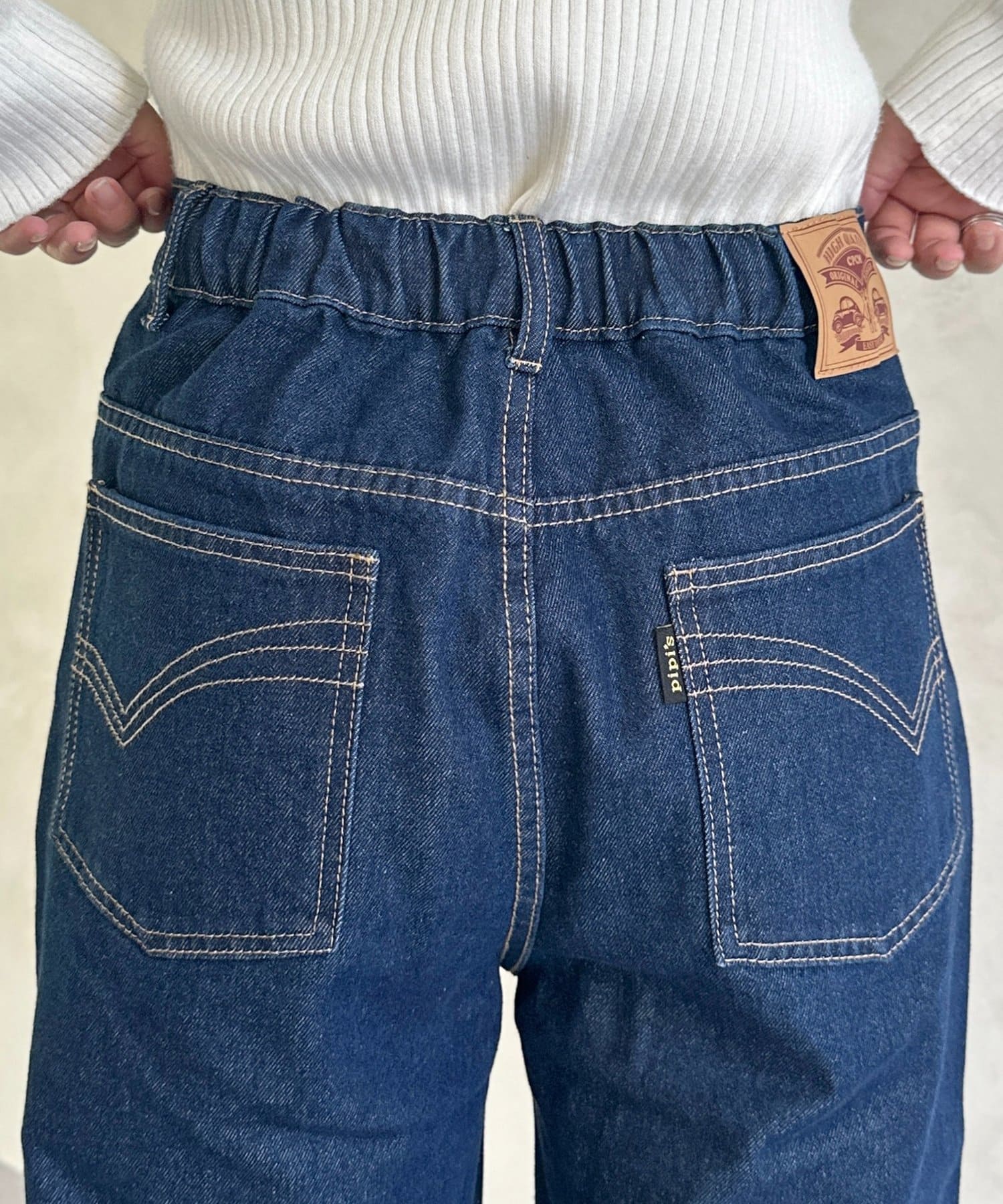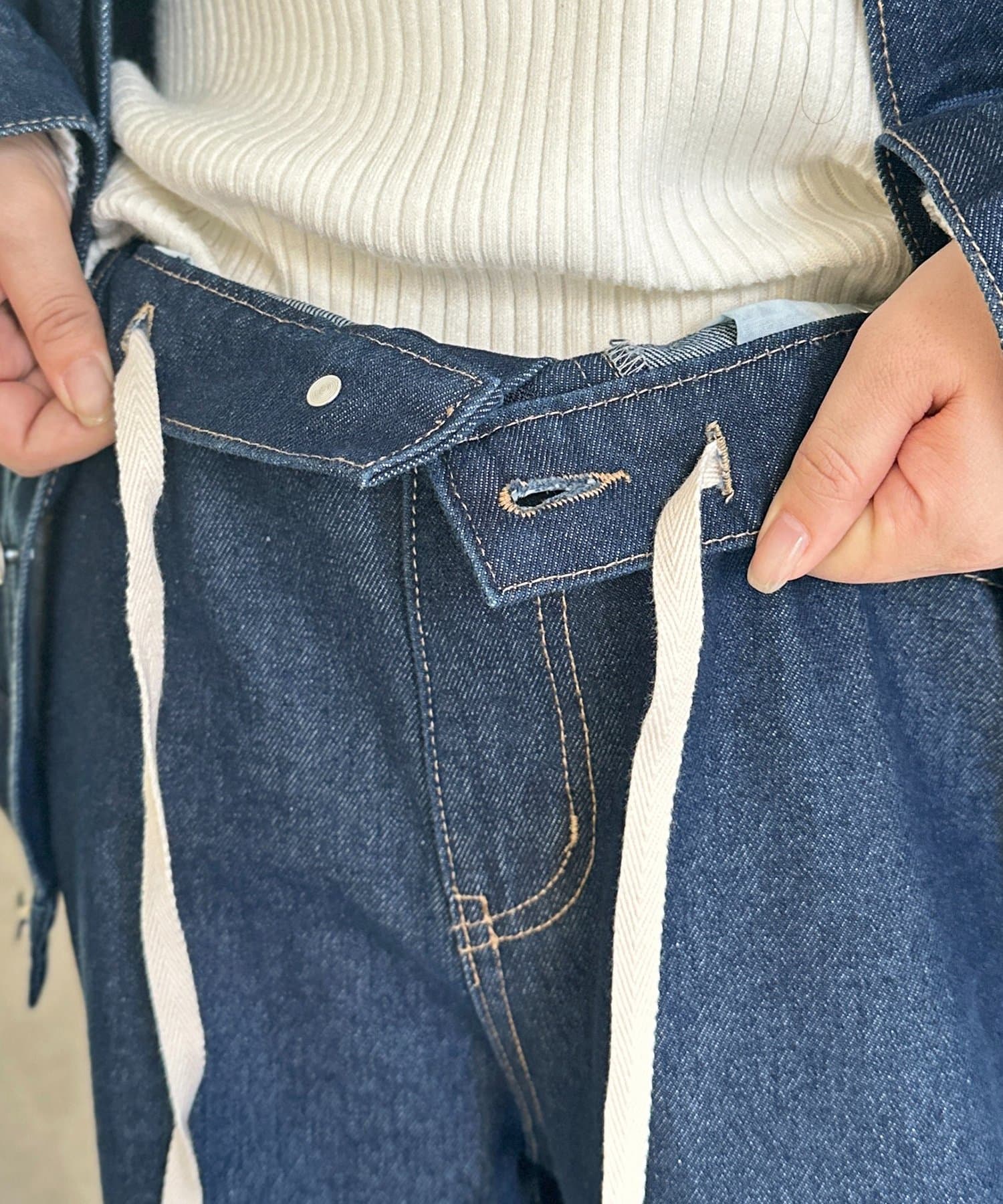 内側に紐がついていて、サイズの調節が効くデニムです。