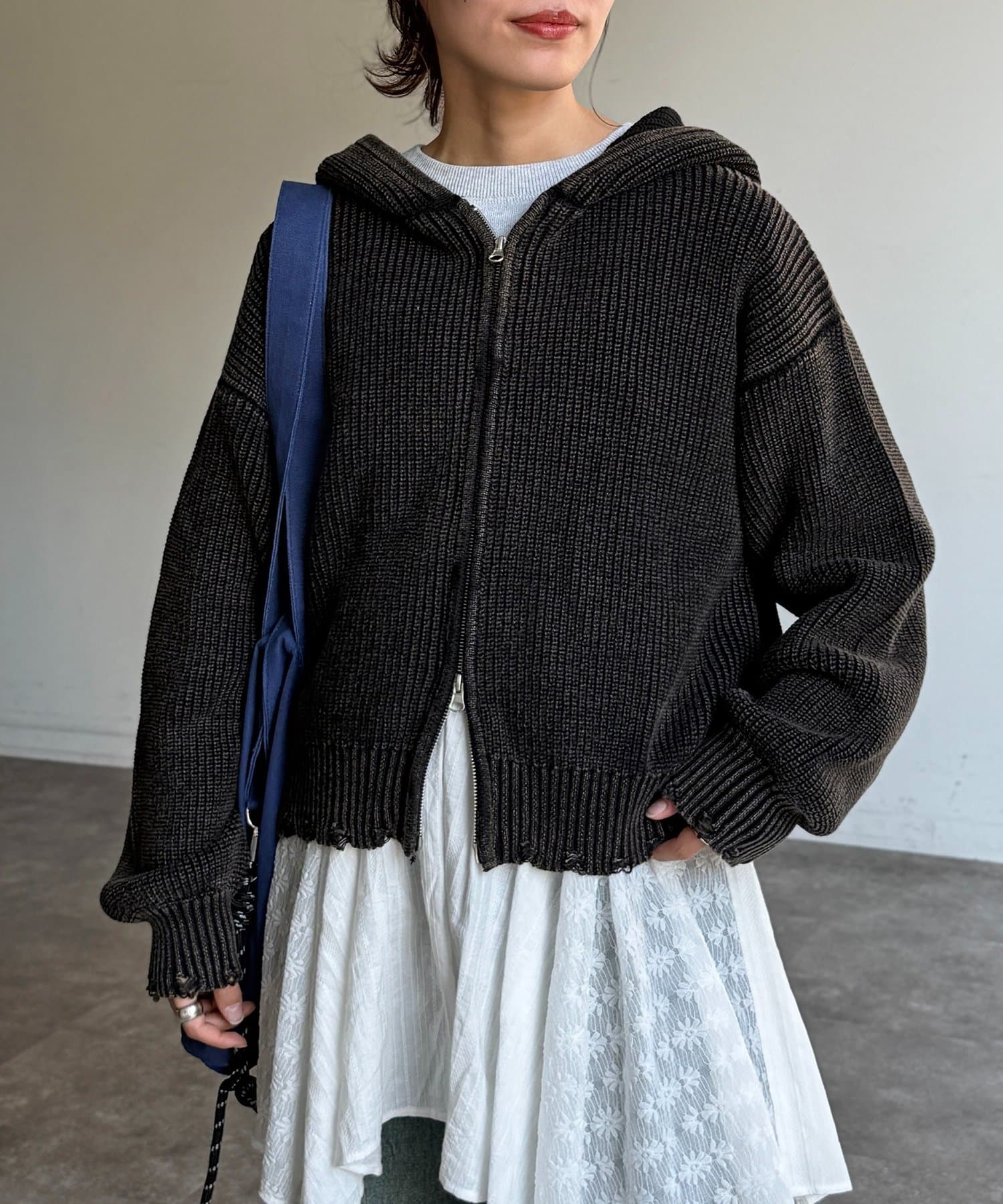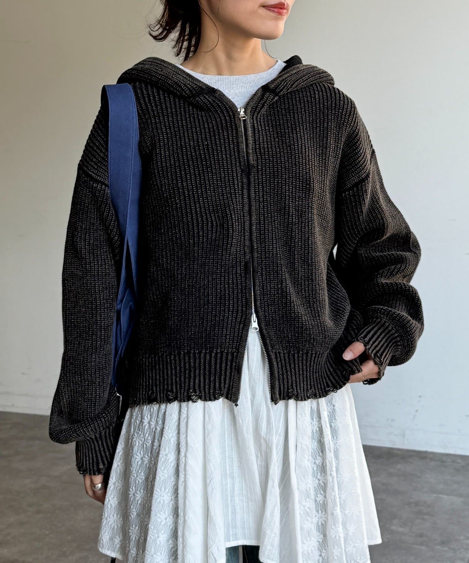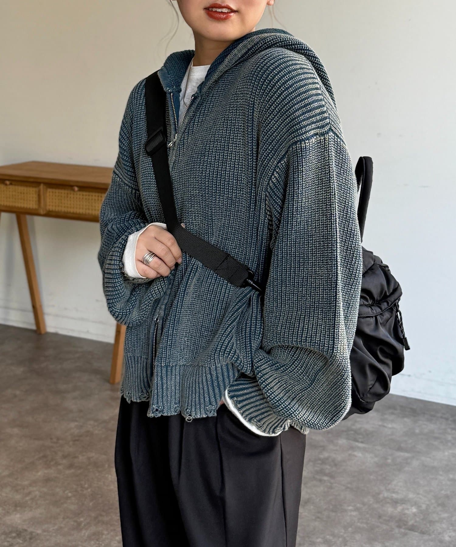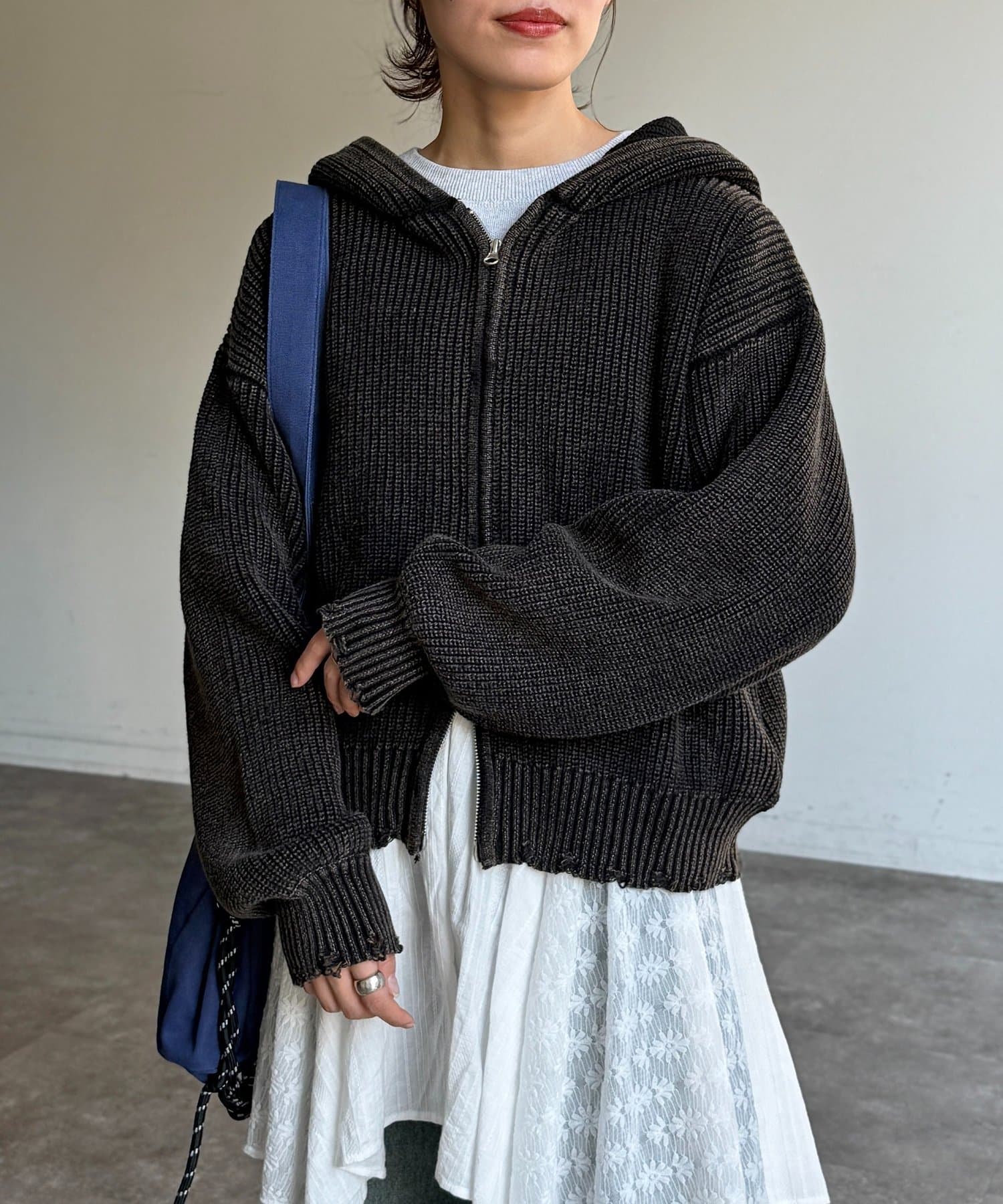 ヴィンテージライクな風合いが魅力!こなれ感溢れるニットパーカー
