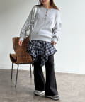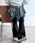 ・カーディガン+フレアパンツにスカートを合わせて、コーデのアクセントに