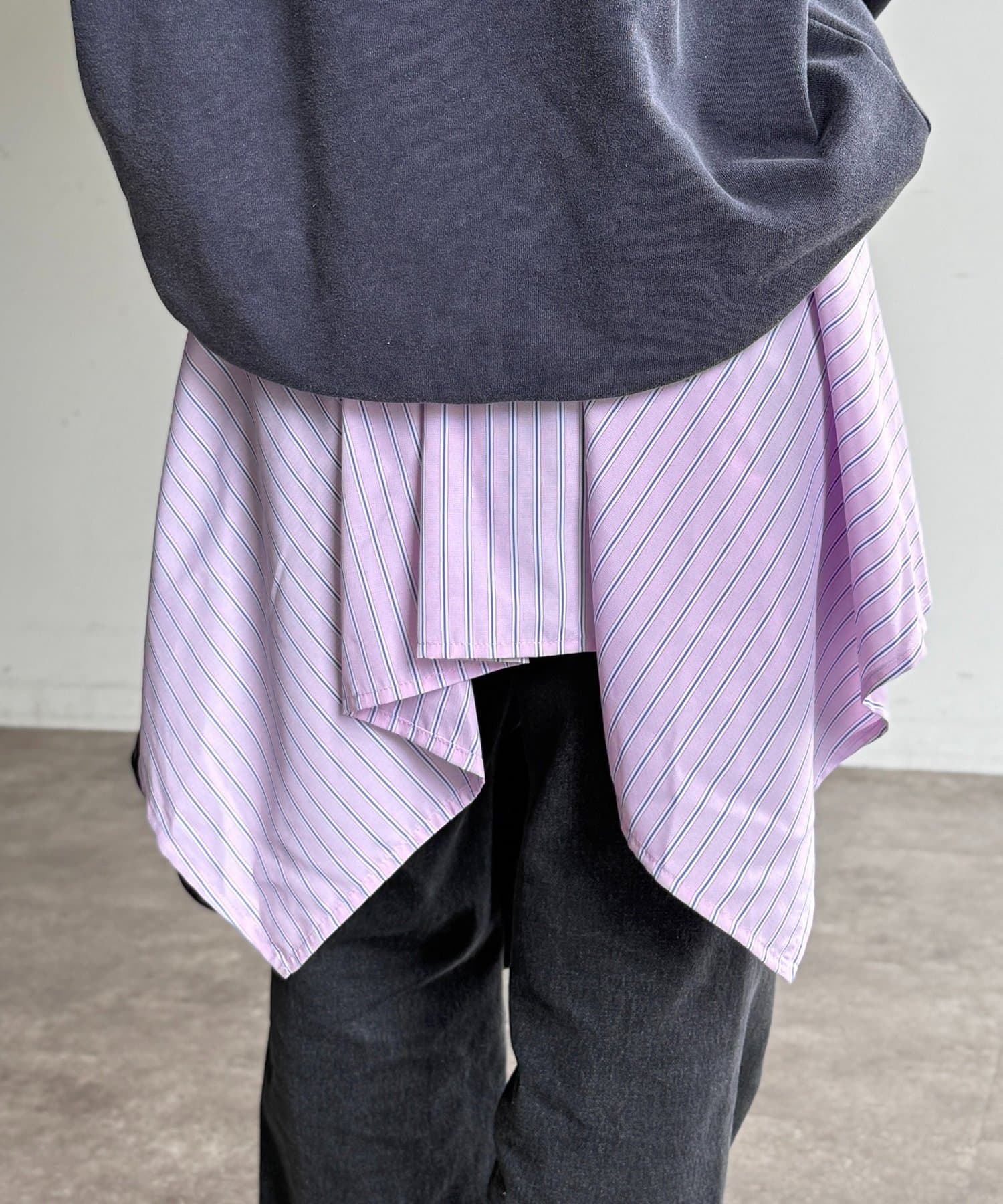 ランダムに見える裾がシャツを巻いたようなデザインでトレンド感UP!