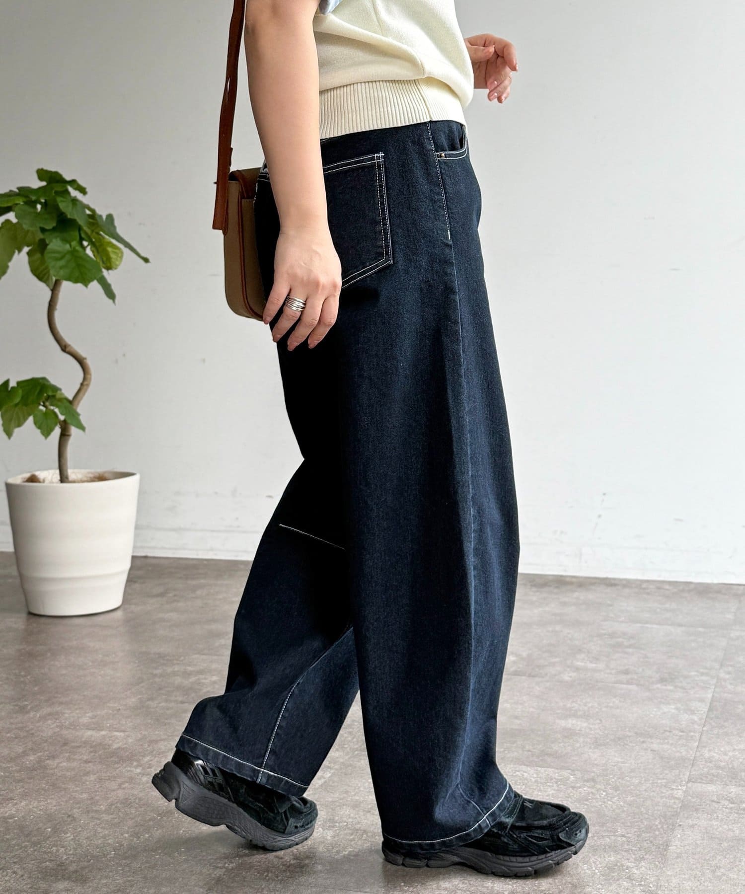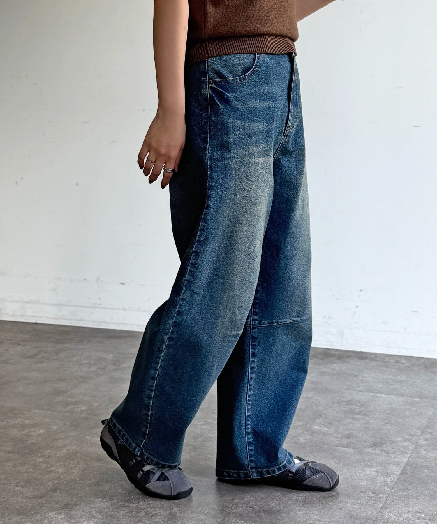 目を惹くシルエットで、一歩先のこなれ感を演出するワイドデニム