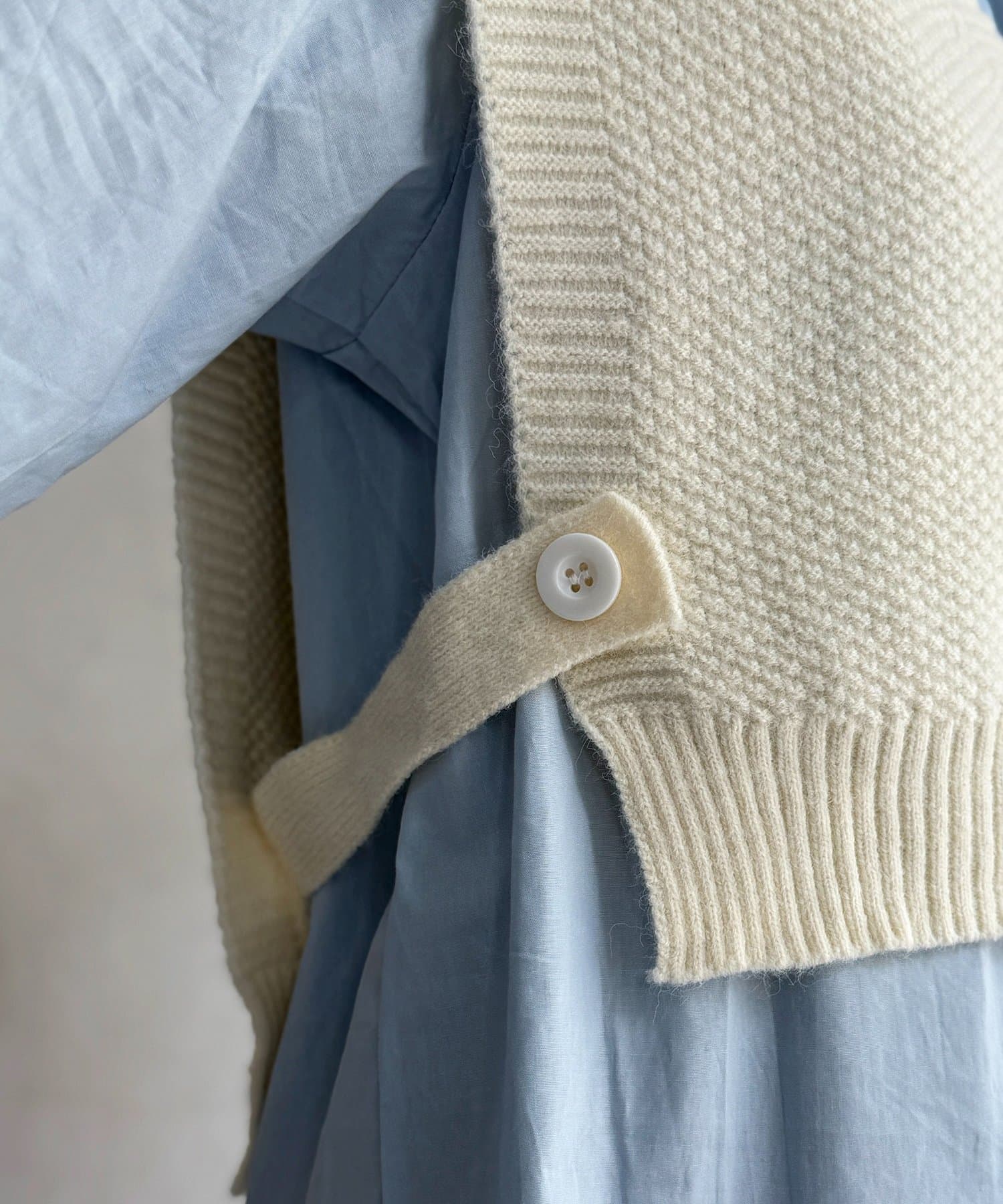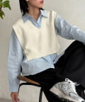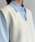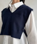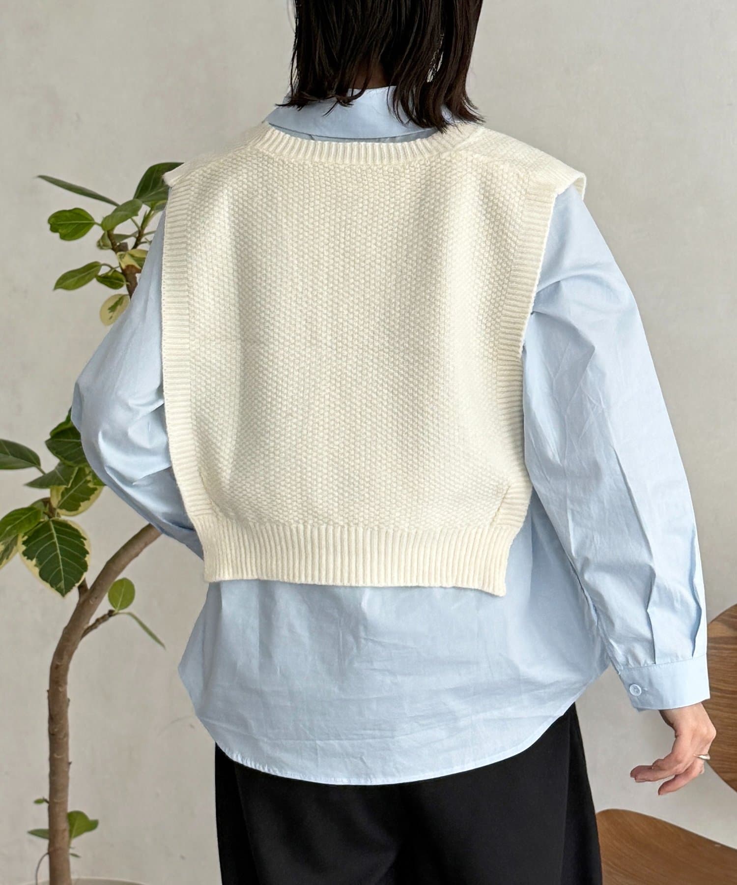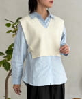 ・顔周りをすっきりと見せるVネックと、スタイルアップ効果のあるショート丈ベスト