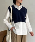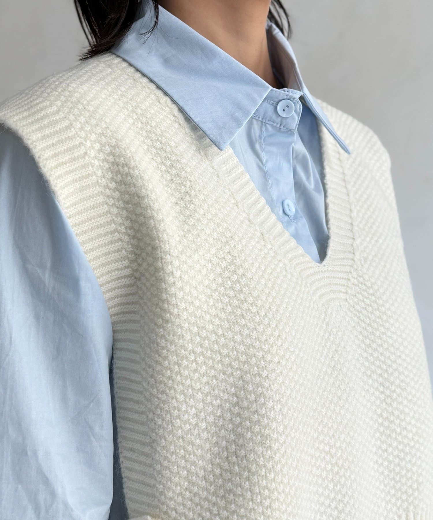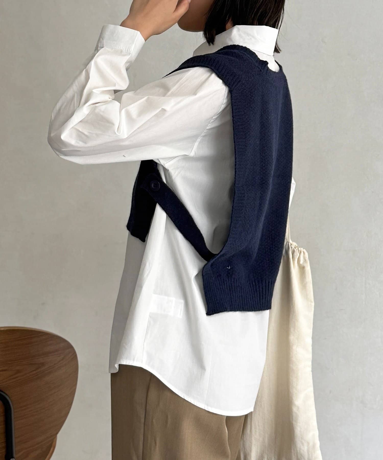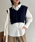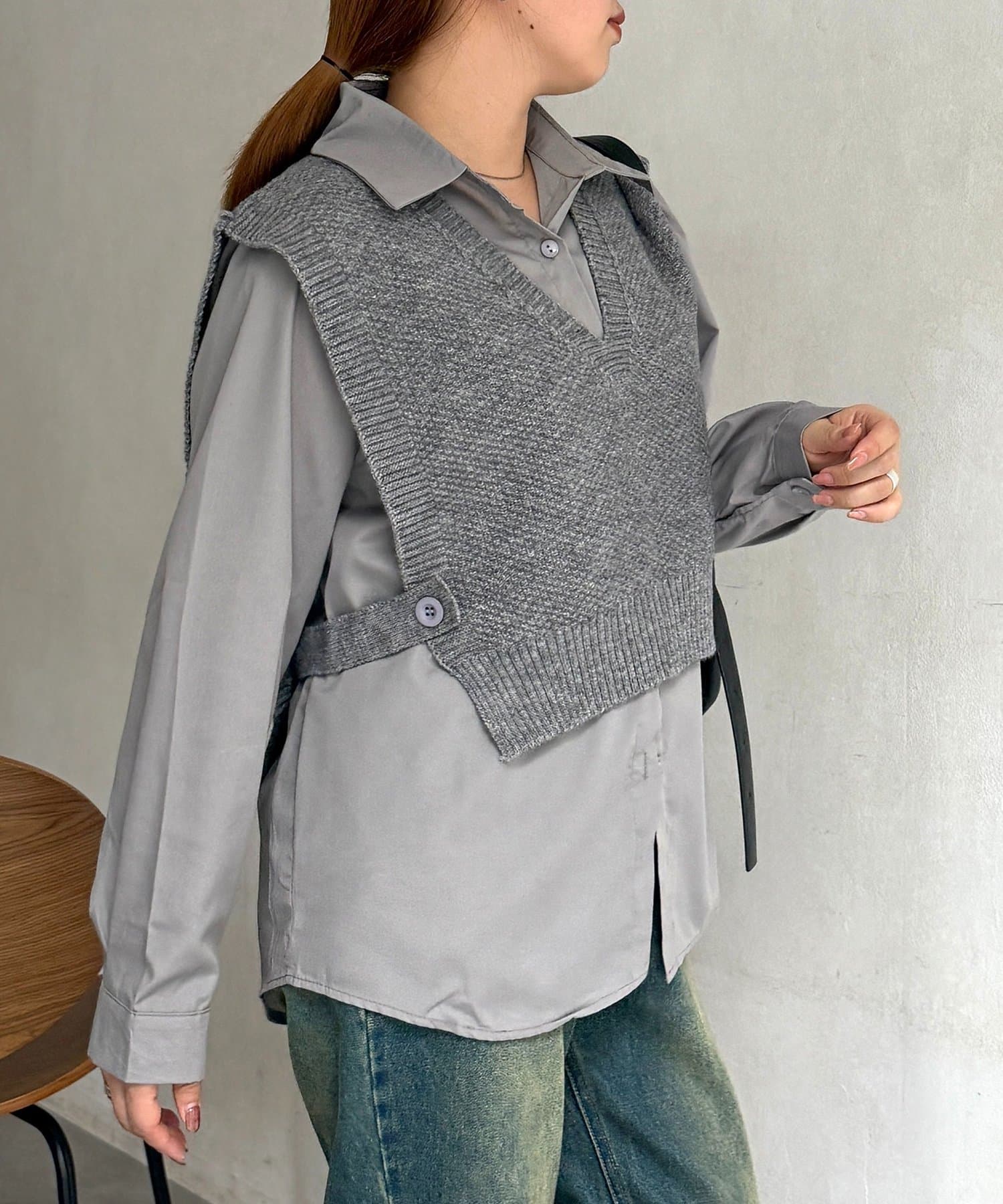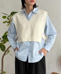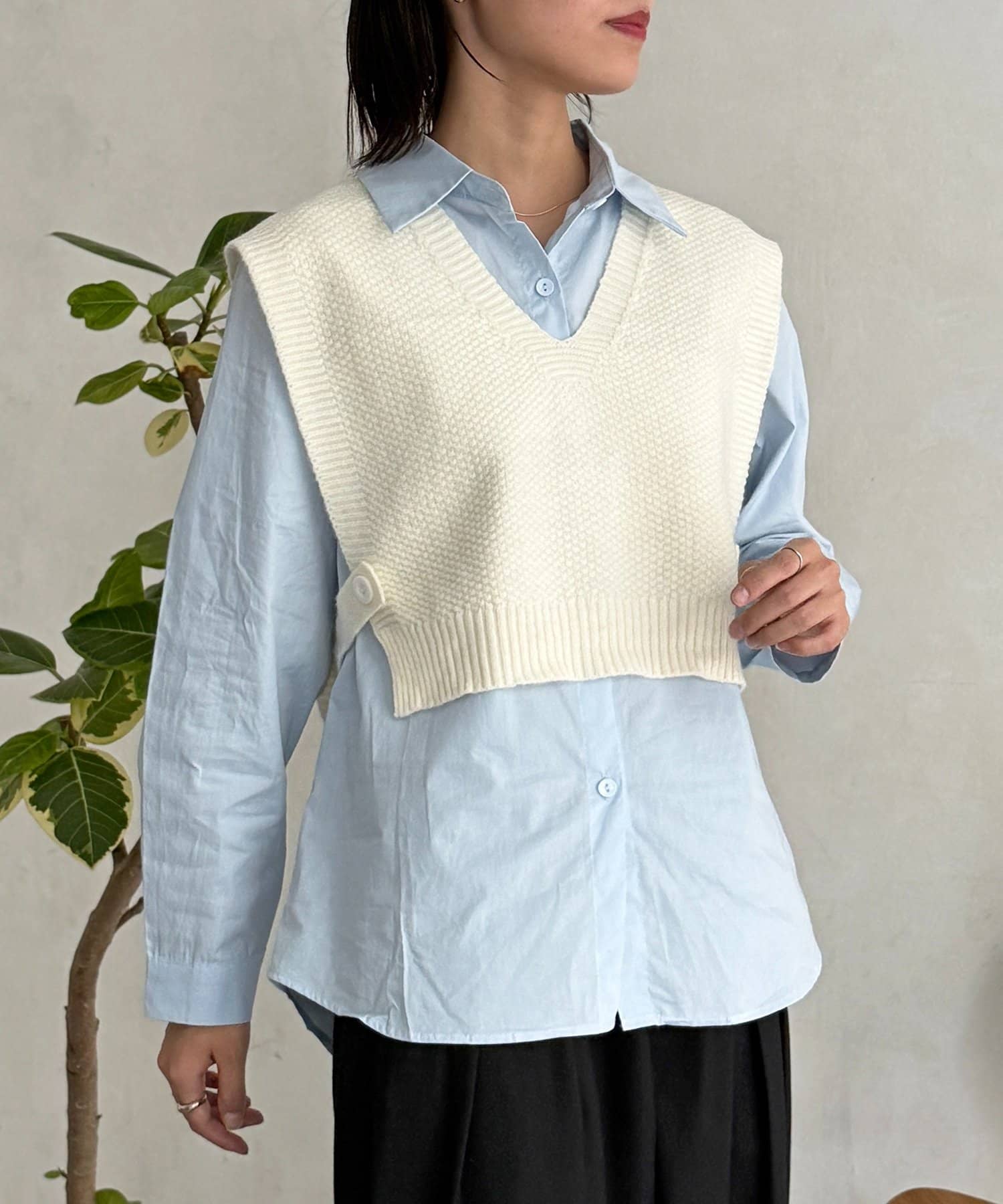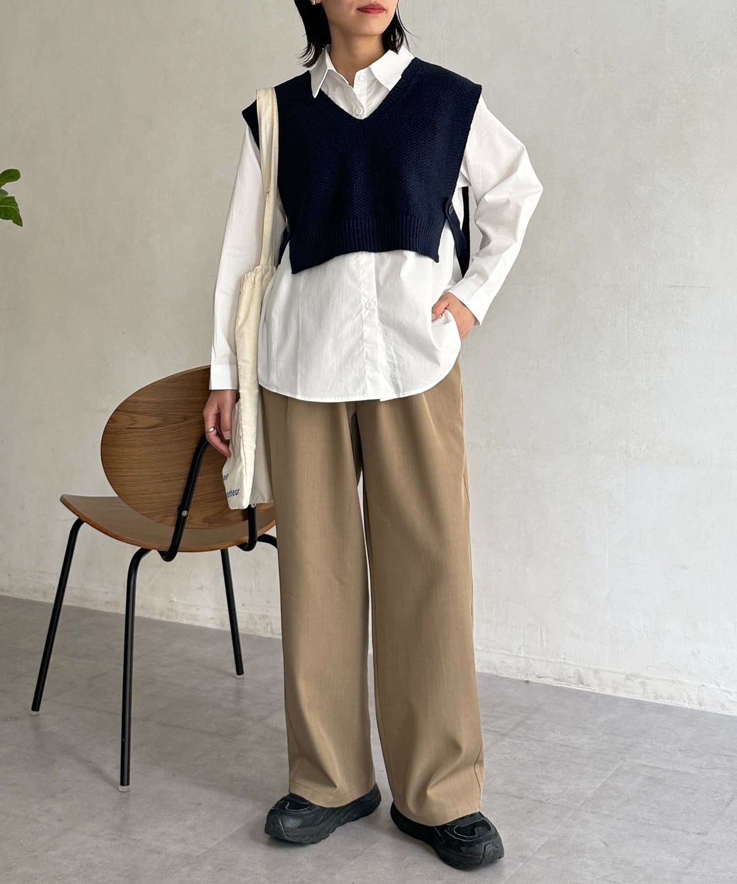 シャツとVネックニットベストがセットになった、コーディネートいらずの優秀アイテムです◎