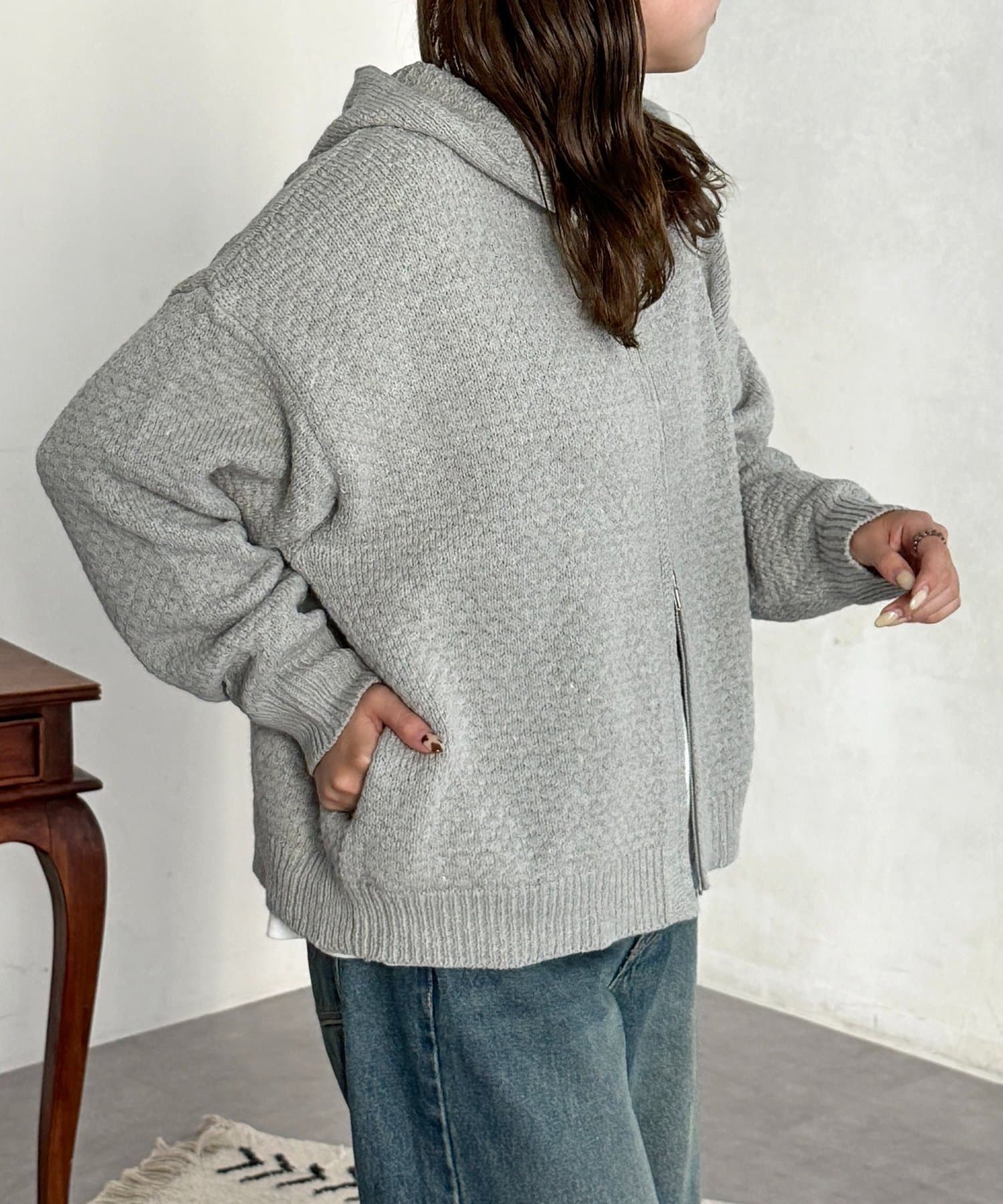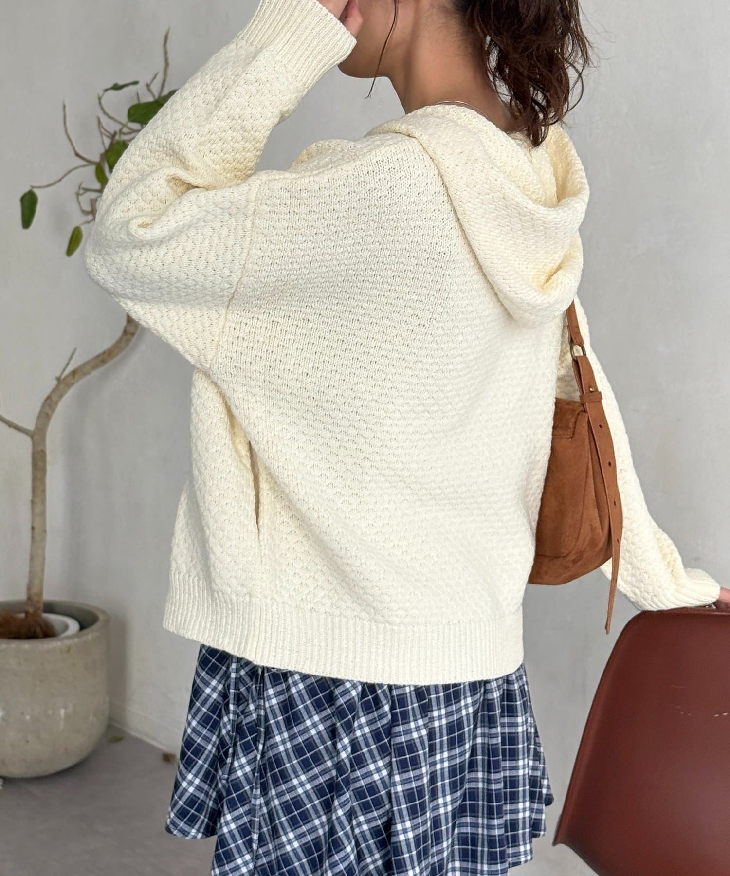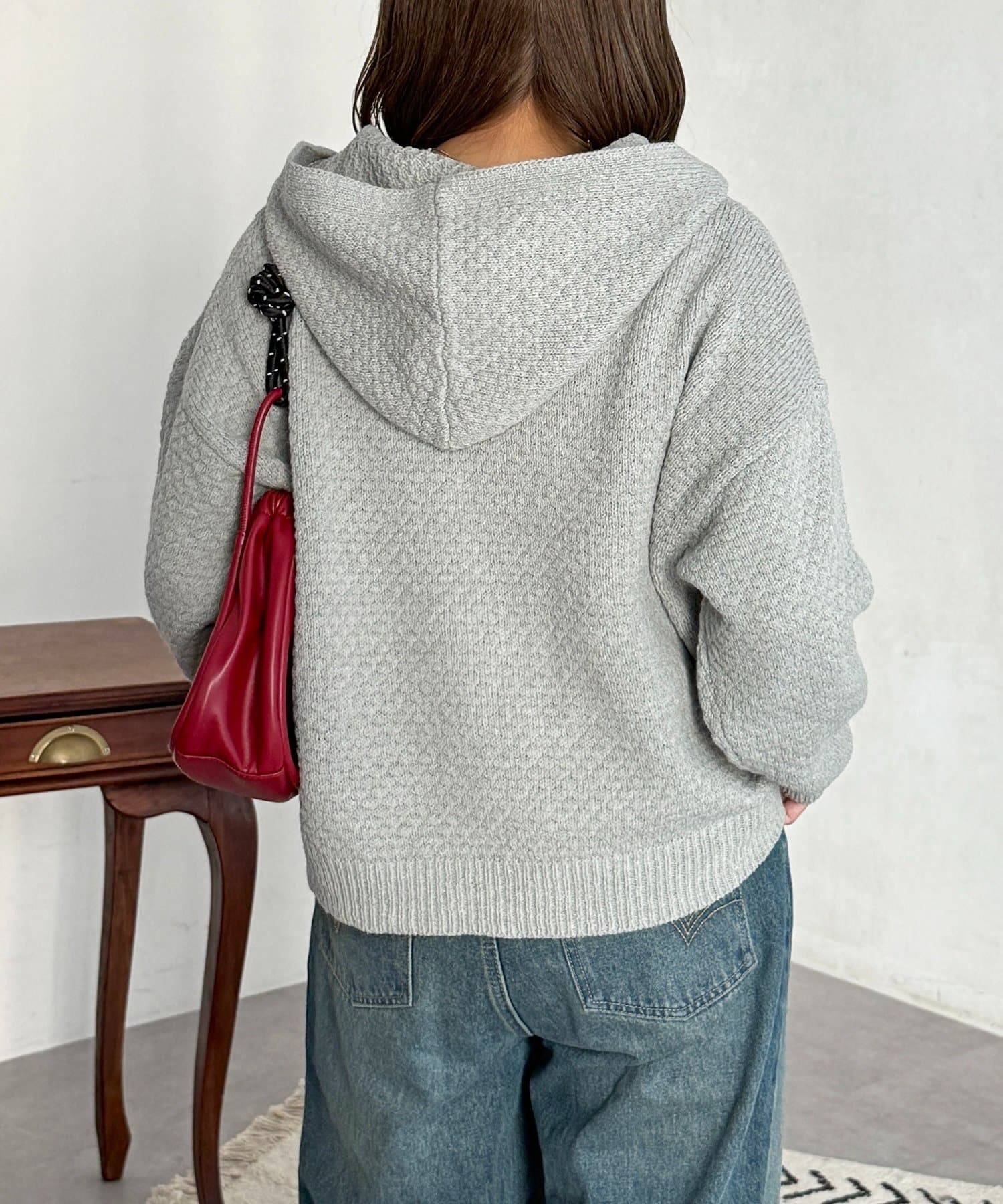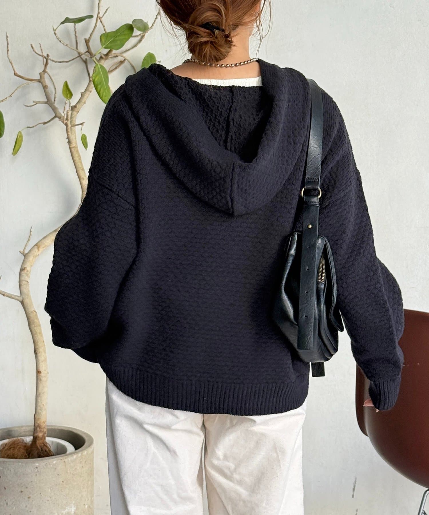 表情豊かな「ぽこぽこ」とした編み地がポイントのニットパーカー