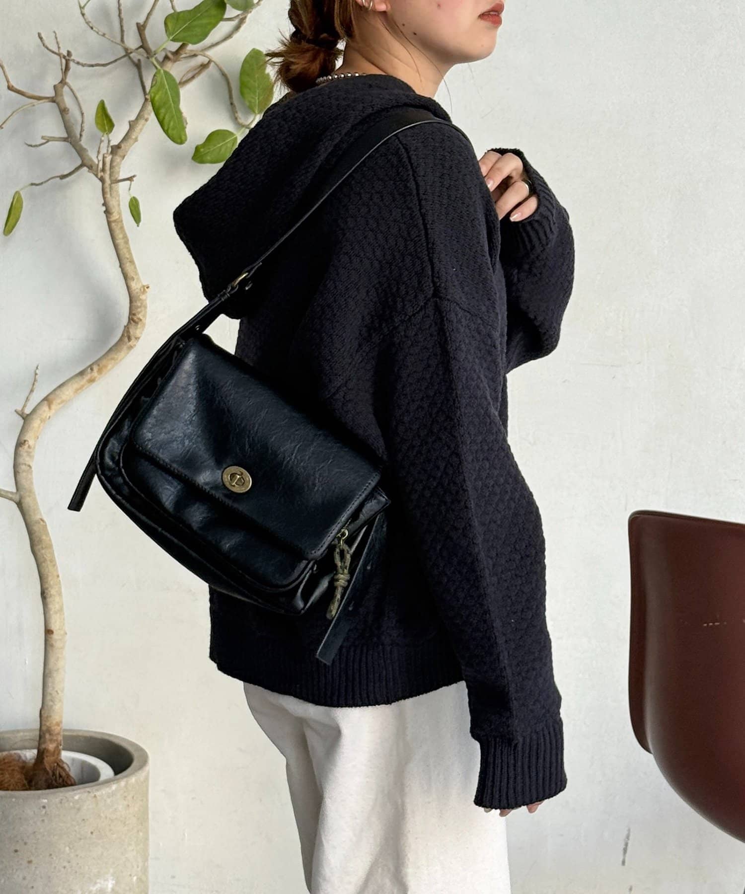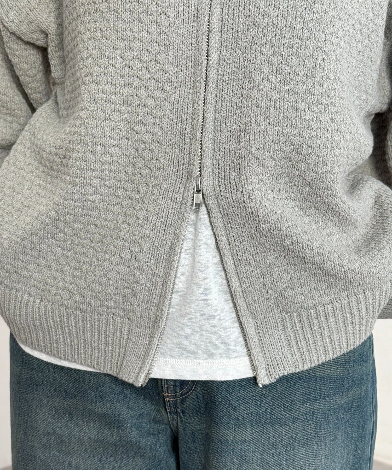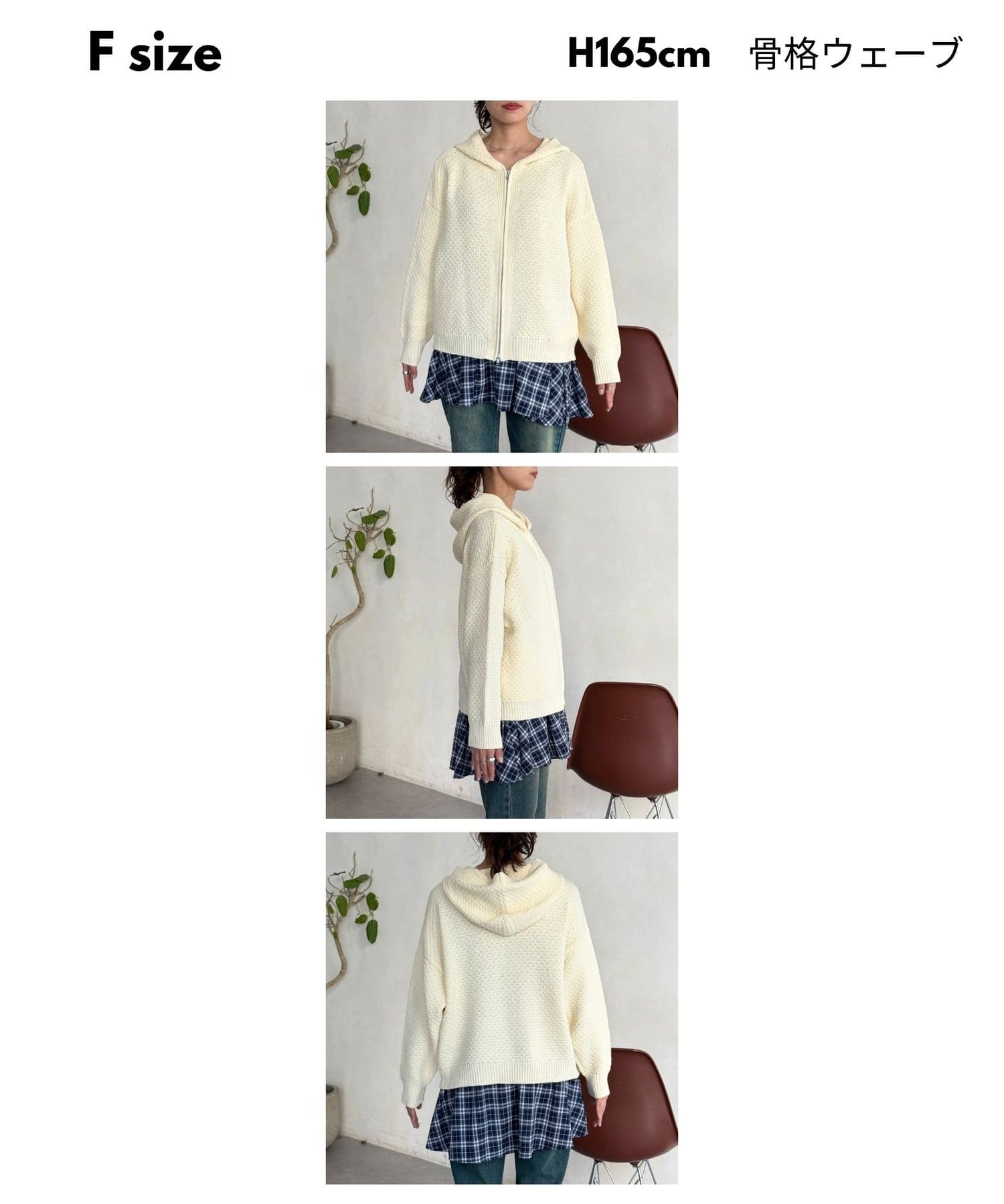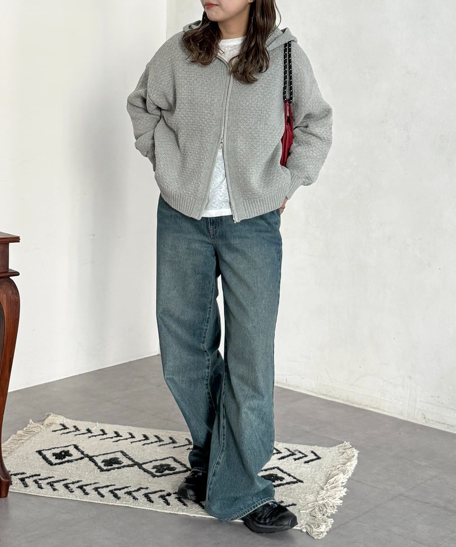 表情豊かな「ぽこぽこ」とした編み地がポイントのニットパーカー